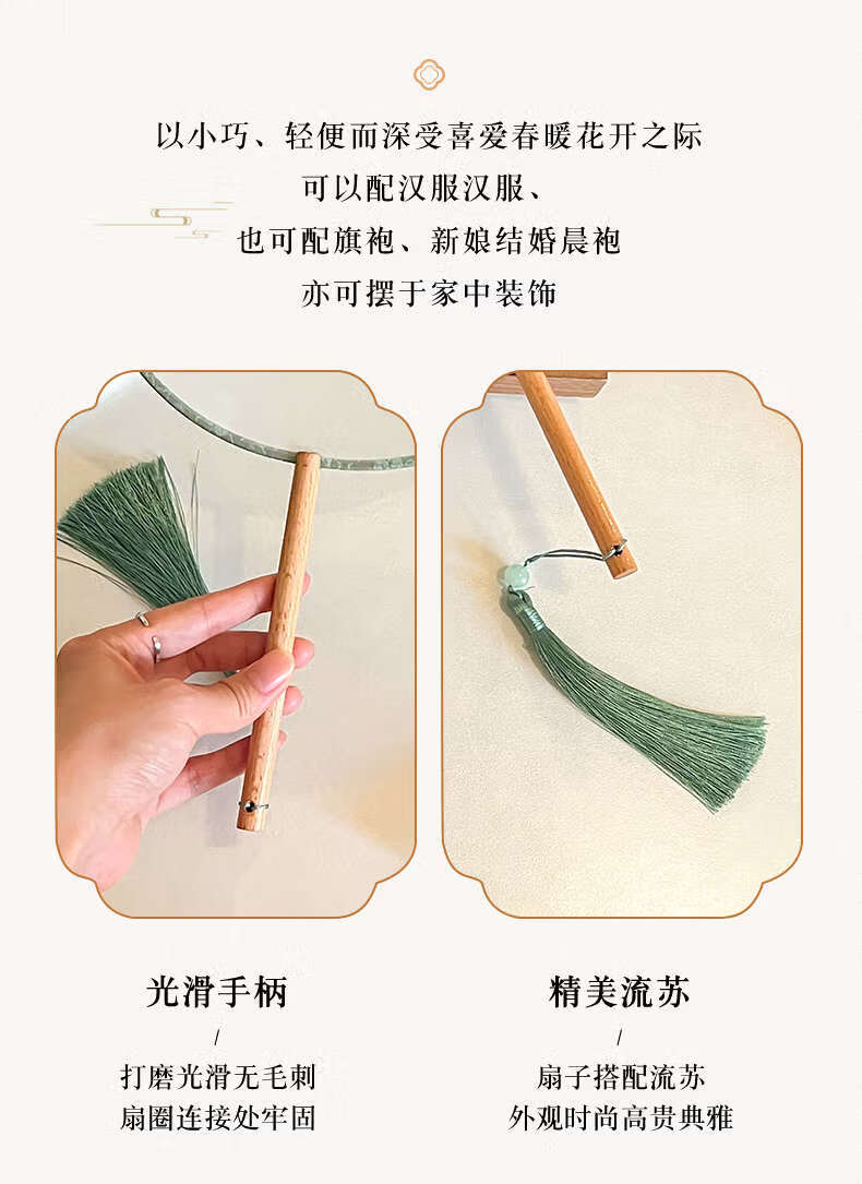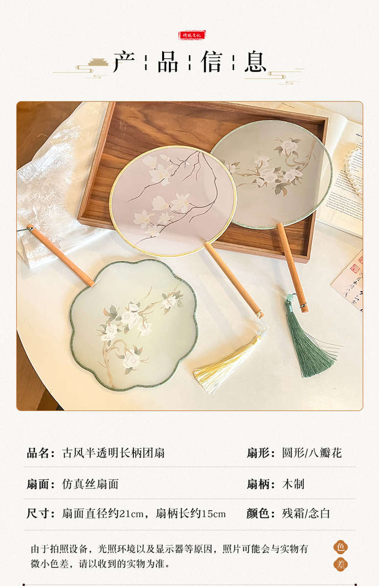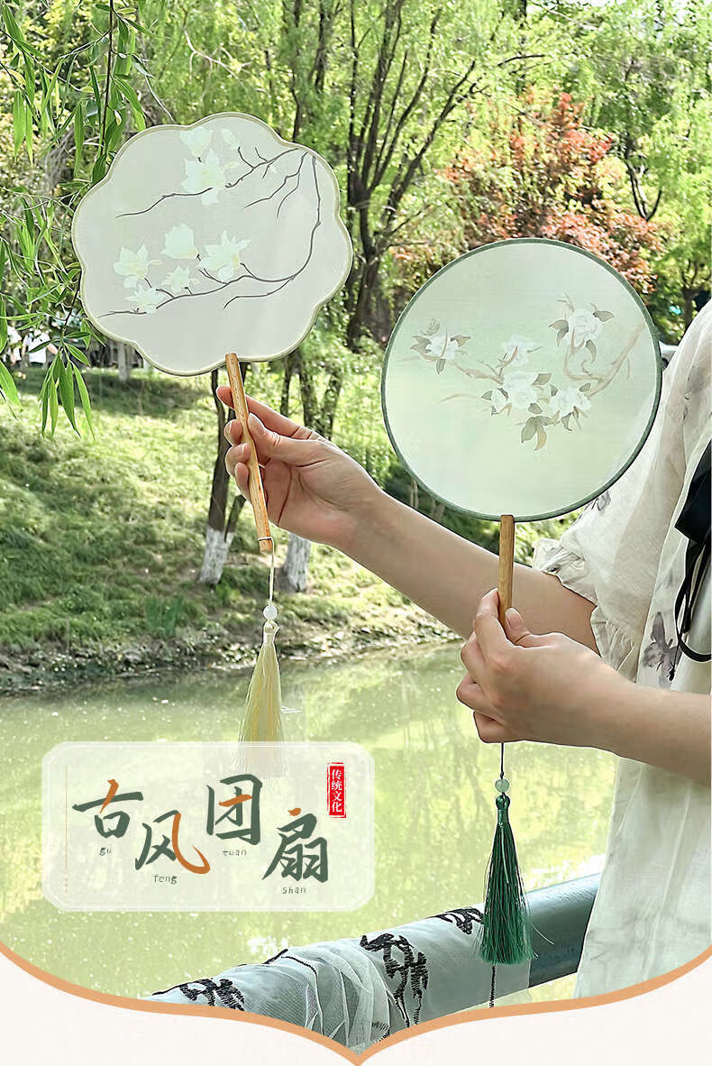 Yusen Recalls Ancient Tuan Fan Chinese Dance Women's Hanfu Photo Props Cheongsam Fan Translucent Palace Fan Round Fan Nian Baiyuan