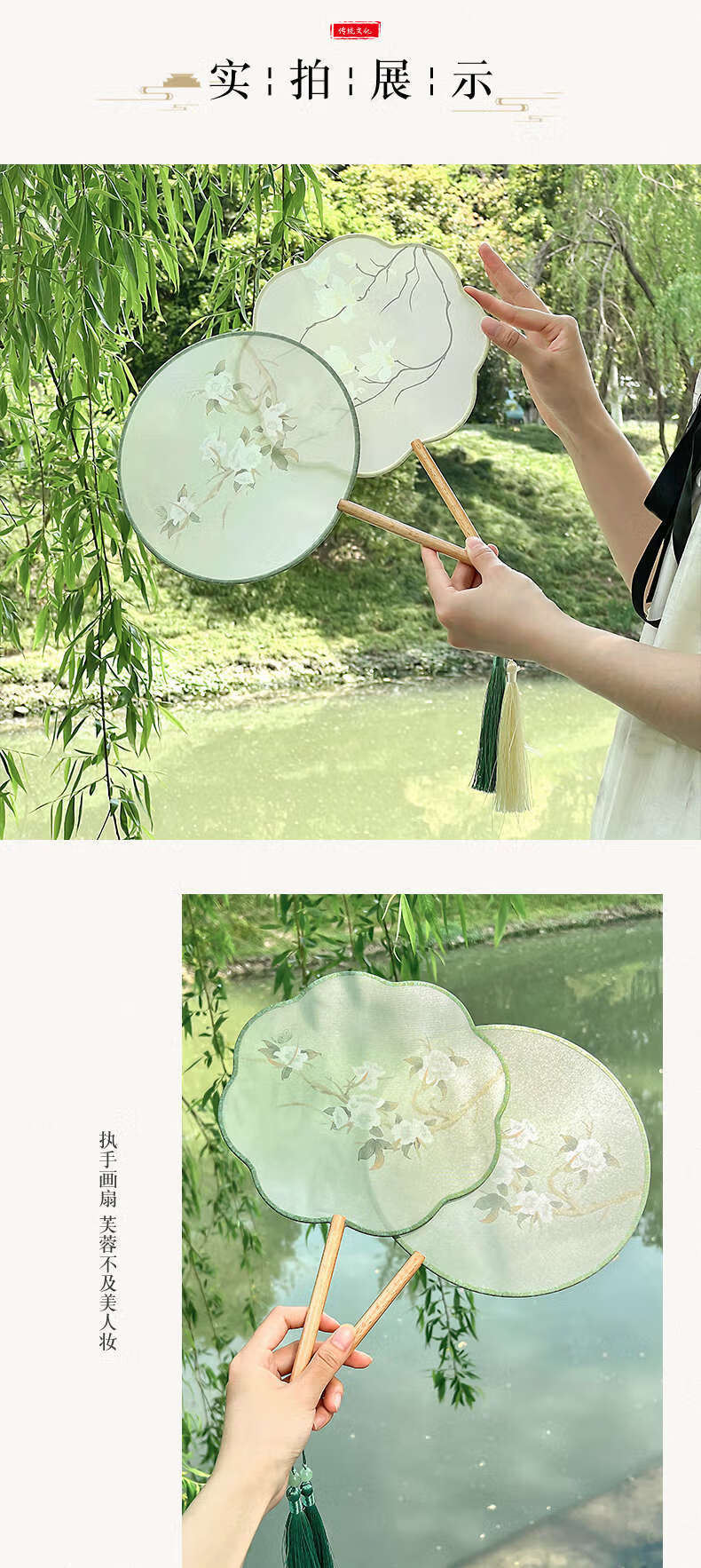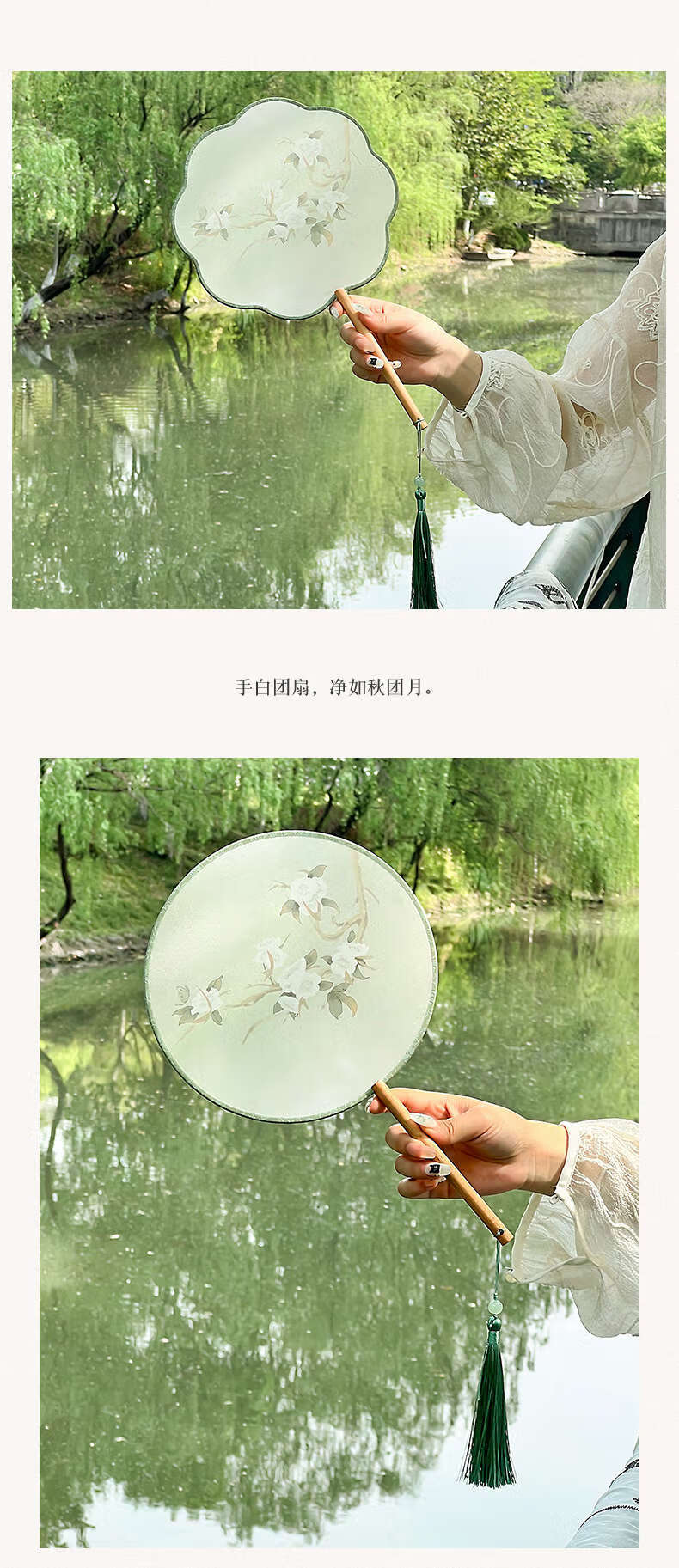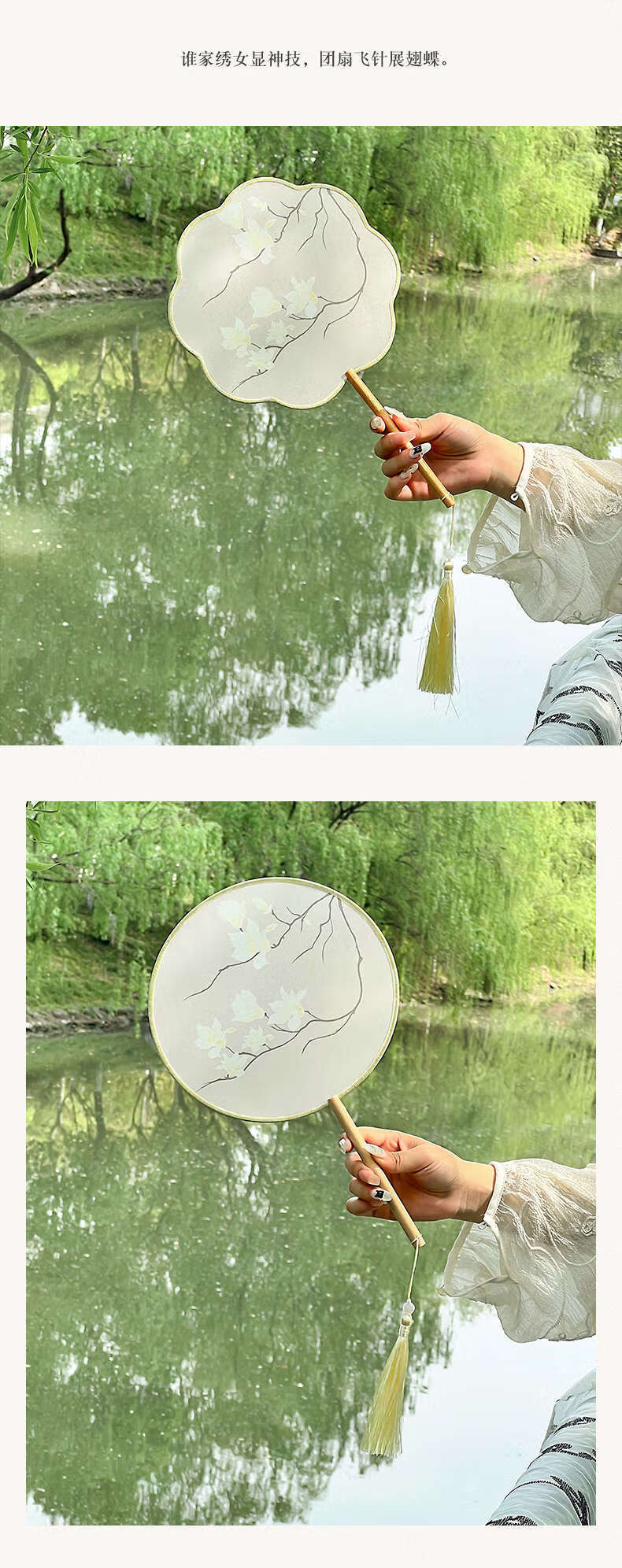 Yusen Recalls Ancient Tuan Fan Chinese Dance Women's Hanfu Photo Props Cheongsam Fan Translucent Palace Fan Round Fan Nian Baiyuan