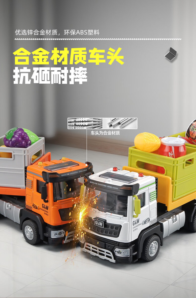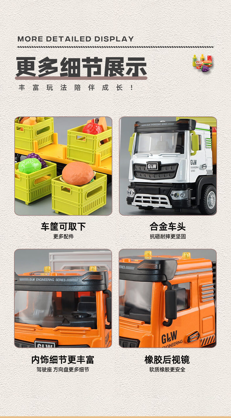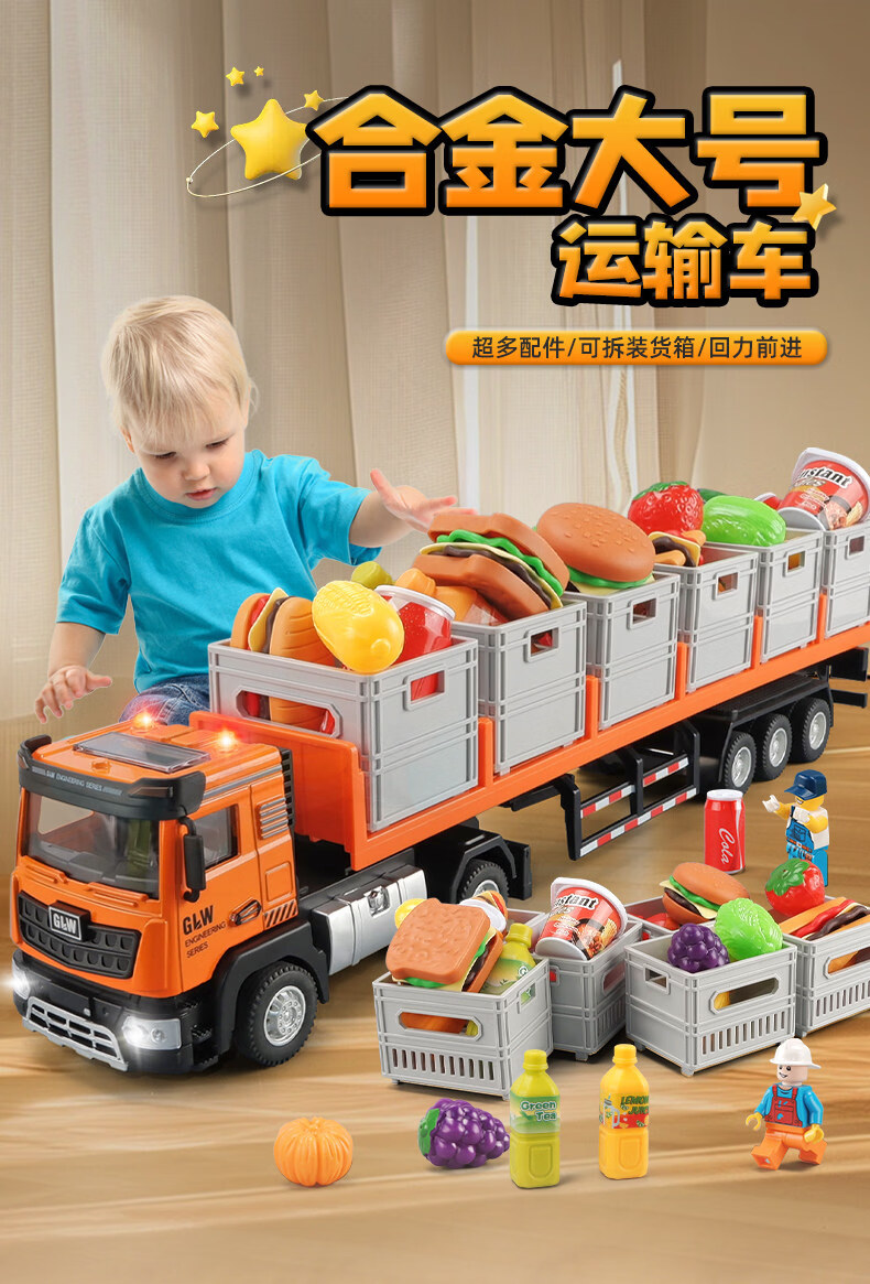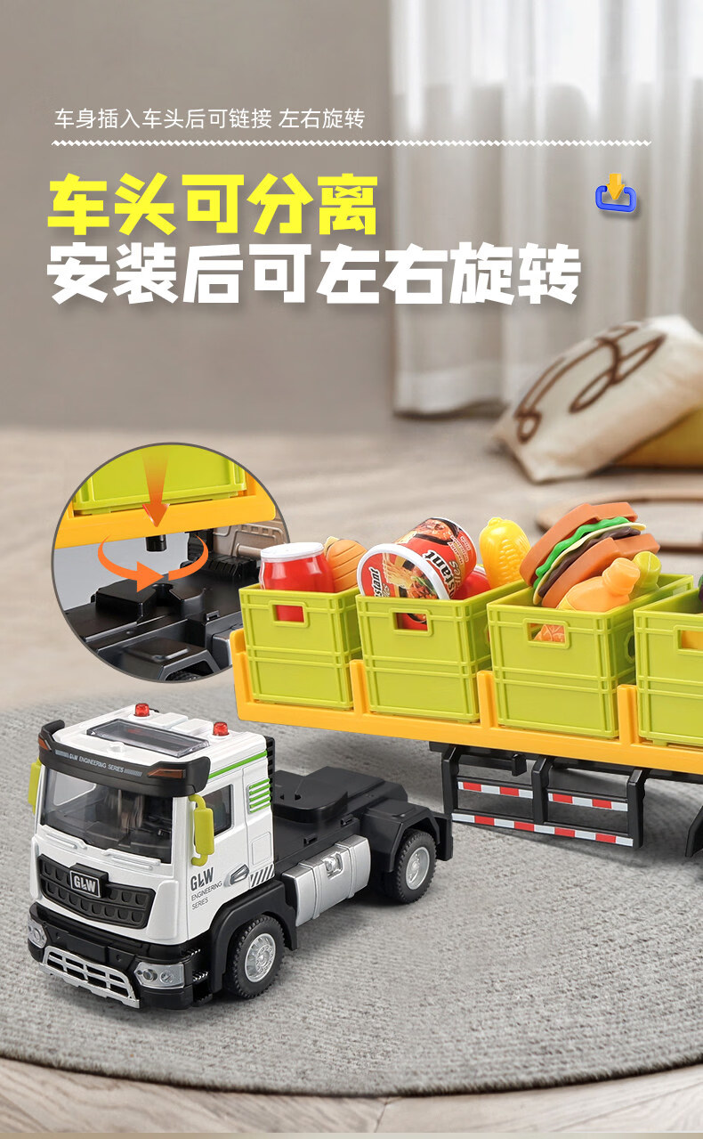 Alloy transporter toy car plus large children's car model simulation semi-trailer truck big truck boy medium cargo transporter-white truck