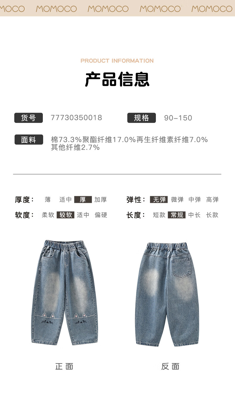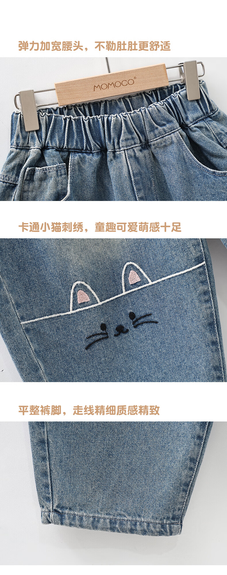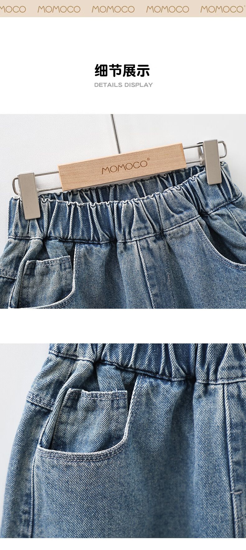 Mamie Maka (MOMOCO) children's clothing girls' jeans 2026 spring style medium and large children's fashionable jeans denim blue 90