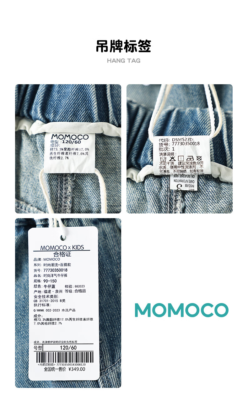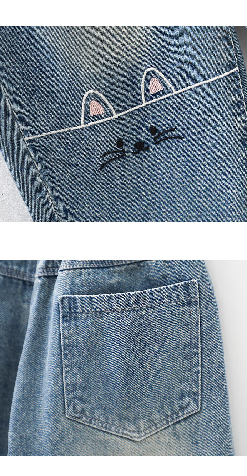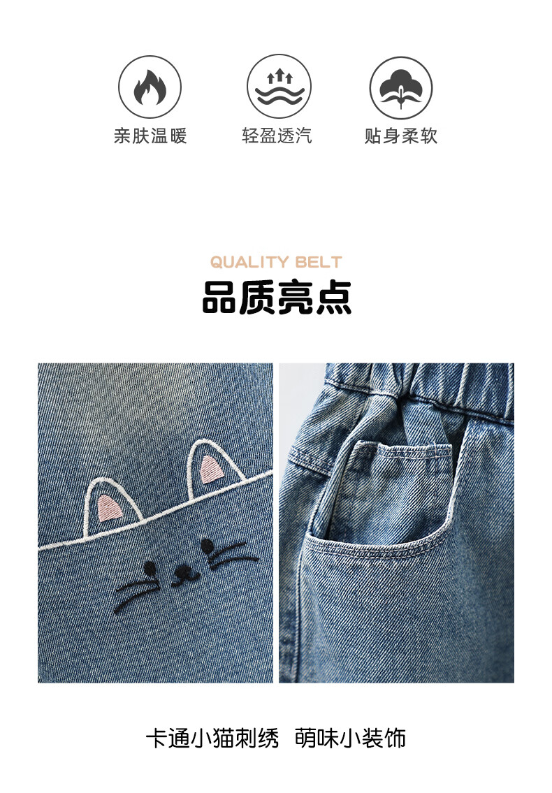 Mamie Maka (MOMOCO) children's clothing girls' jeans 2026 spring style medium and large children's fashionable jeans denim blue 90