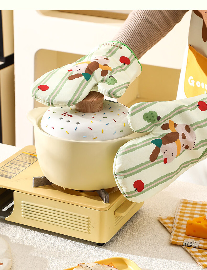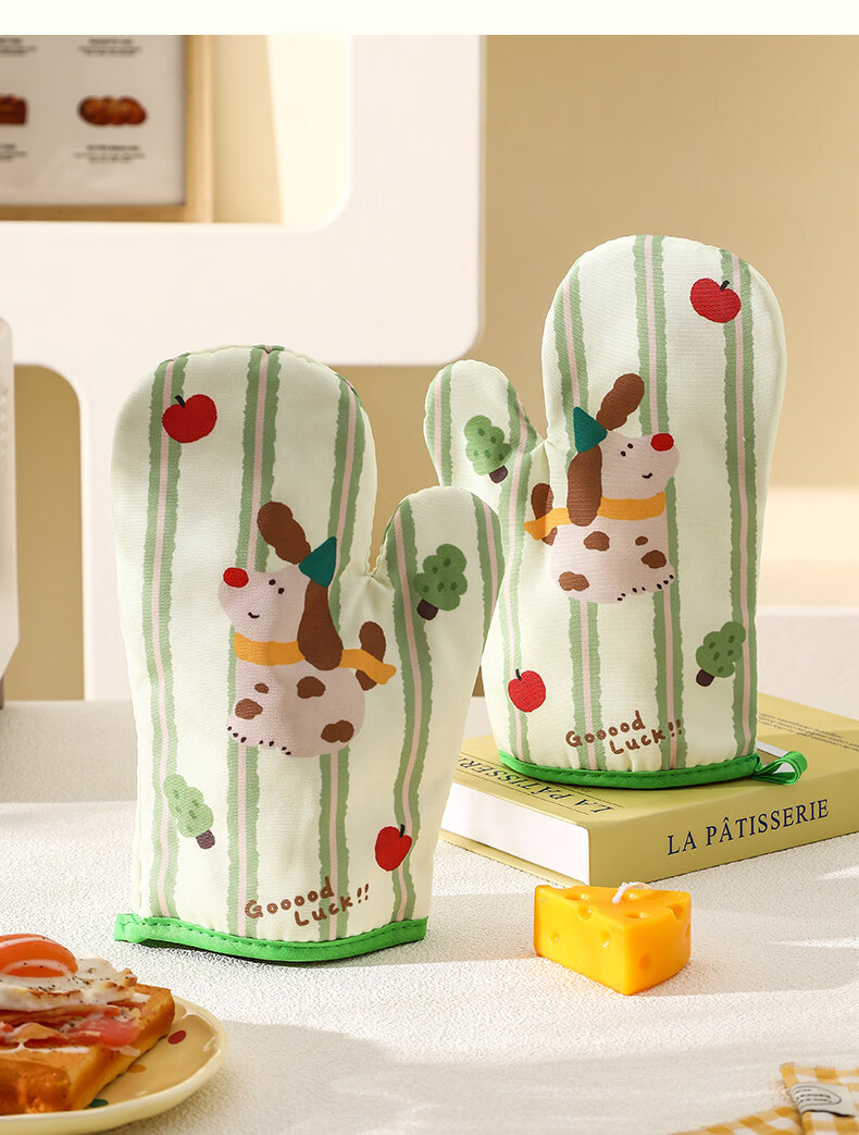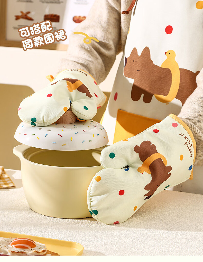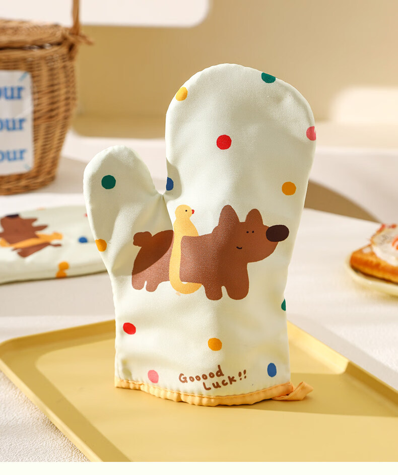 Strong anti-scalding gloves for home kitchen, thickened heat insulation, high temperature resistance, special baking gloves for oven and microwave oven, upgraded silicone version, Dachshund (left)