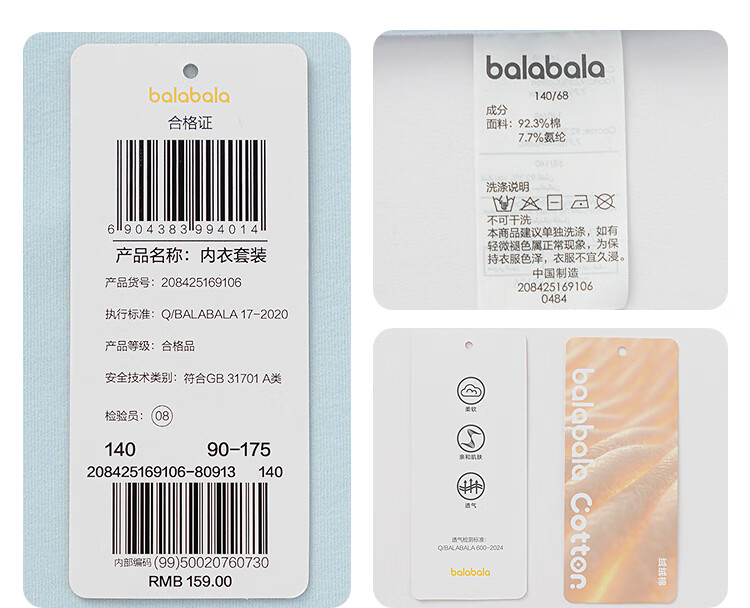 BALABALA balaOne boys' underwear set children's 2-piece new children's clothing 2025 autumn and winter comfortable and skin-friendly brown gray 20841 90