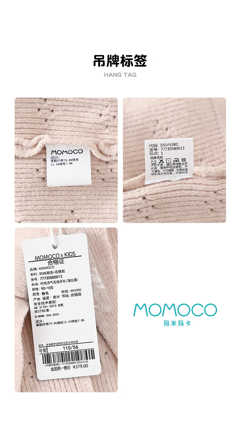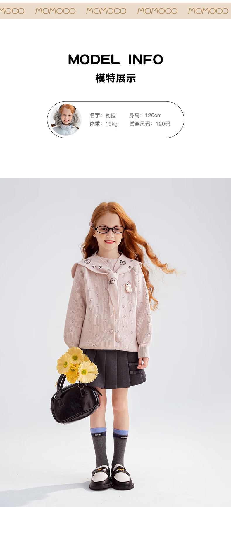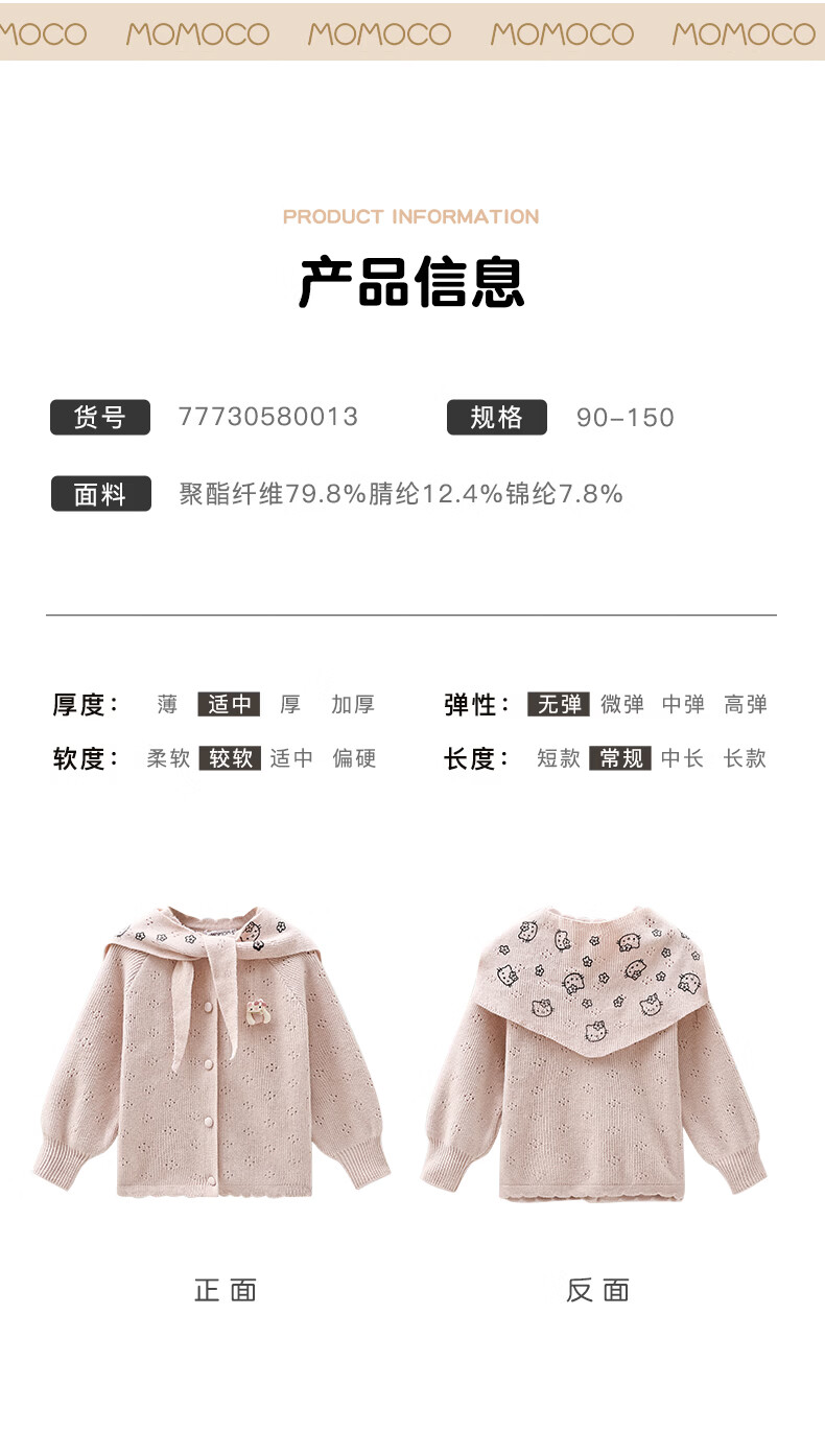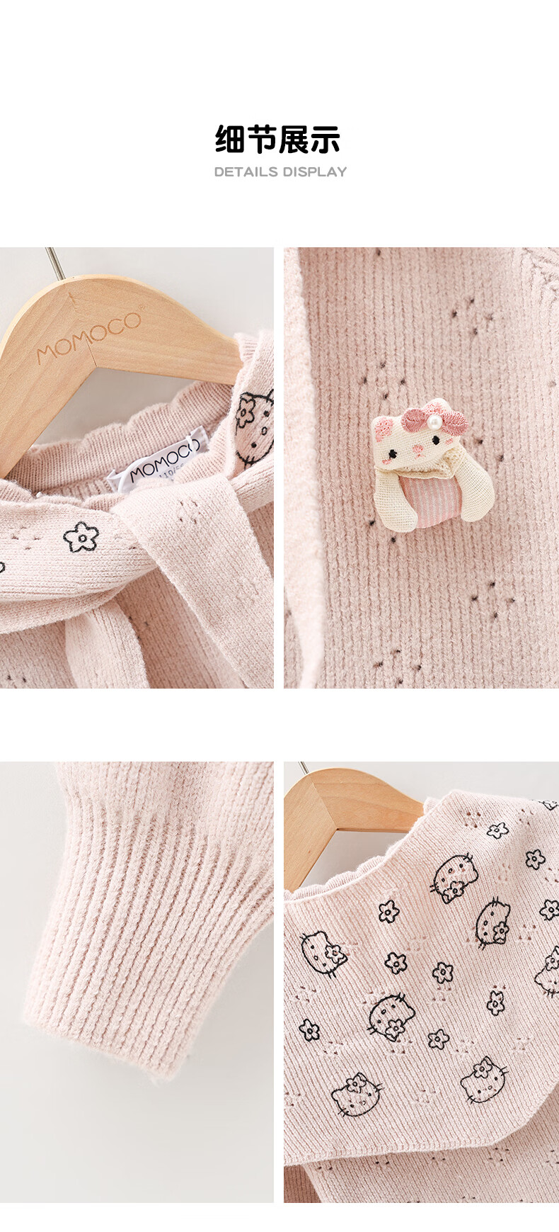 Mami Maka (MOMOCO) children's clothing girls' knitted sweater 2026 spring style medium and large children's fashionable woolen cardigan pink 110