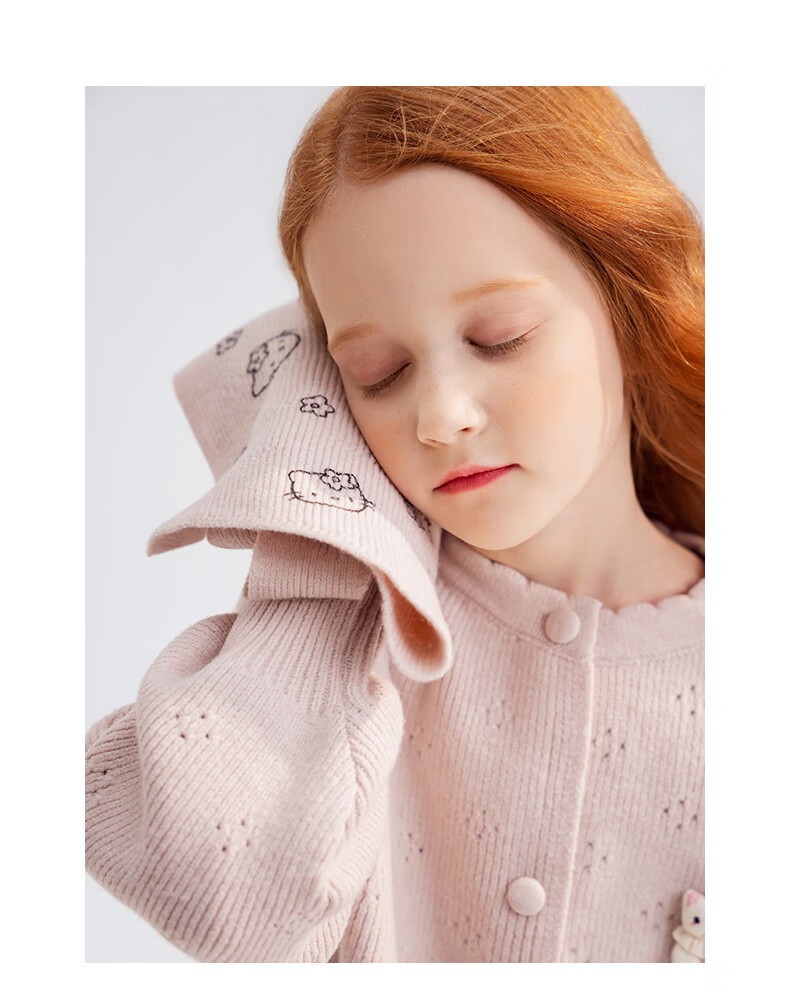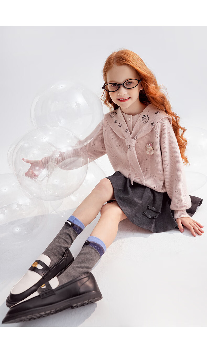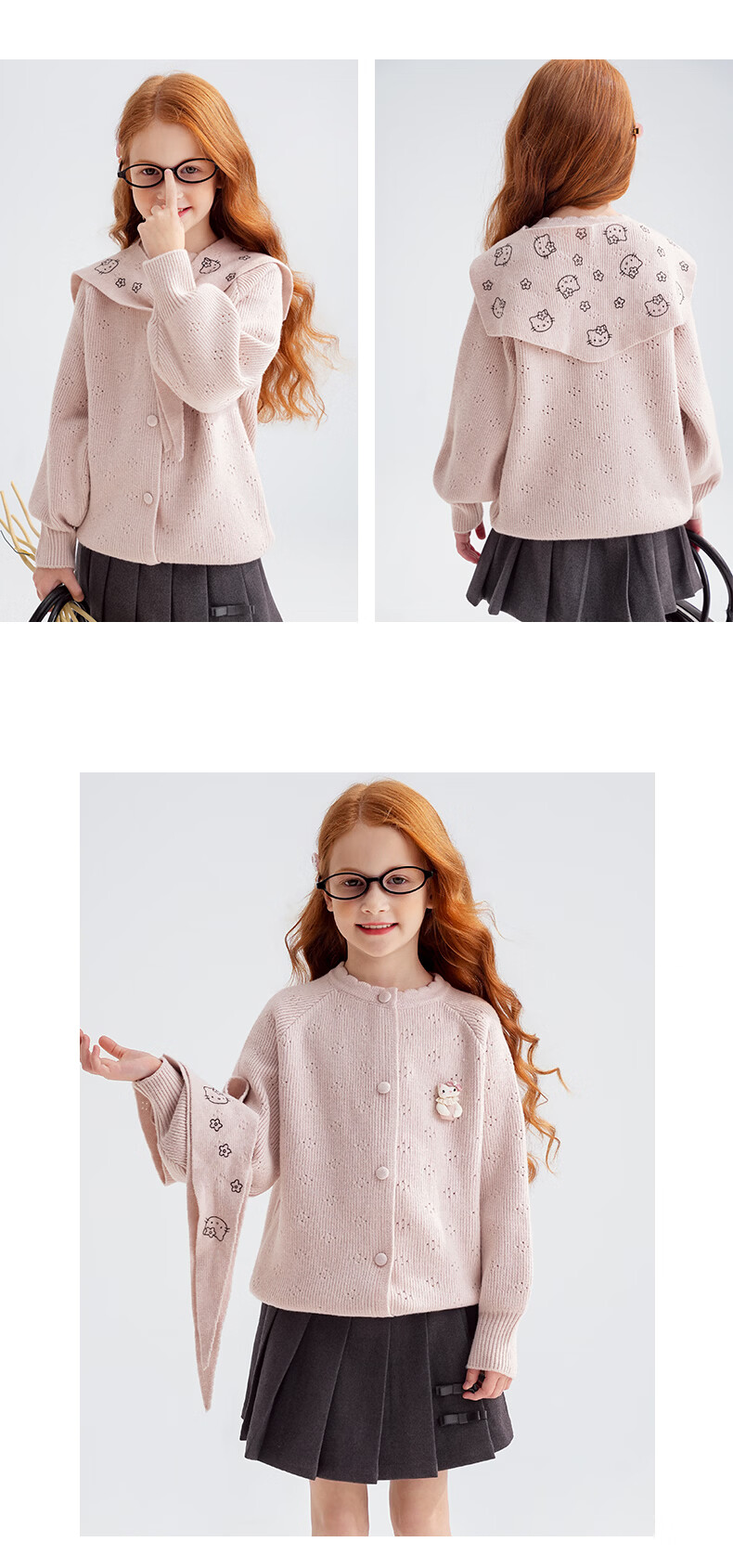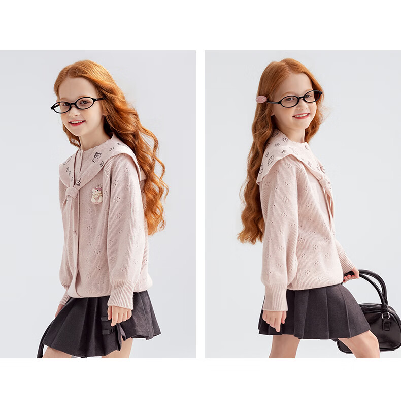 Mami Maka (MOMOCO) children's clothing girls' knitted sweater 2026 spring style medium and large children's fashionable woolen cardigan pink 110