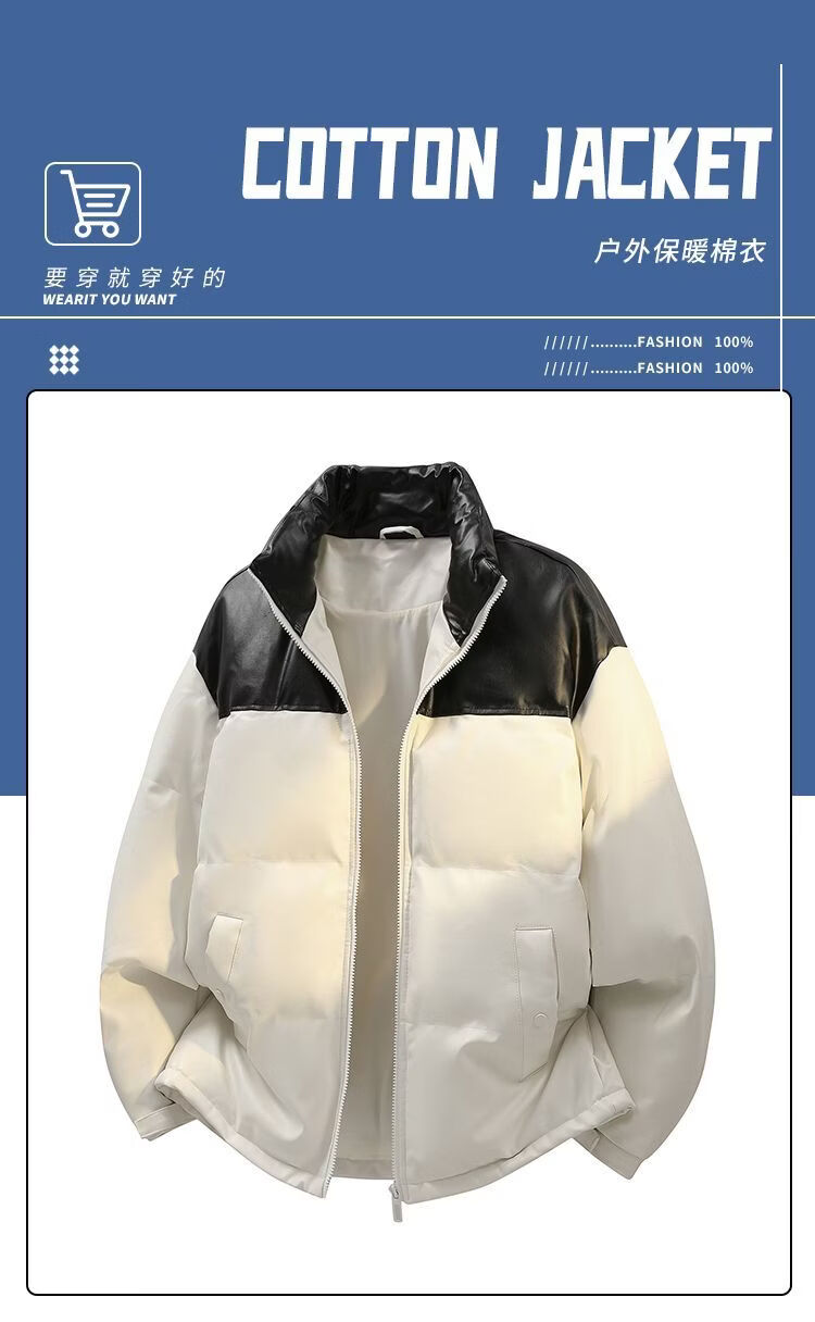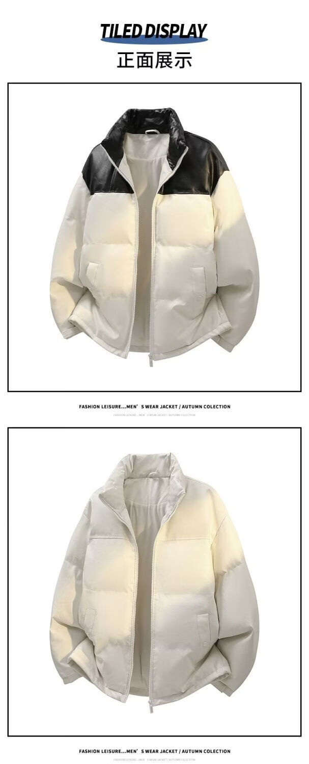 PANMAX new stand collar American versatile casual cotton coat warm cotton coat winter coat loose thickened bread coat white M recommended 110-130Jin Jin equals 0.5 kg