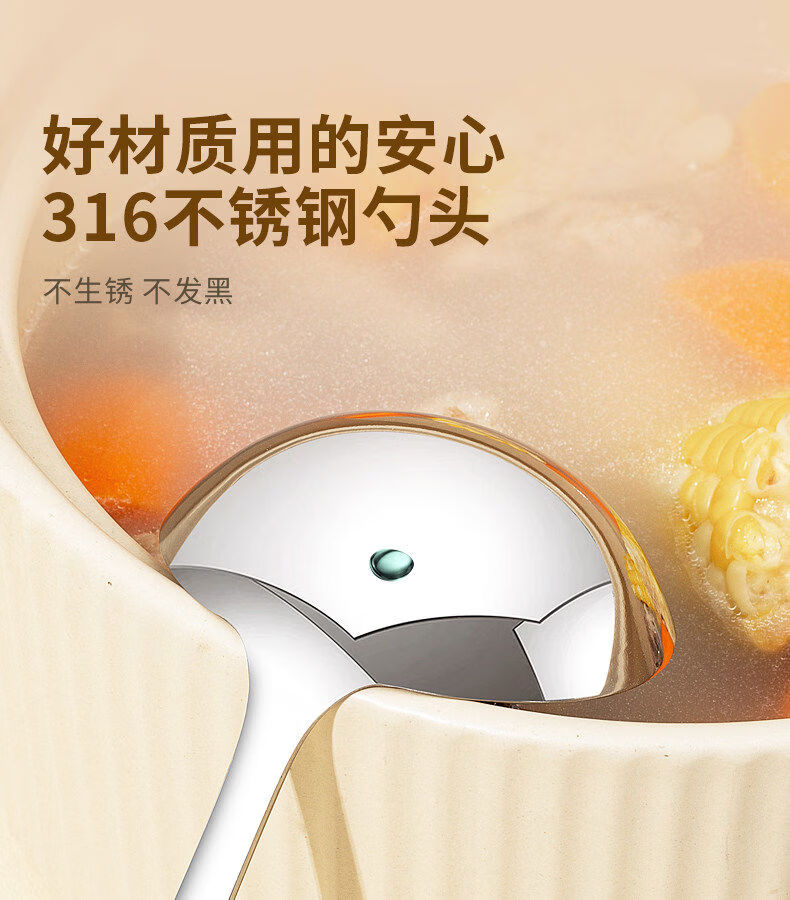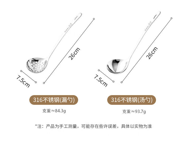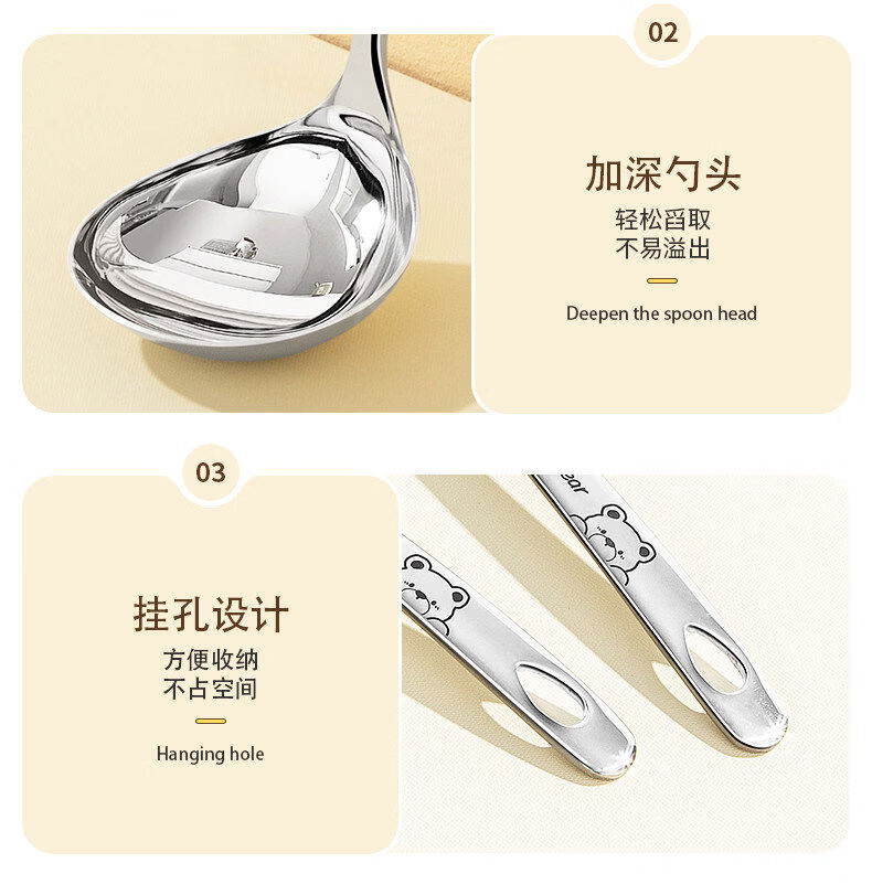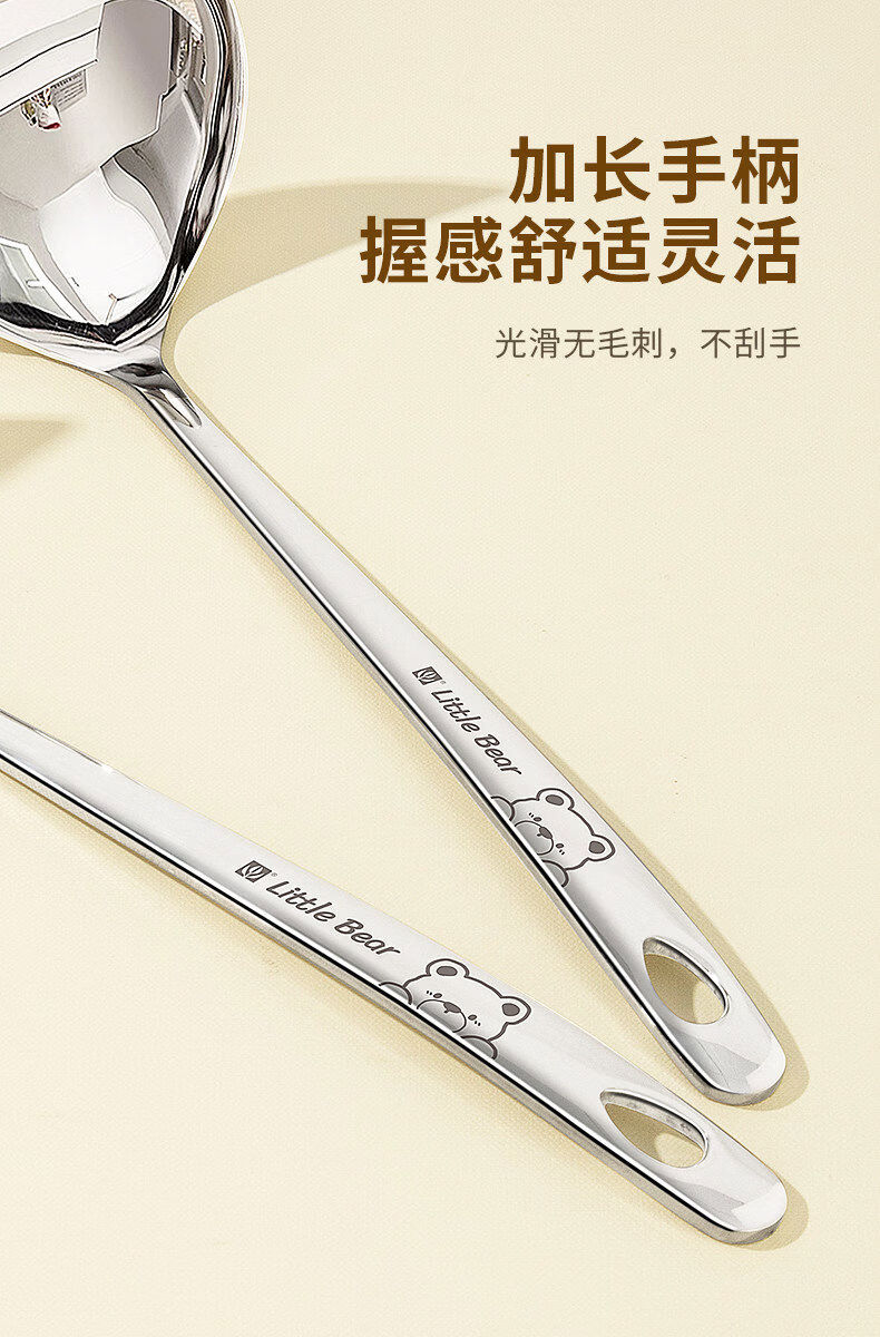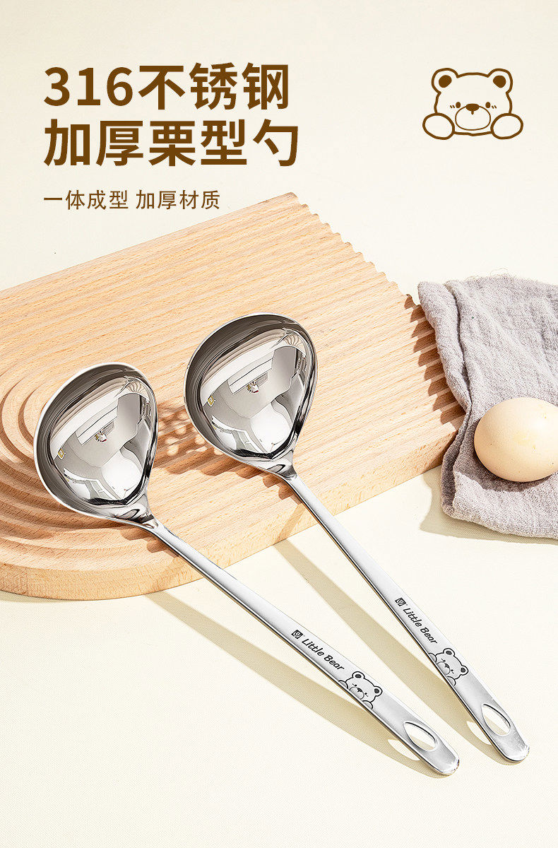 Wing Fantasy 316 Stainless Steel Spoon Large Stainless Steel Spoon Household 2024 New Long Handled Hot Pot Spoon Colander Food Grade Soup Spoon + Colander Real 316 Stainless Steel Bear Style