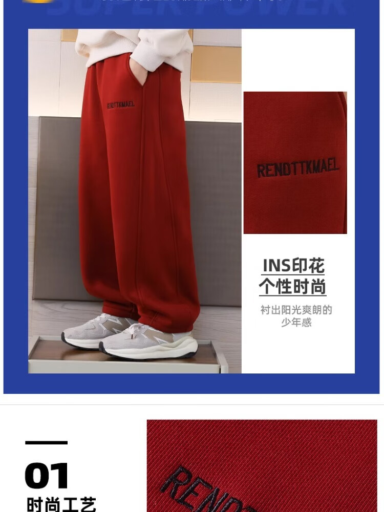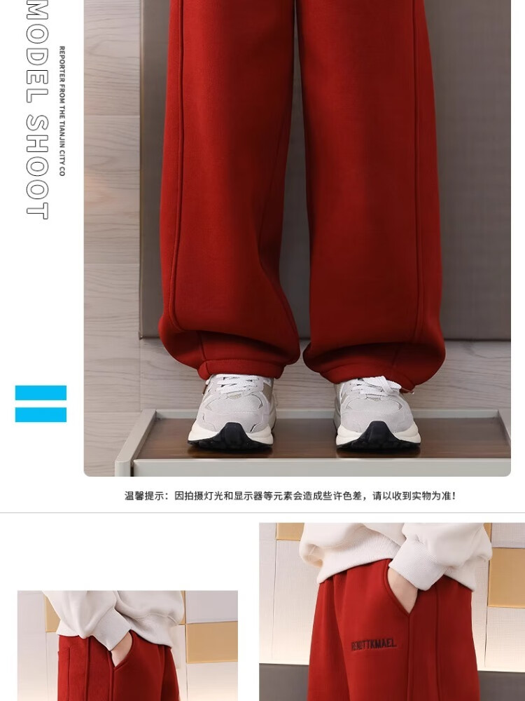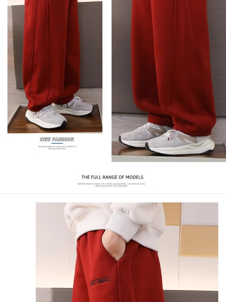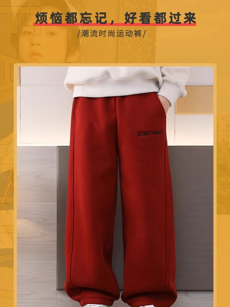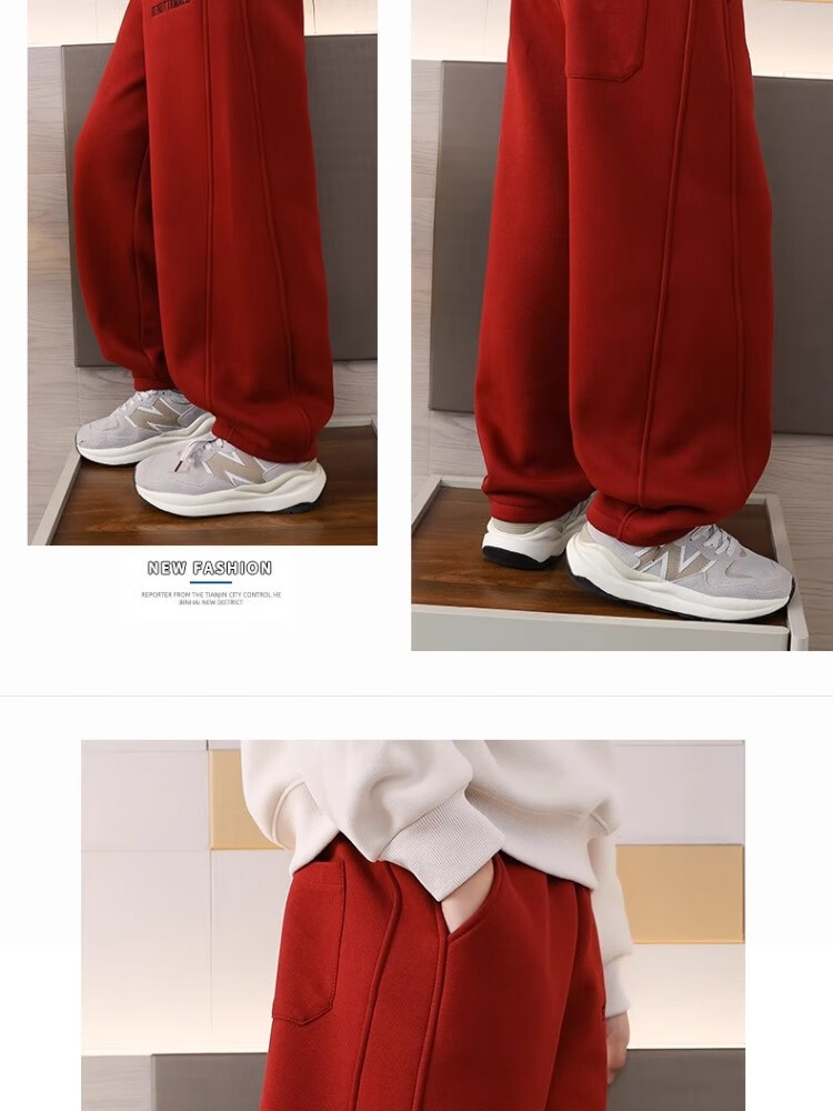 I.KARNOW boys' velvet pants 2026 new children's animal year thickened festive New Year red sweatpants winter big children 19762 gray + 15197 red velvet good luck suit 120