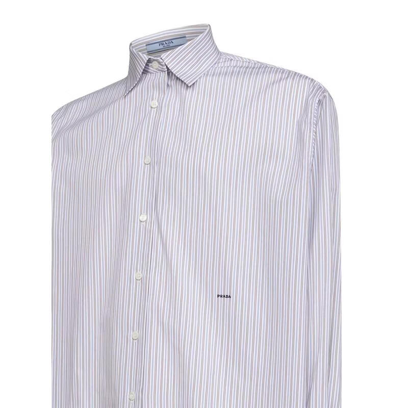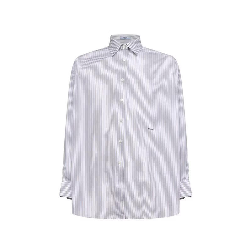 PRADA Women's Shirt Breathable and Comfortable Cotton Striped Commuting Daily Top Simple White One Size | IT-48