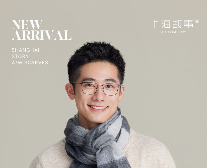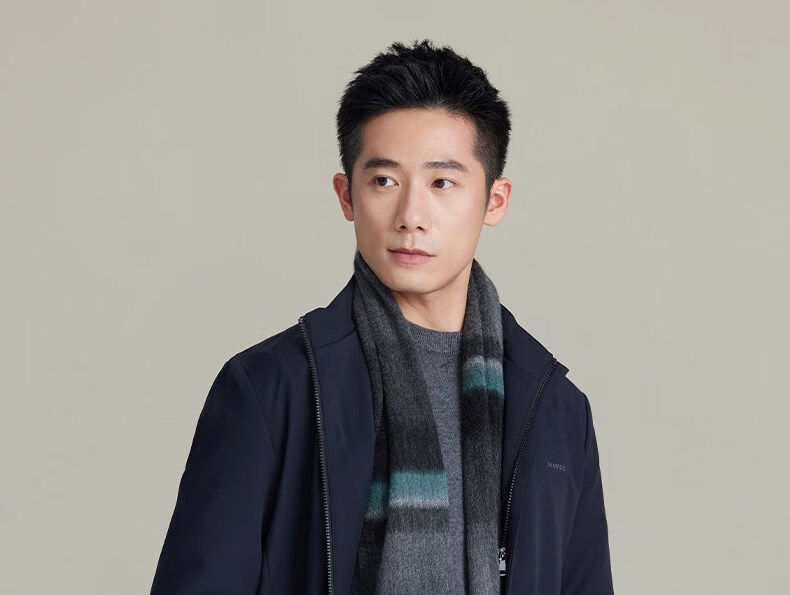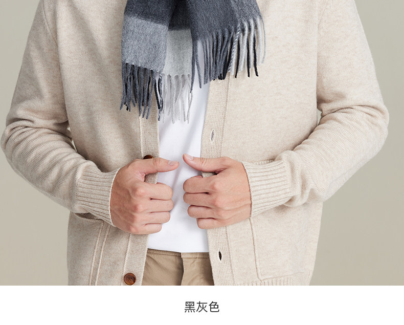 Shanghai Story Autumn and Winter New Men's Thick Warm and Soft Scarf as a Gift for Elders in a Gift Box, Black Gray