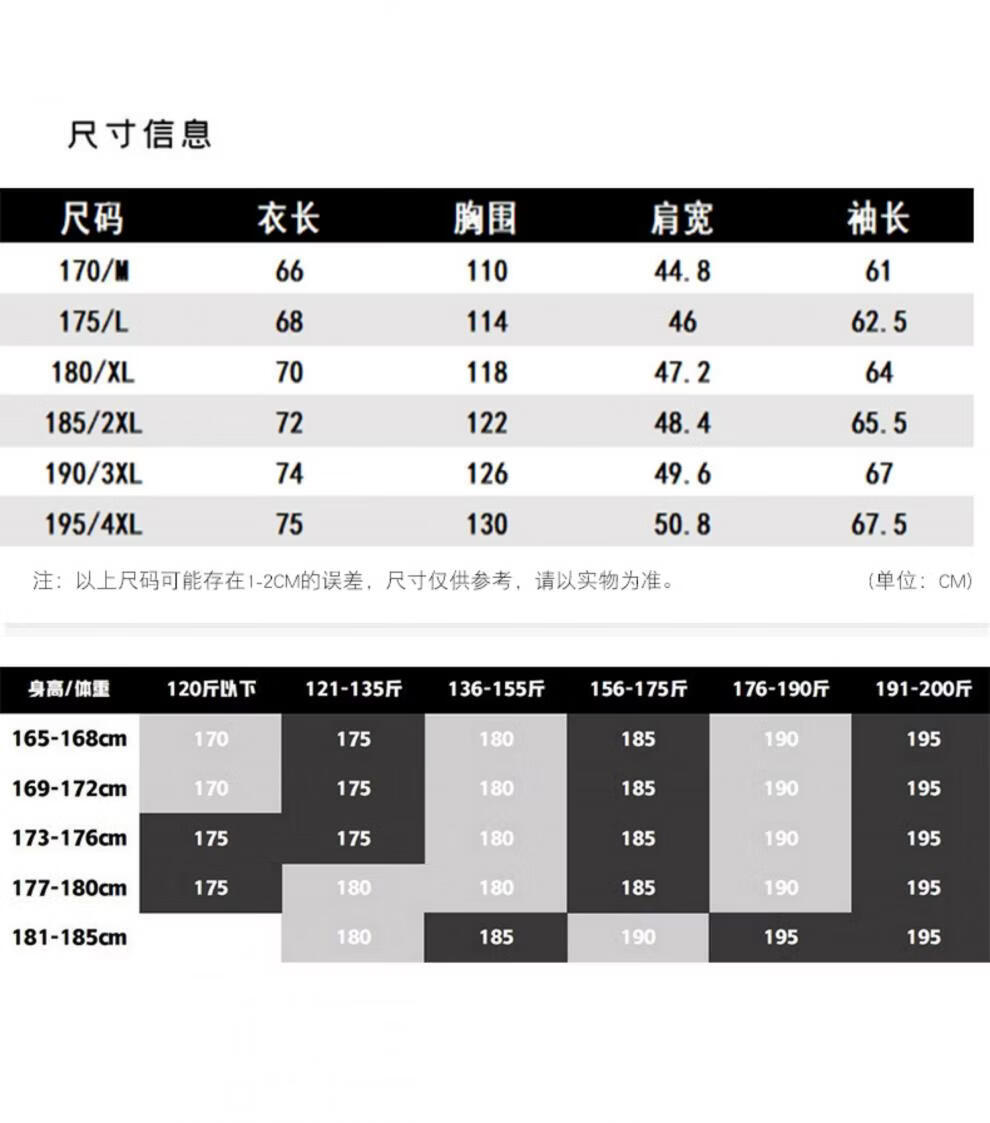 China (cm) 165 / 88-90 170 / 96-98 175 / 108-110 180 / 118-122 185 / 126-130