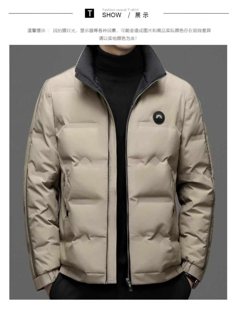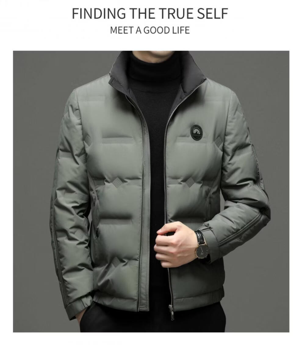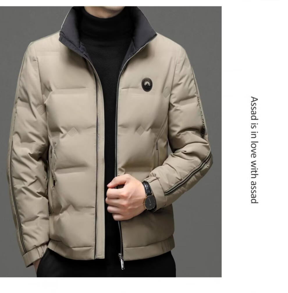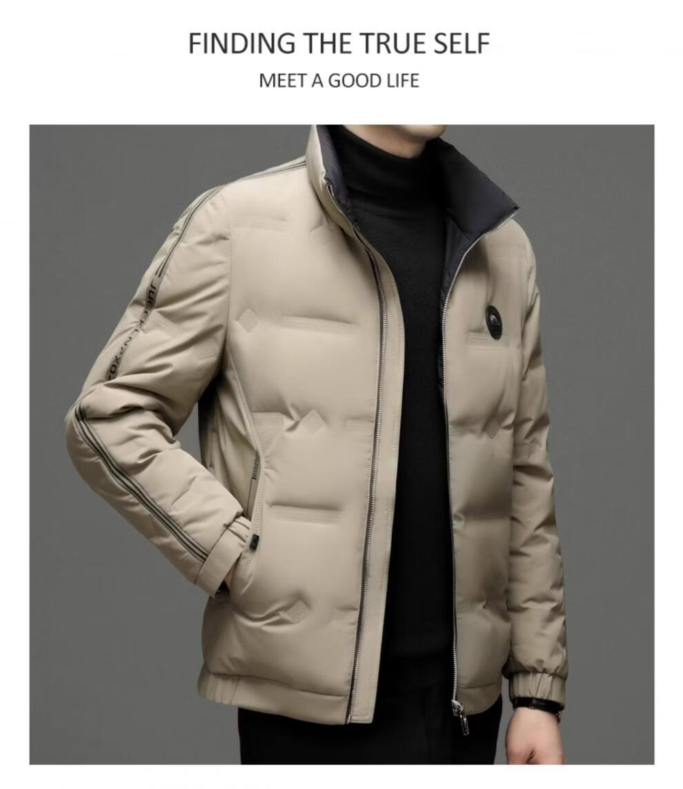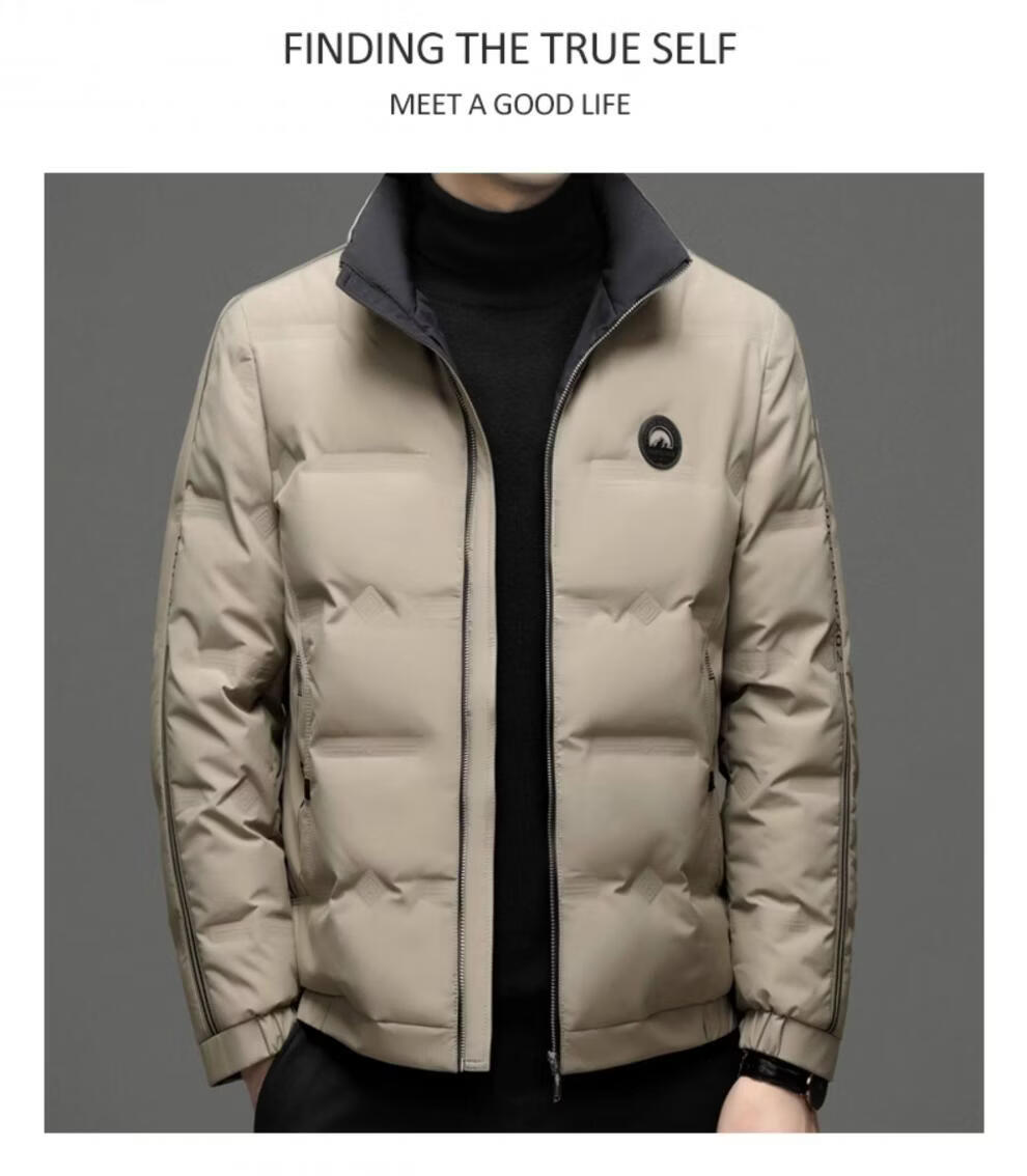 EMPORIO ARMANI Armani autumn and winter down jacket men's white duck down thickened long-sleeved high-end stand-up collar lightweight warm jacket khaki 3XL 190