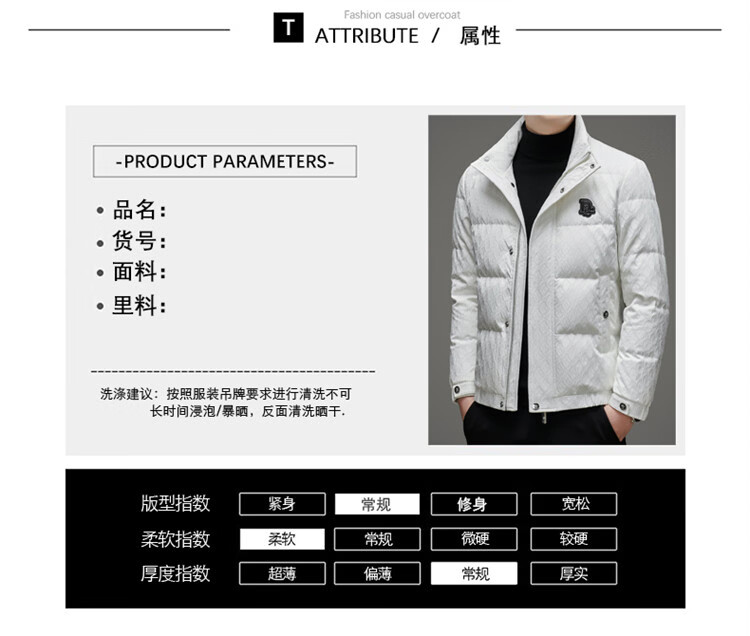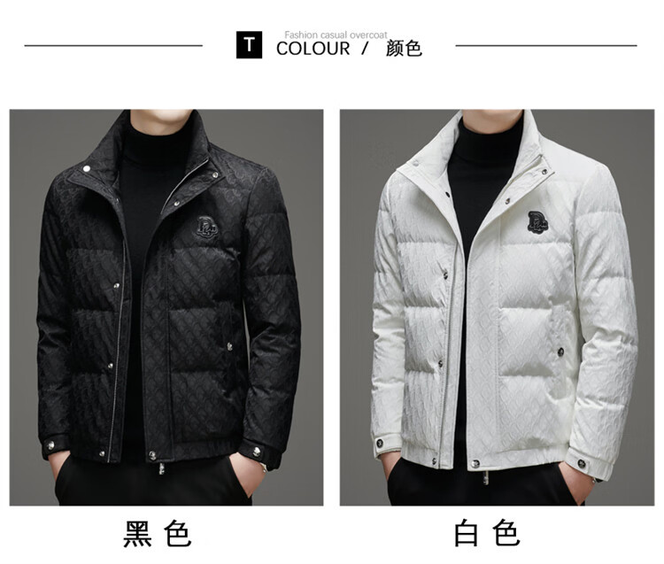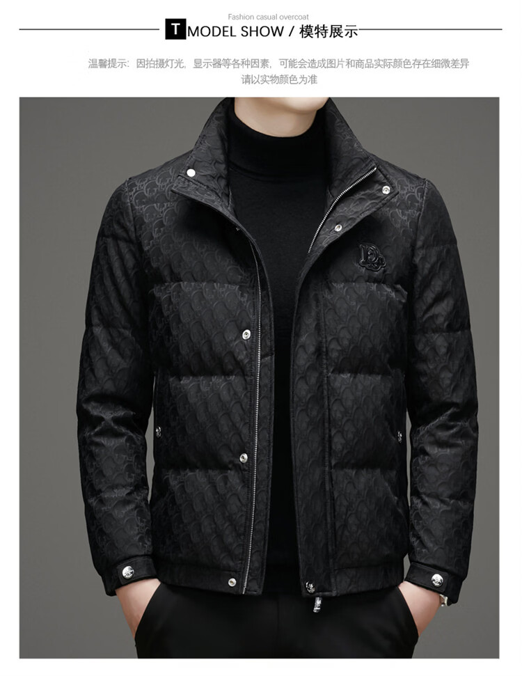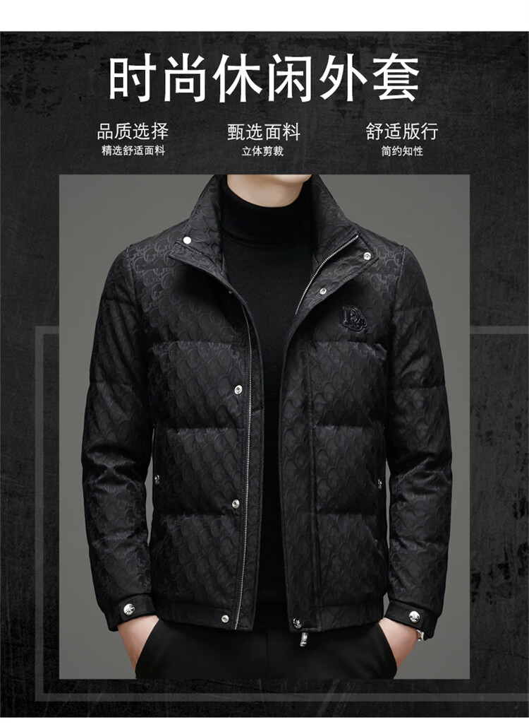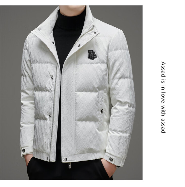 EMPORIO ARMANI Armani down jacket men's short fashion casual thickened warm and cold-proof high-end men's stand-up collar jacket white 4XL 195