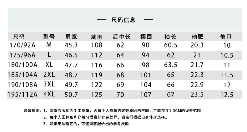 China (cm) 160-165/84-86 165-170 / 88-90 167-172 / 92-96 168-173 / 98-102 170-176 / 106-110