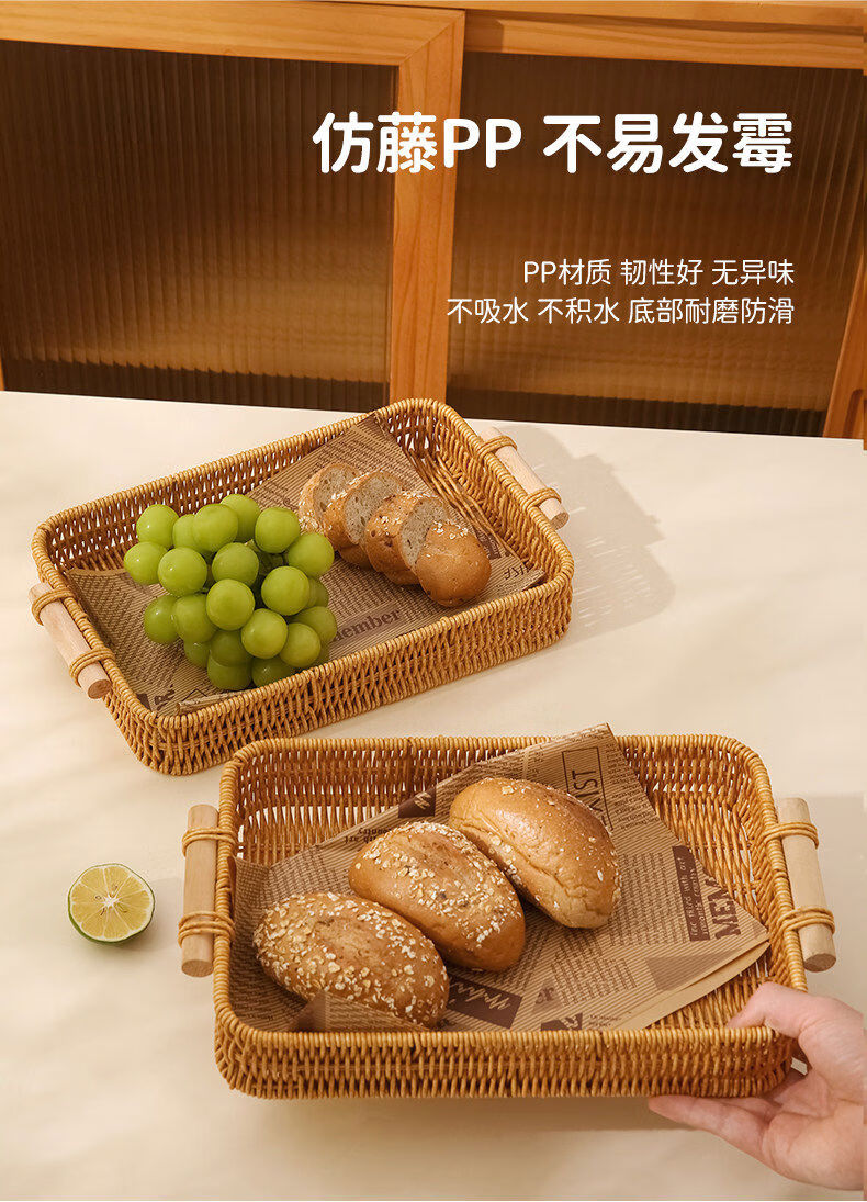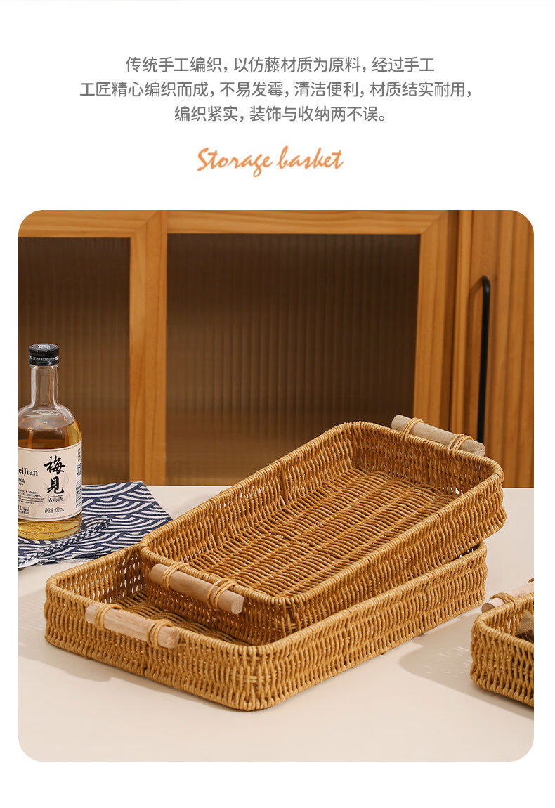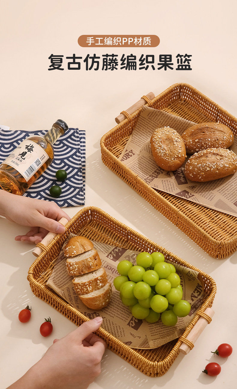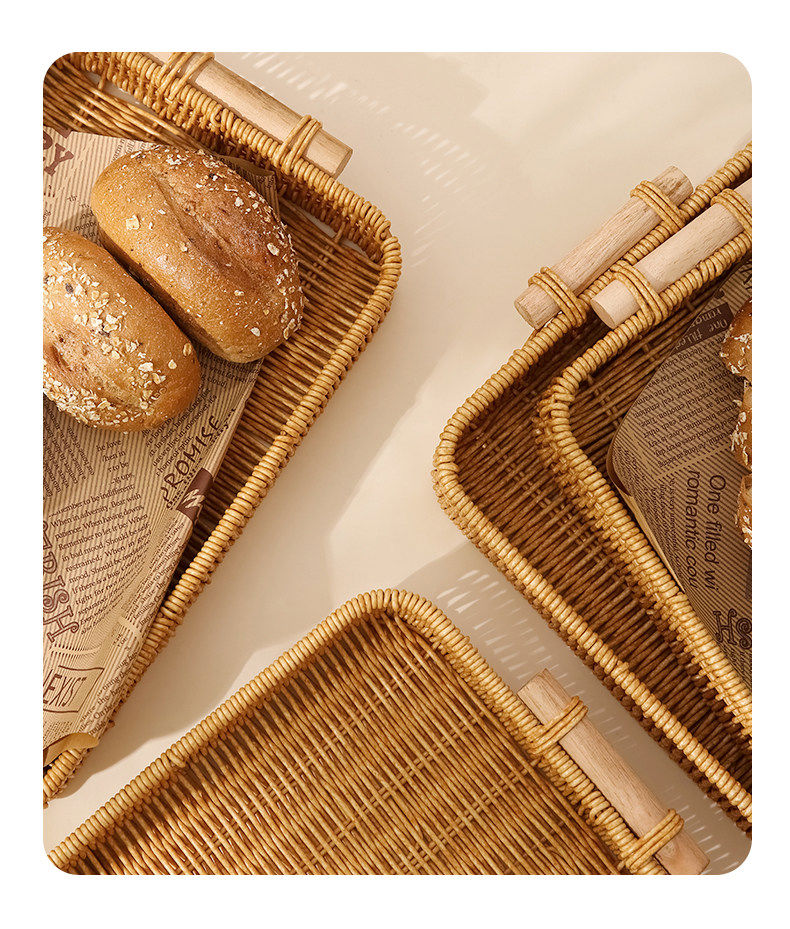 Fantasy snack display plate household fruit plate afternoon tea snack plate imitation rattan tray steamed bun basket noodle bread basket square - medium size 1
