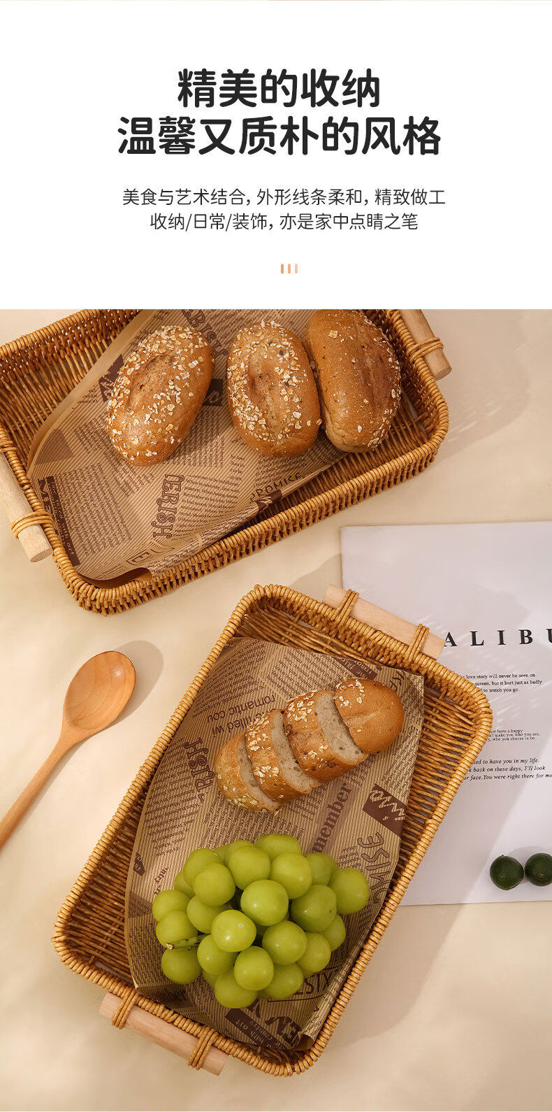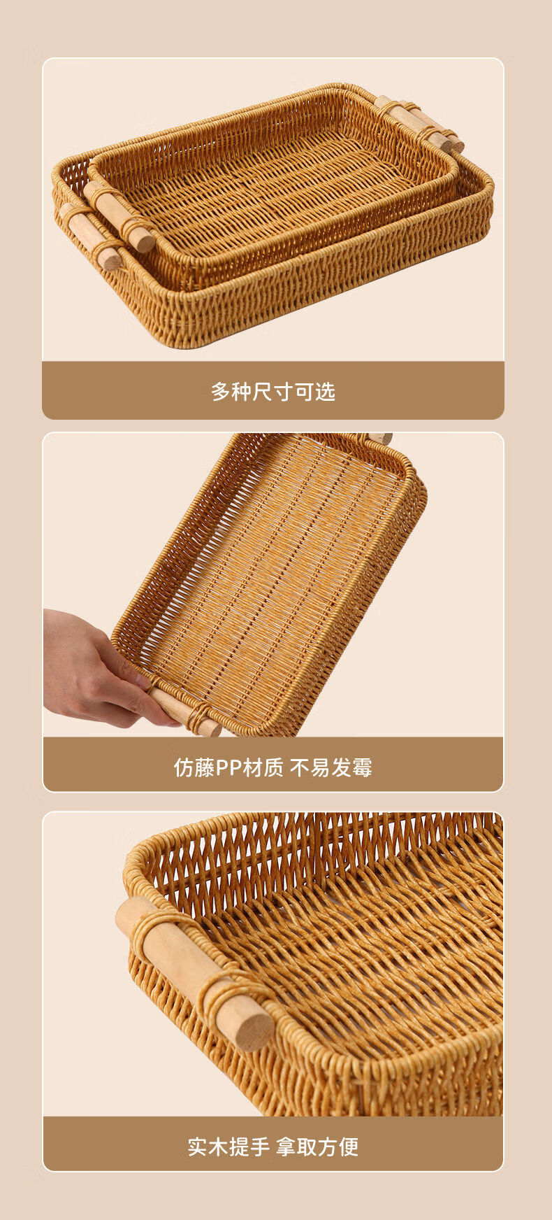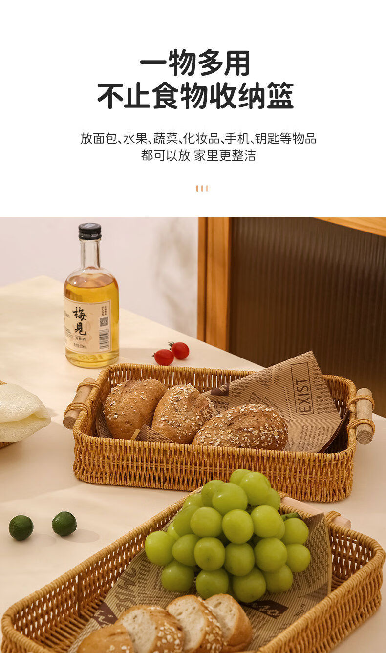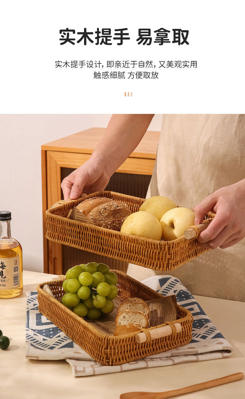 Fantasy snack display plate household fruit plate afternoon tea snack plate imitation rattan tray steamed bun basket noodle bread basket square - medium size 1
