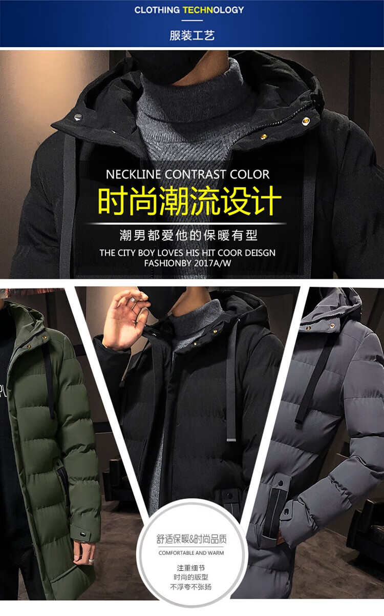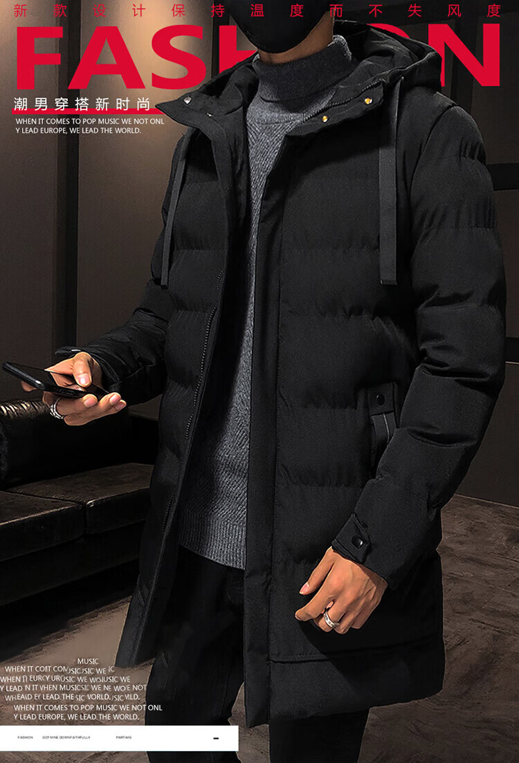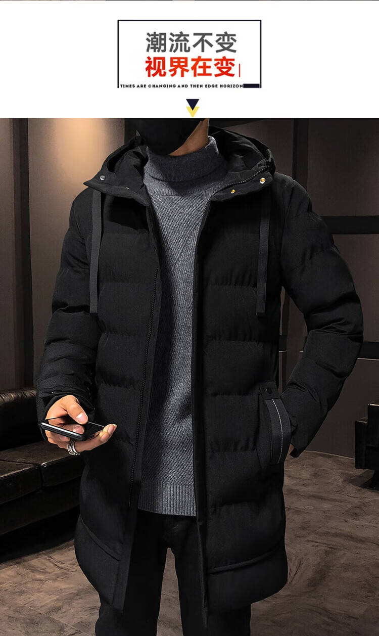 Woodpecker (TUCANO) down jacket winter men's mid-length coat to prevent cold and warm cotton jacket thickened youth hooded cotton coat men's fashion black XL