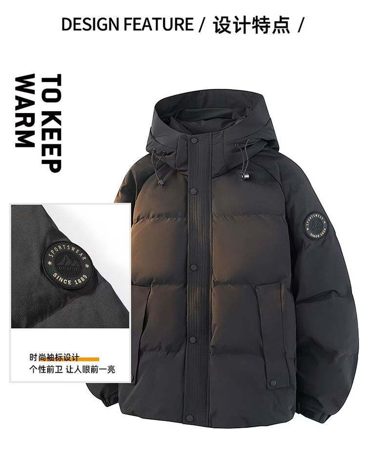 PANMAX new winter versatile down jacket trendy loose and comfortable thickened warm casual hooded down jacket black S recommended 80-105Jin Jin equals 0.5kg