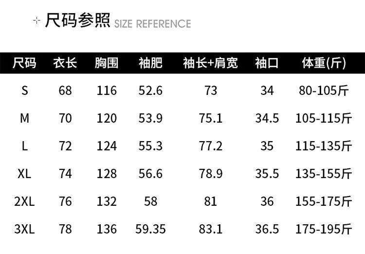 China (cm) 165 / 88-90 170 / 96-98 175 / 108-110 180 / 118-122 185 / 126-130