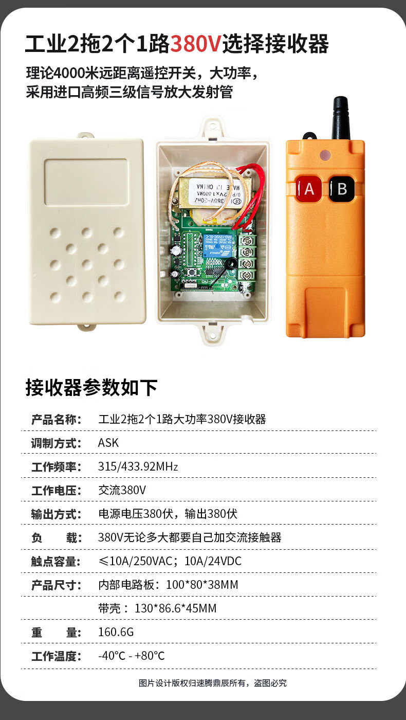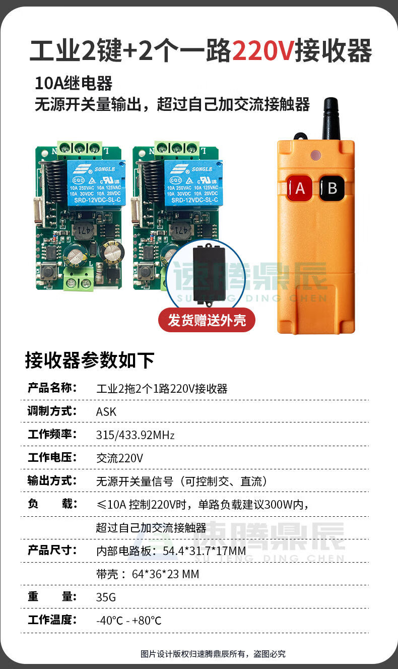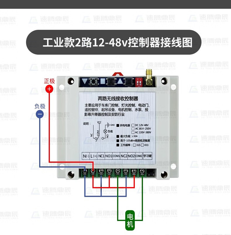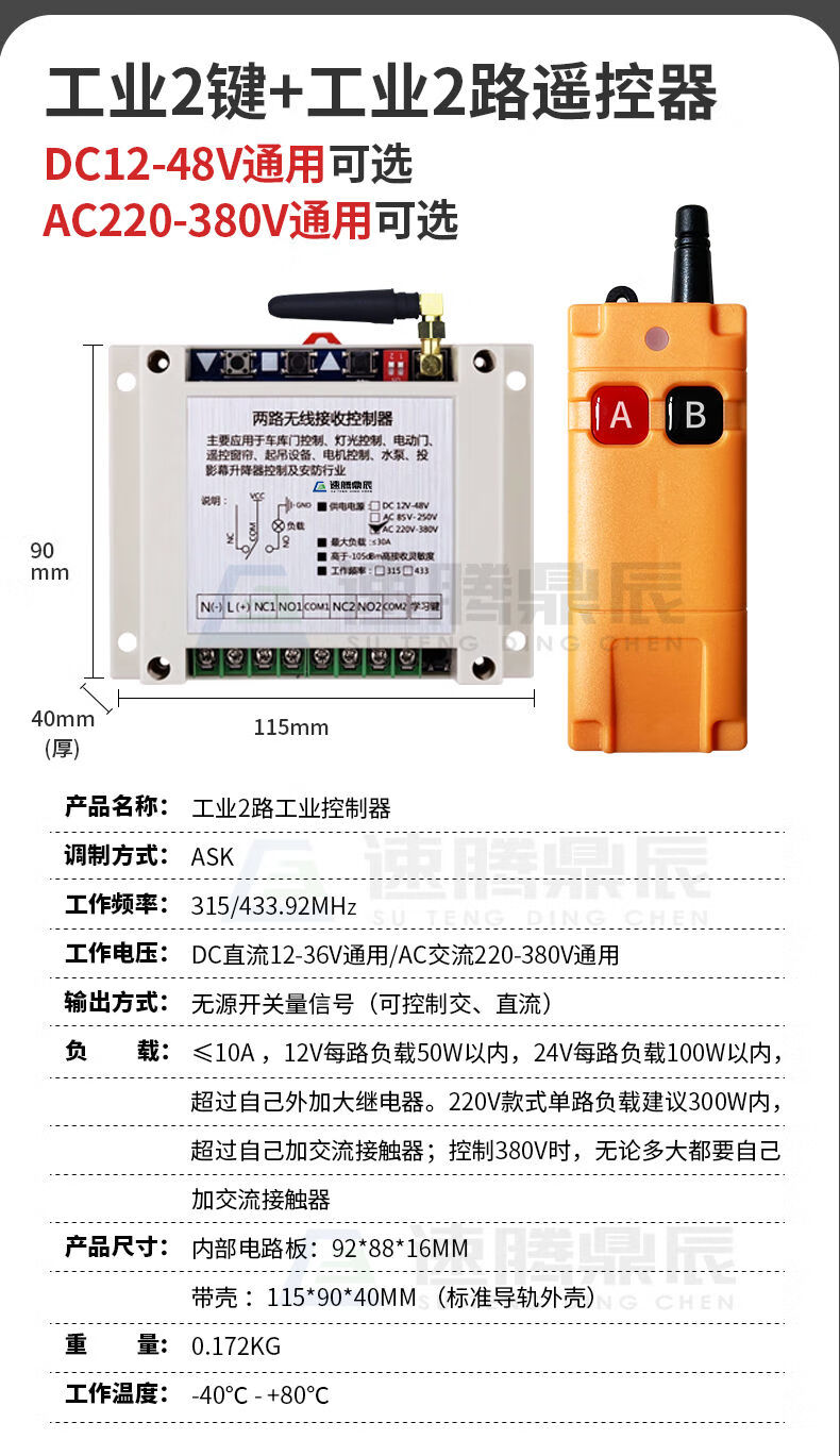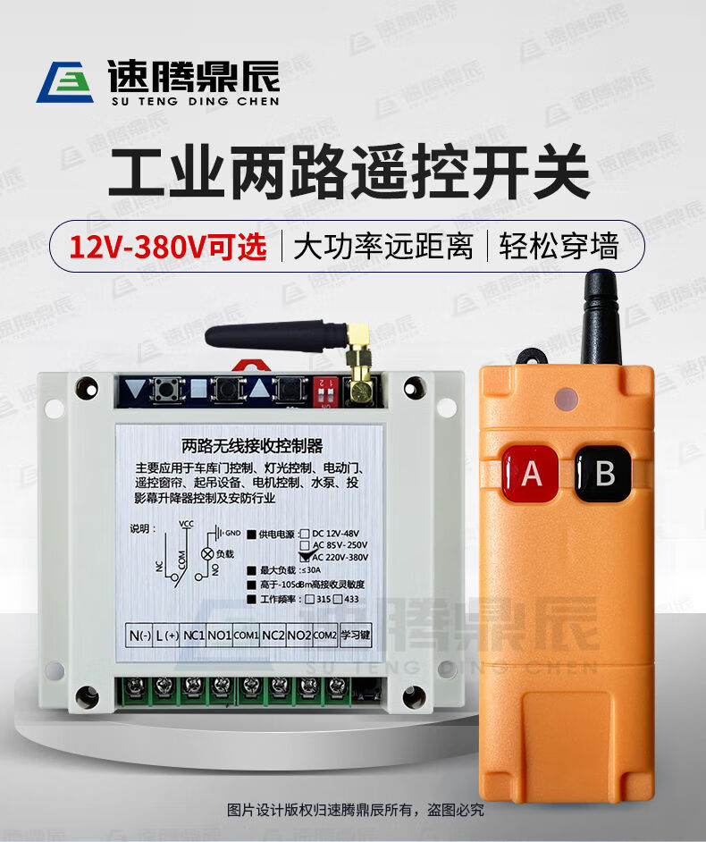 Industrial 220V-380V wireless remote control switch water pump motor forward and reverse electric cabinet button curtain 24V controller upgrade industrial 2-button handle + 2-way 12V10A passive