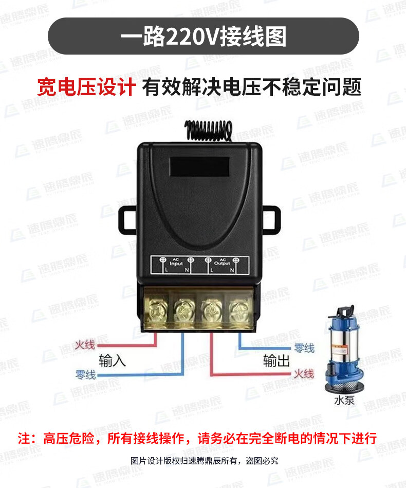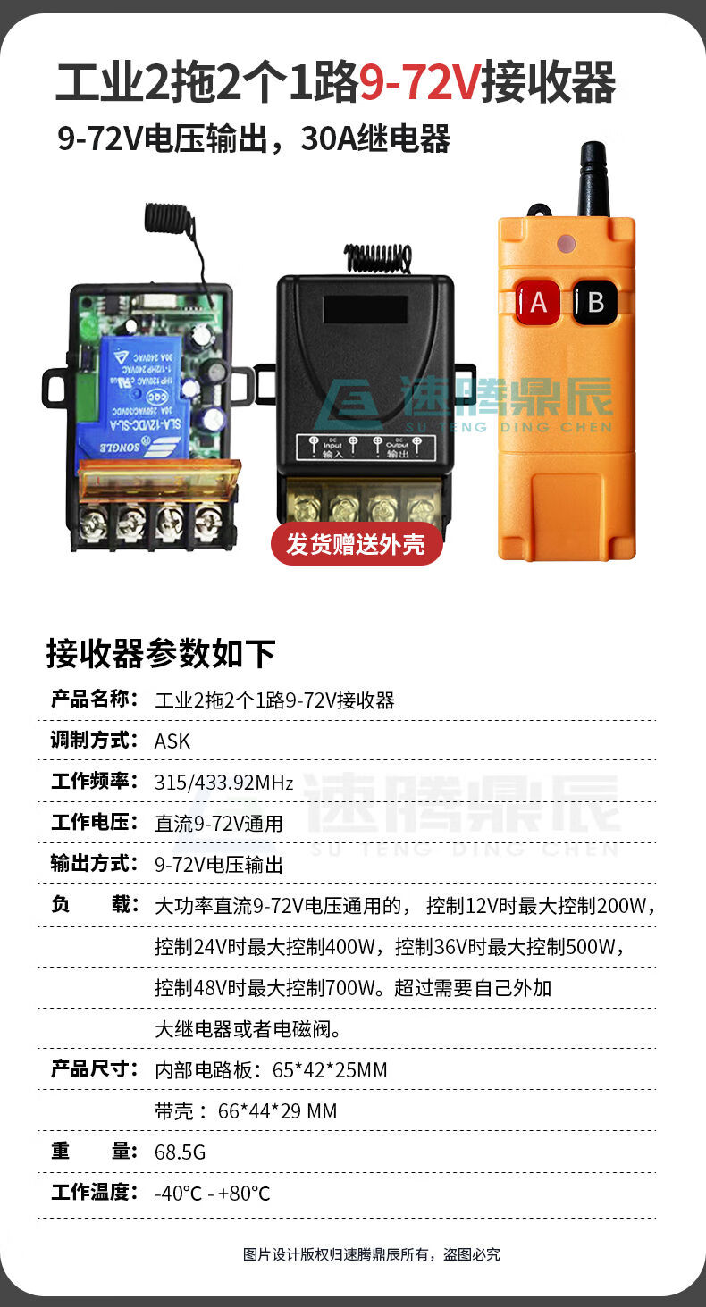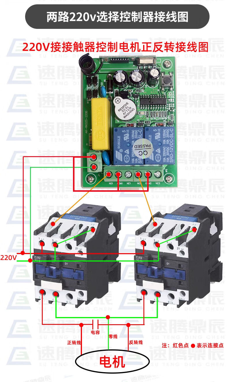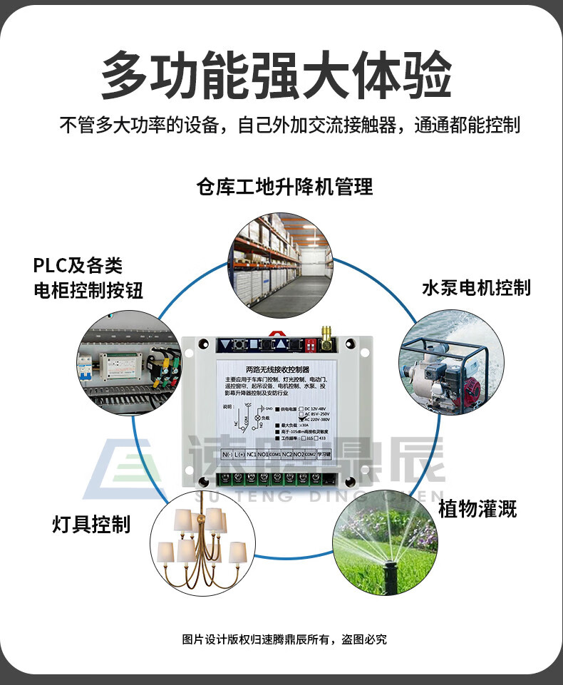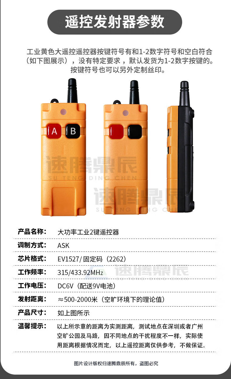 Industrial 220V-380V wireless remote control switch water pump motor forward and reverse electric cabinet button curtain 24V controller upgrade industrial 2-button handle + 2-way 12V10A passive