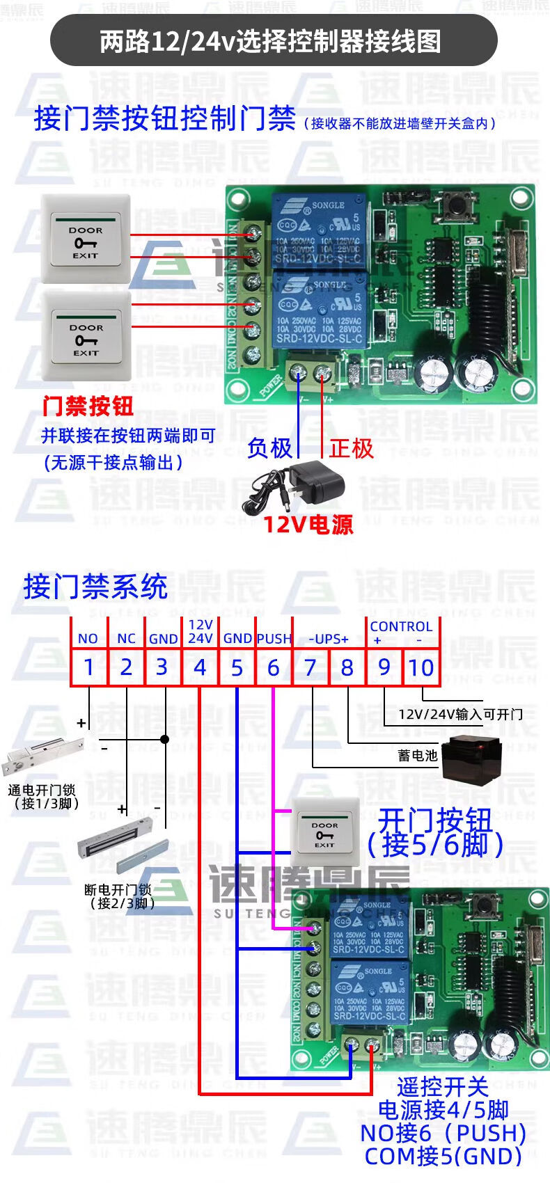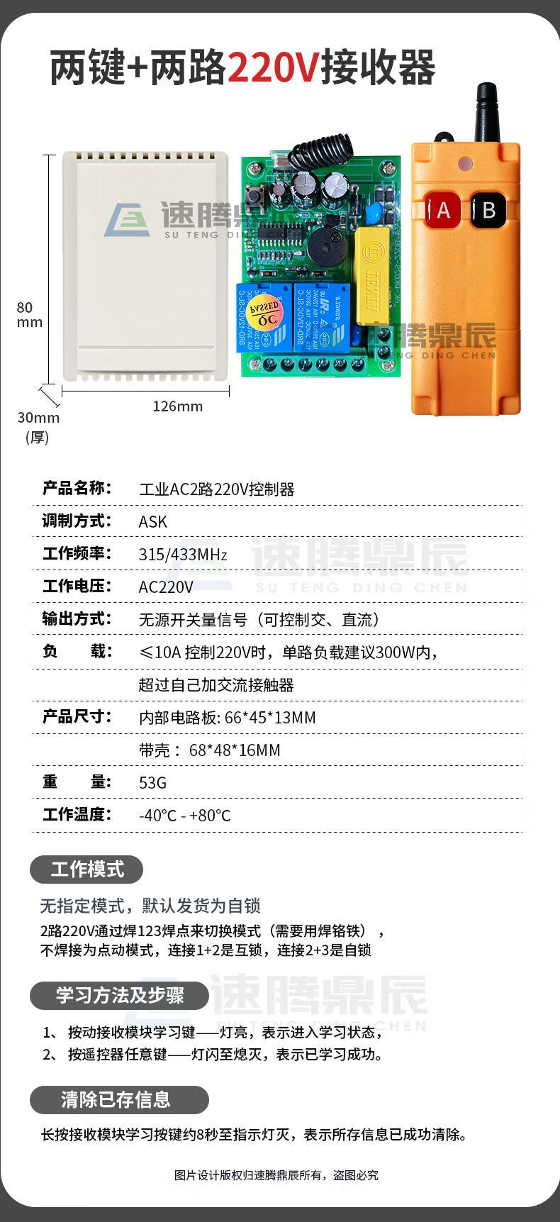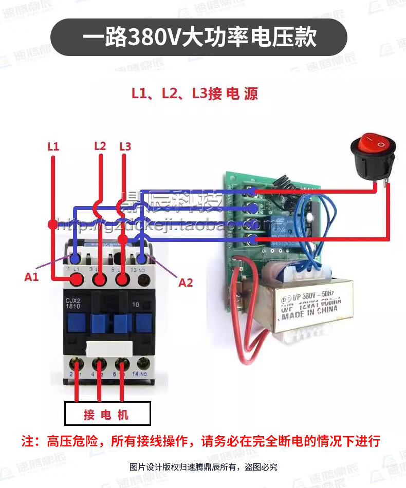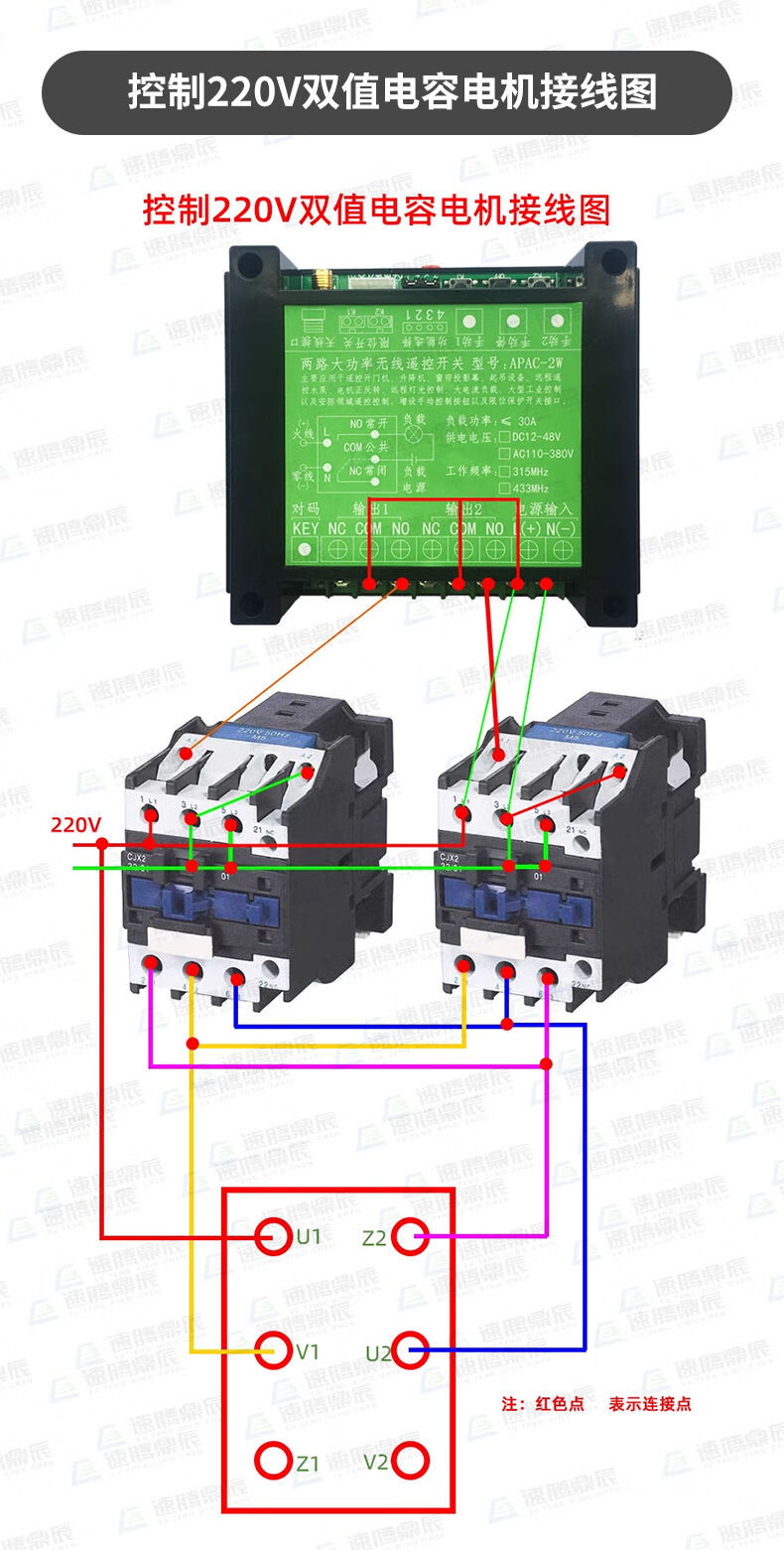 Industrial 220V-380V wireless remote control switch water pump motor forward and reverse electric cabinet button curtain 24V controller upgrade industrial 2-button handle + 2-way 12V10A passive