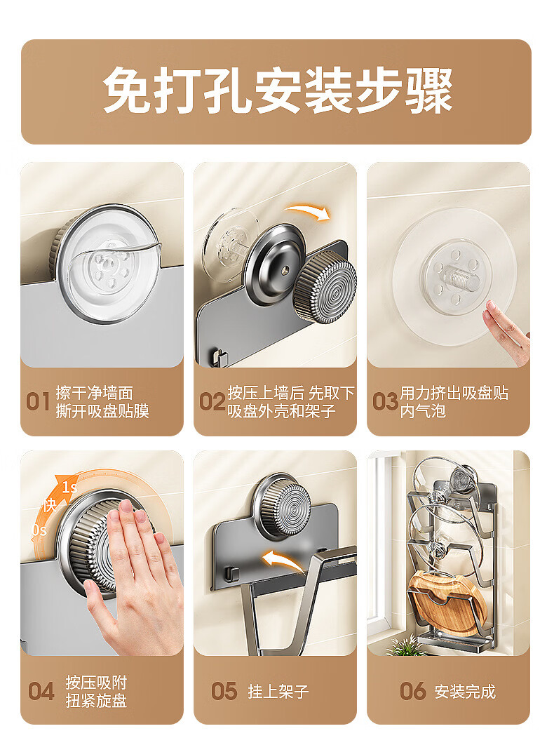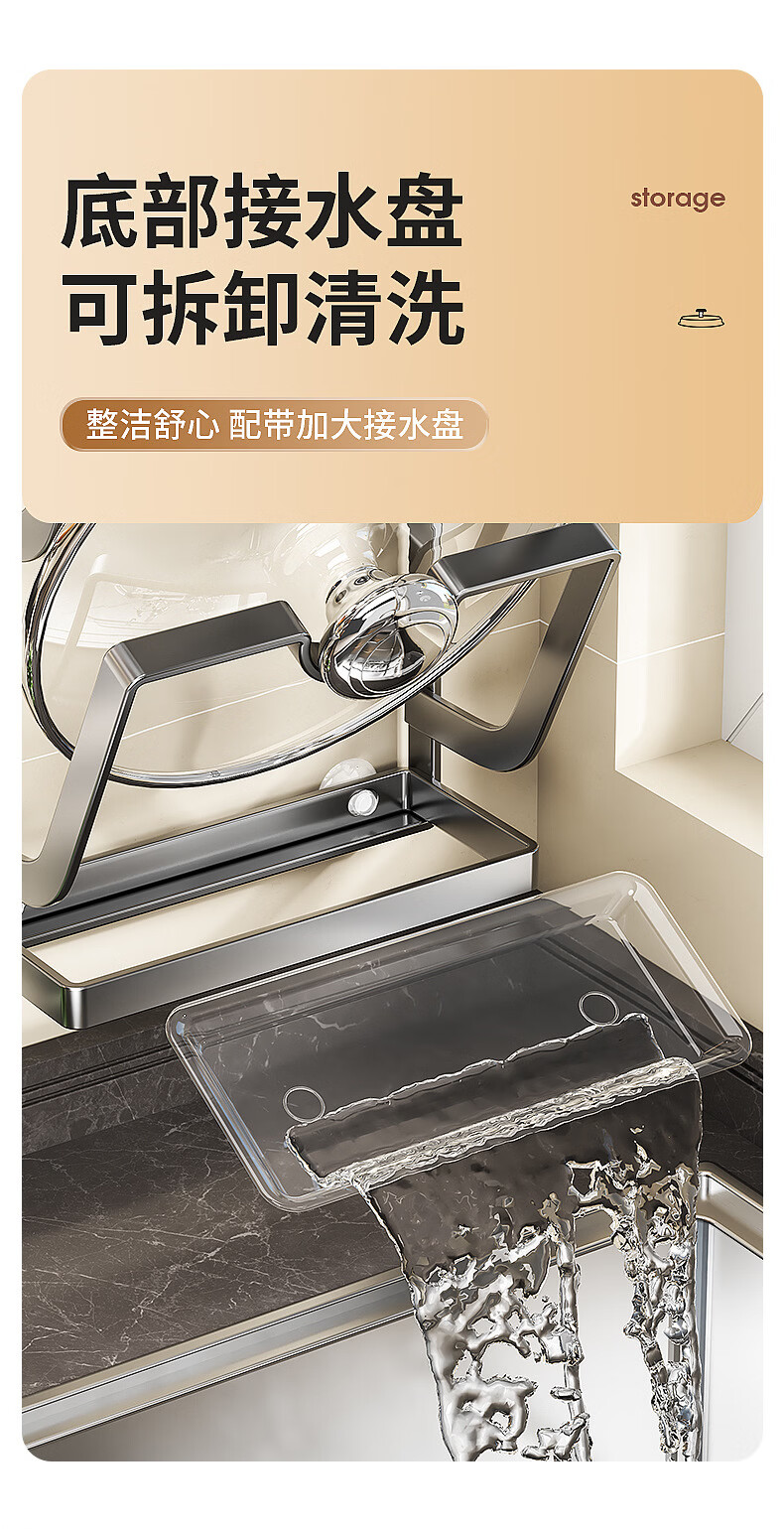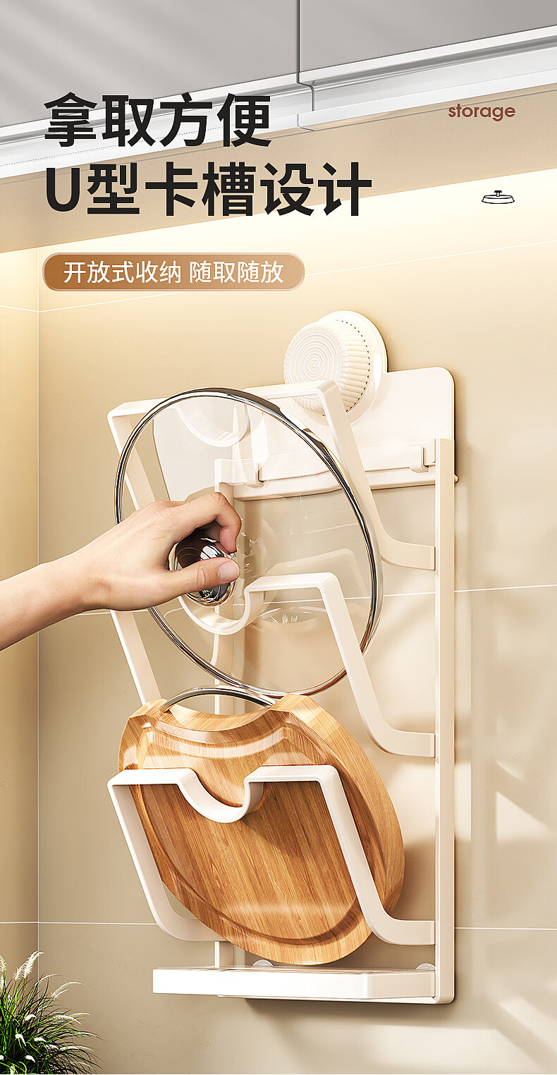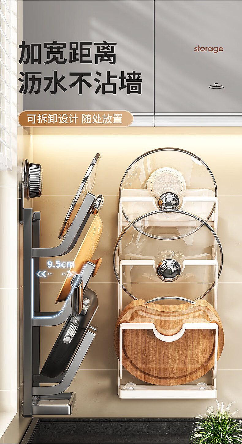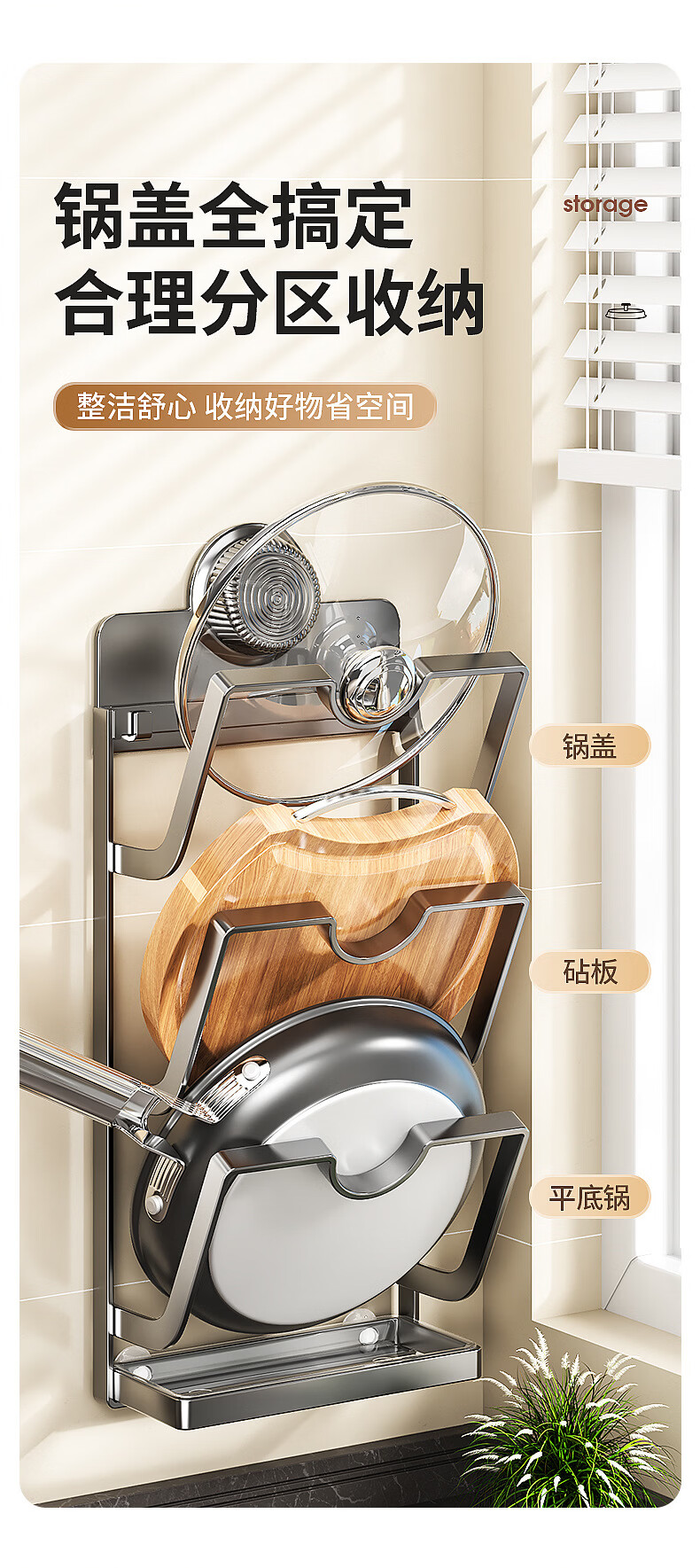 Ermo suction cup pot lid rack wall-mounted punch-free multi-functional kitchen storage rack chopping board rack cutting board rack multi-layer storage rack suction cup gun gray three-layer pot lid rack
