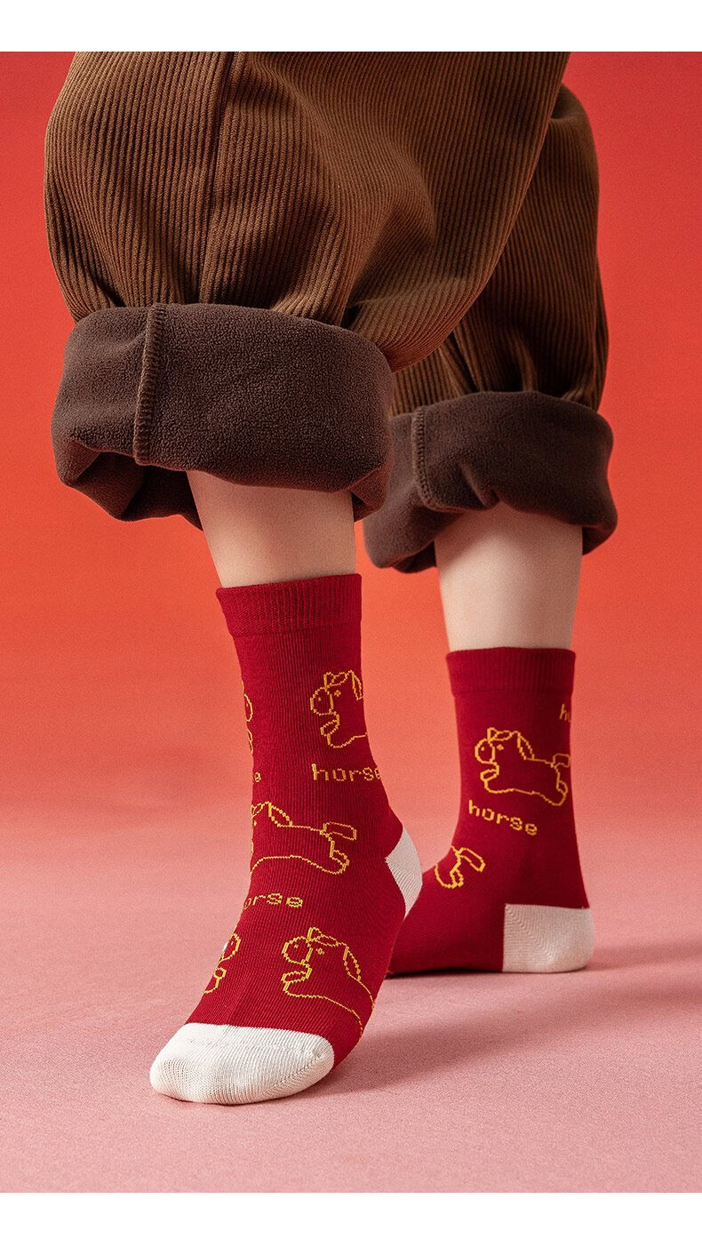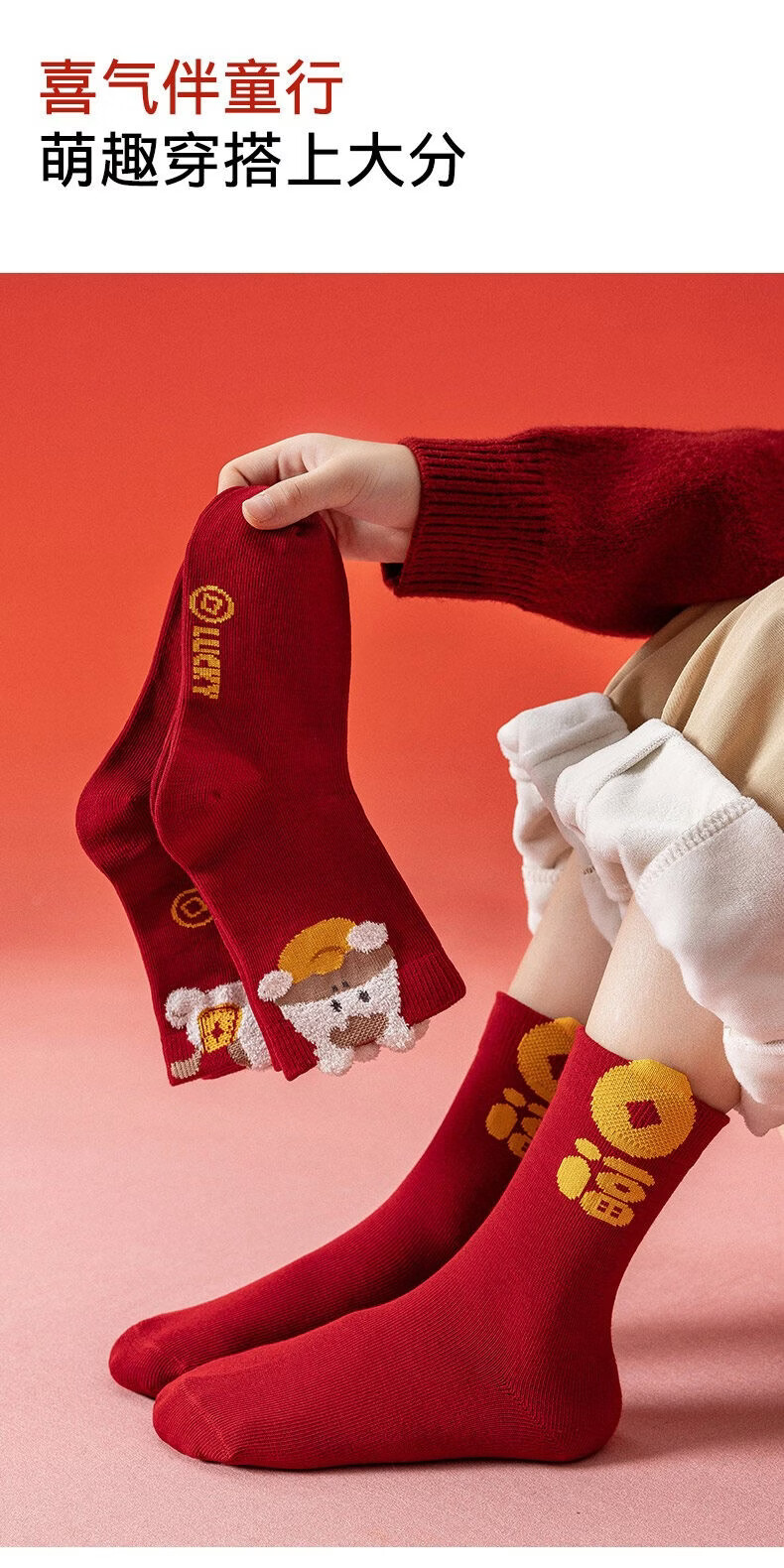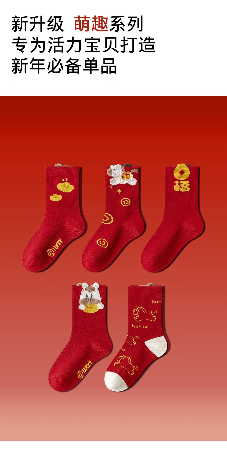 Cat Man (MiiOW) children's red socks, pure cotton long tube socks for 12-year-old boys and girls, red mid-tube socks 2026 New Year of the Horse, Fuban Children's Line 5 pairs of Cat Man Red Socks & Horse Years, 3-5 years old (M) Suitable for shoe sizes 22-26