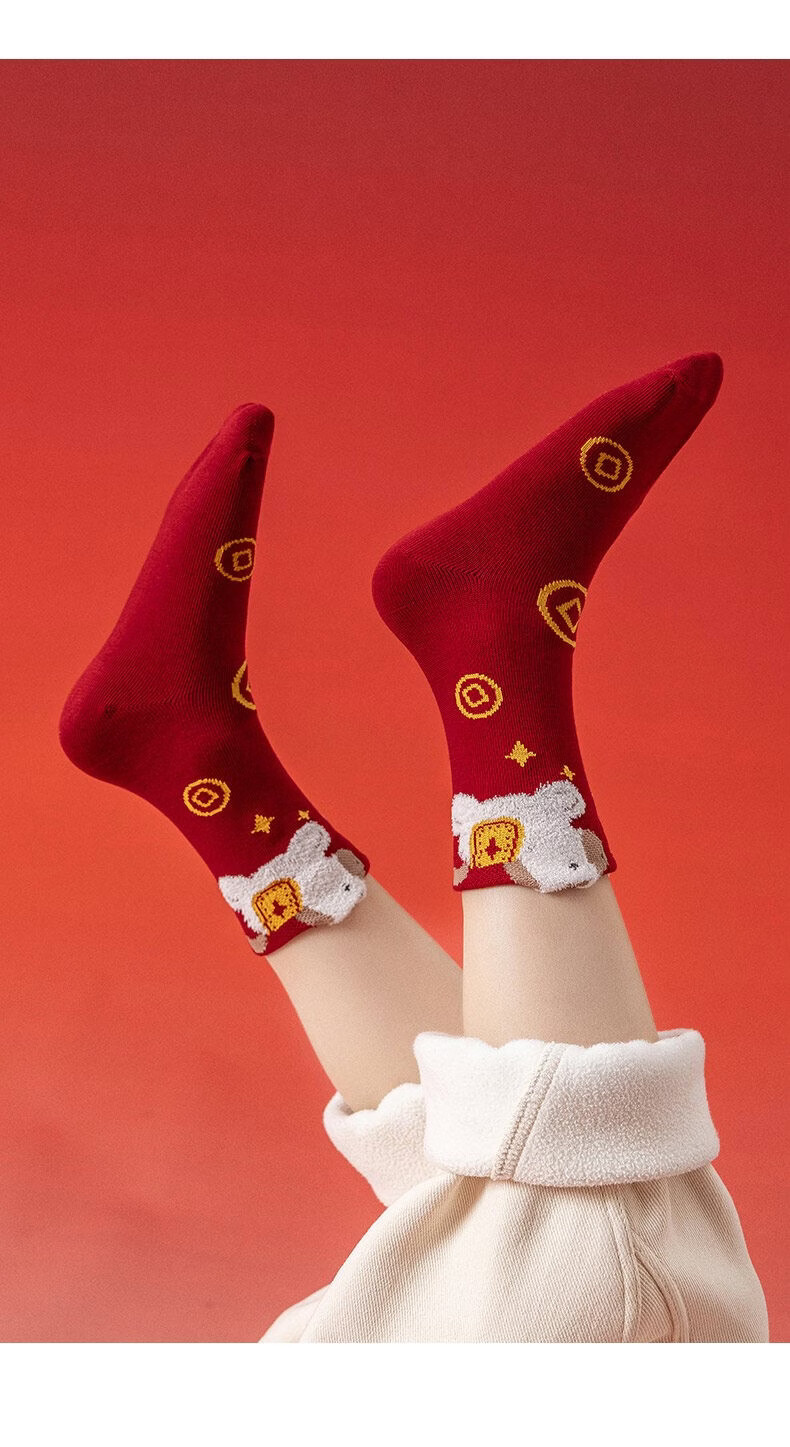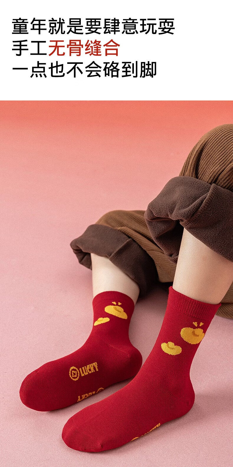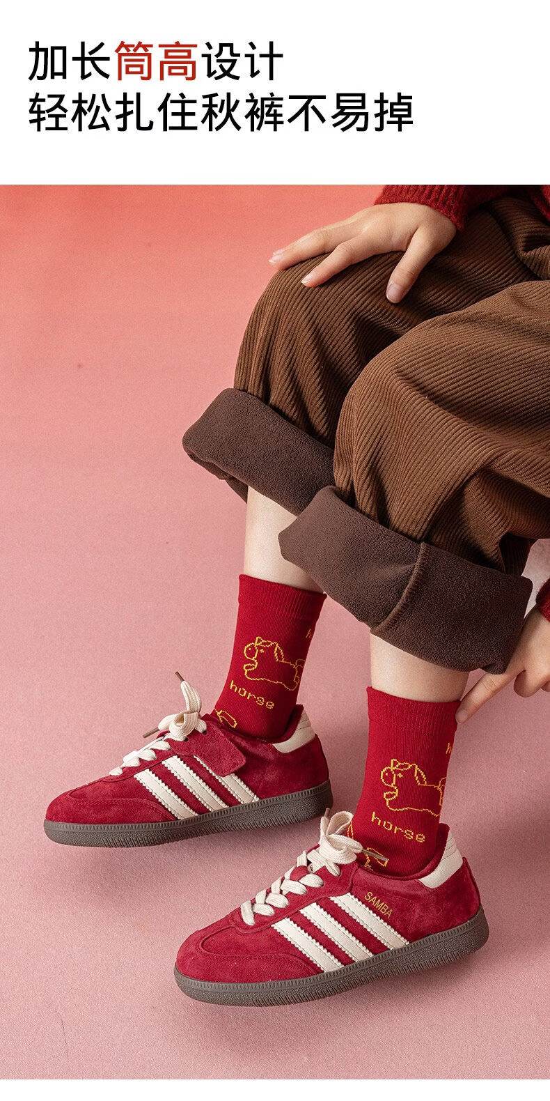 Cat Man (MiiOW) children's red socks, pure cotton long tube socks for 12-year-old boys and girls, red mid-tube socks 2026 New Year of the Horse, Fuban Children's Line 5 pairs of Cat Man Red Socks & Horse Years, 3-5 years old (M) Suitable for shoe sizes 22-26