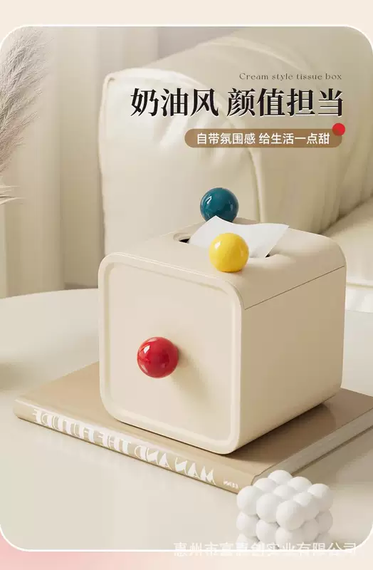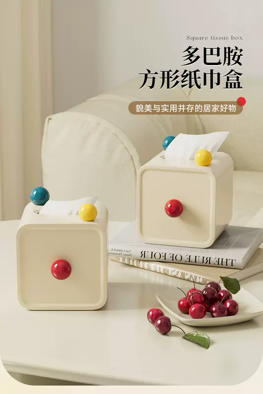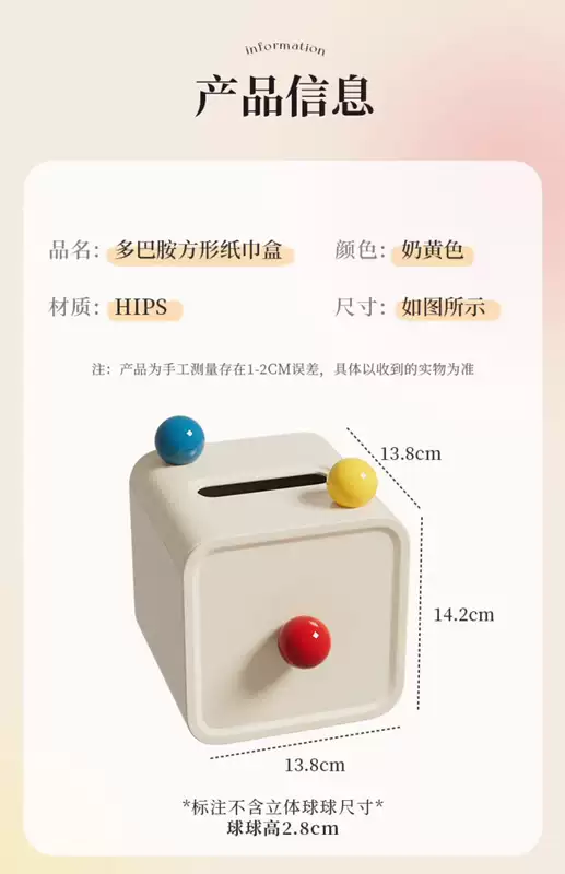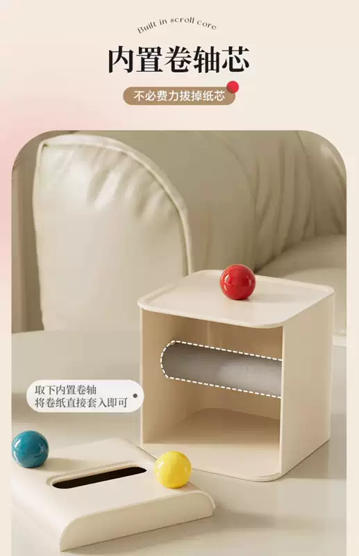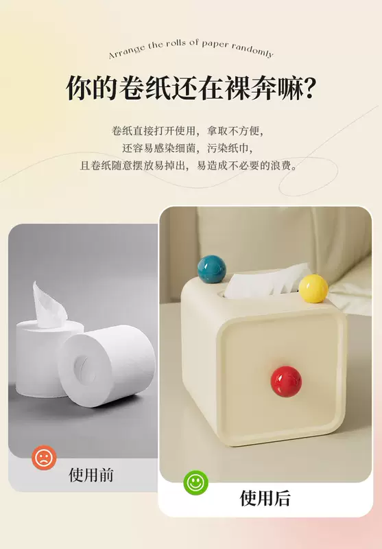 Yusenyi cute tube desktop household paper box high-end roll paper creative cylinder bathroom living room toilet paper tube tissue box red ball 13.8x13.8x14.2