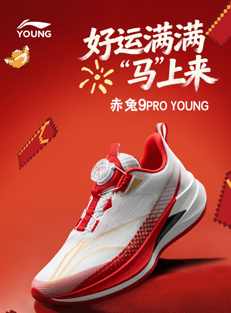 Li Ning (LI-NING) Children's Sports Shoes for Men, Middle and Large Children's Running Shoes Chitu 9 Elementary School Running Shoes for 6-12 Years Old Youth Shock Absorbing Children's Shoes Fluorescent Red/Fluorescent Ice Yellow/Black Same Style as Shang Supermarket 39 Recommended Foot Length 24.6cm