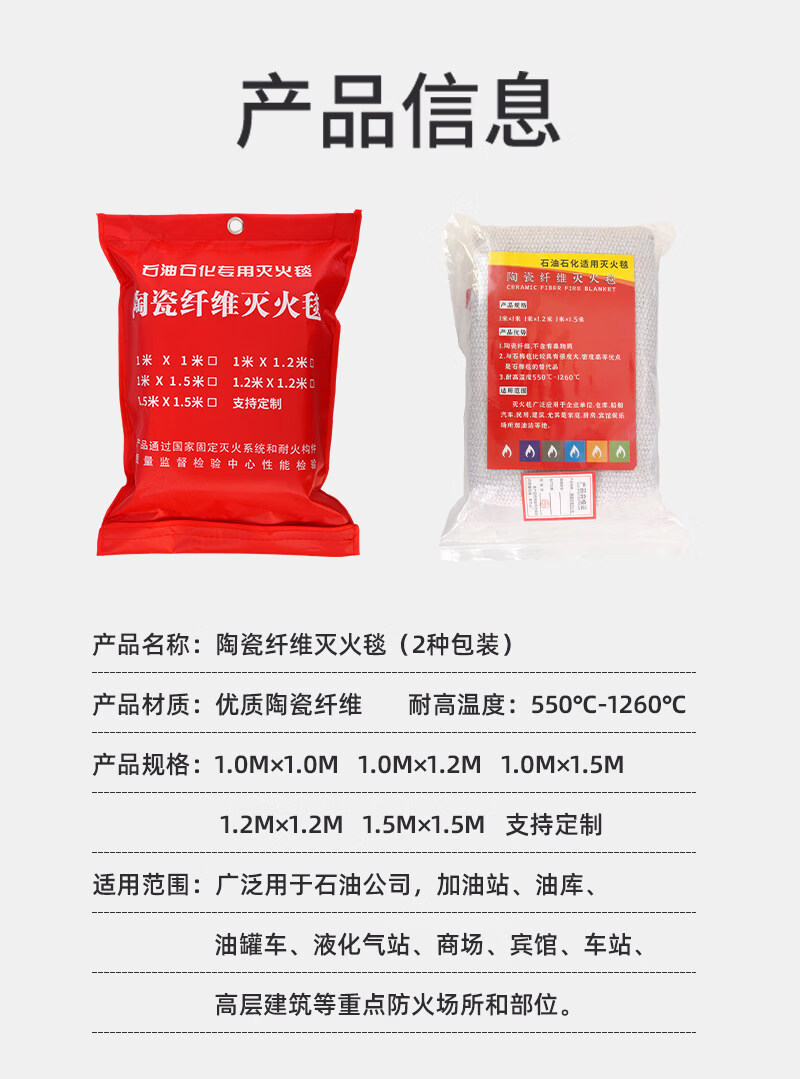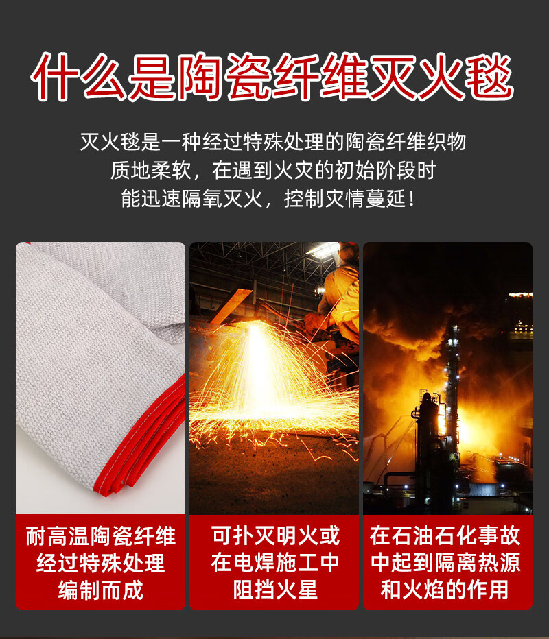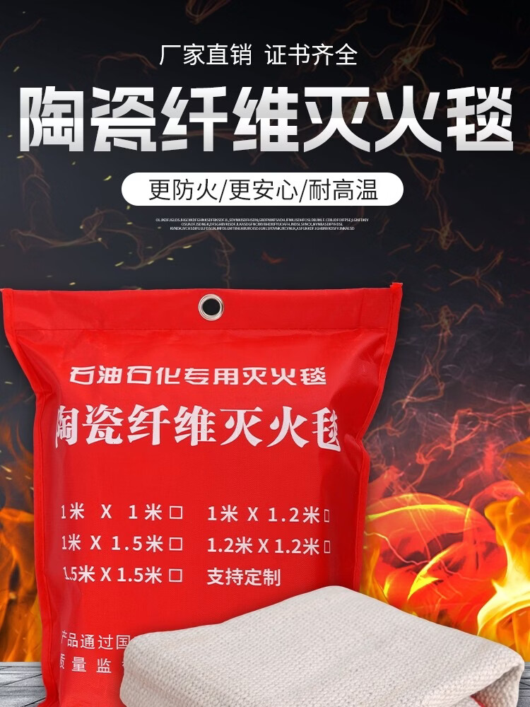 Ceramic fiber fire blanket, high temperature resistant, national standard, kitchen fire blanket, gas station fire blanket, welding fire blanket, 2mm thick (1m*1m)_ceramic fiber