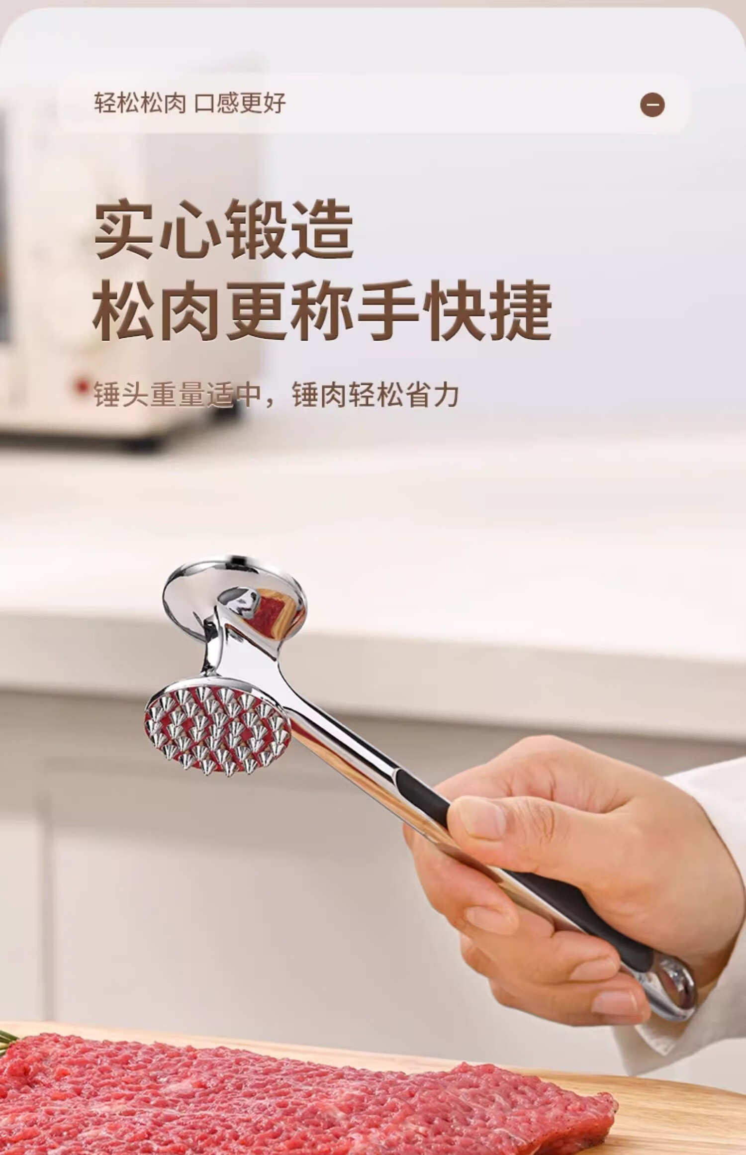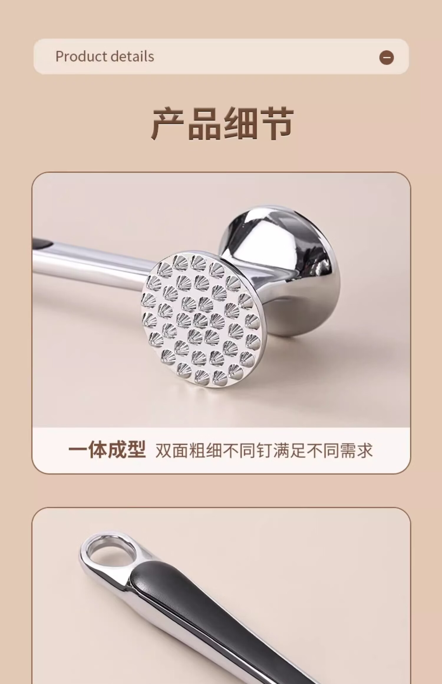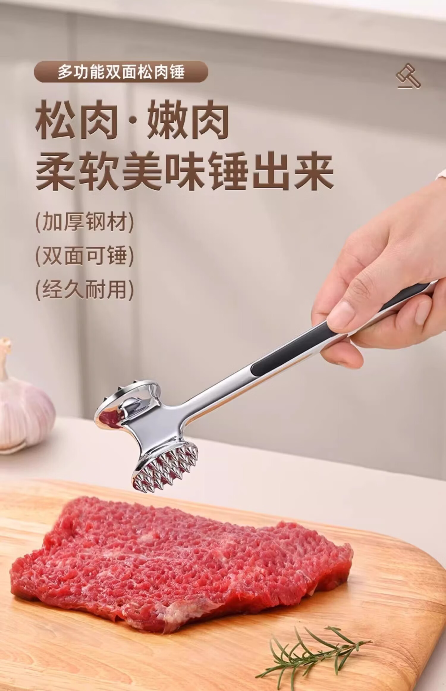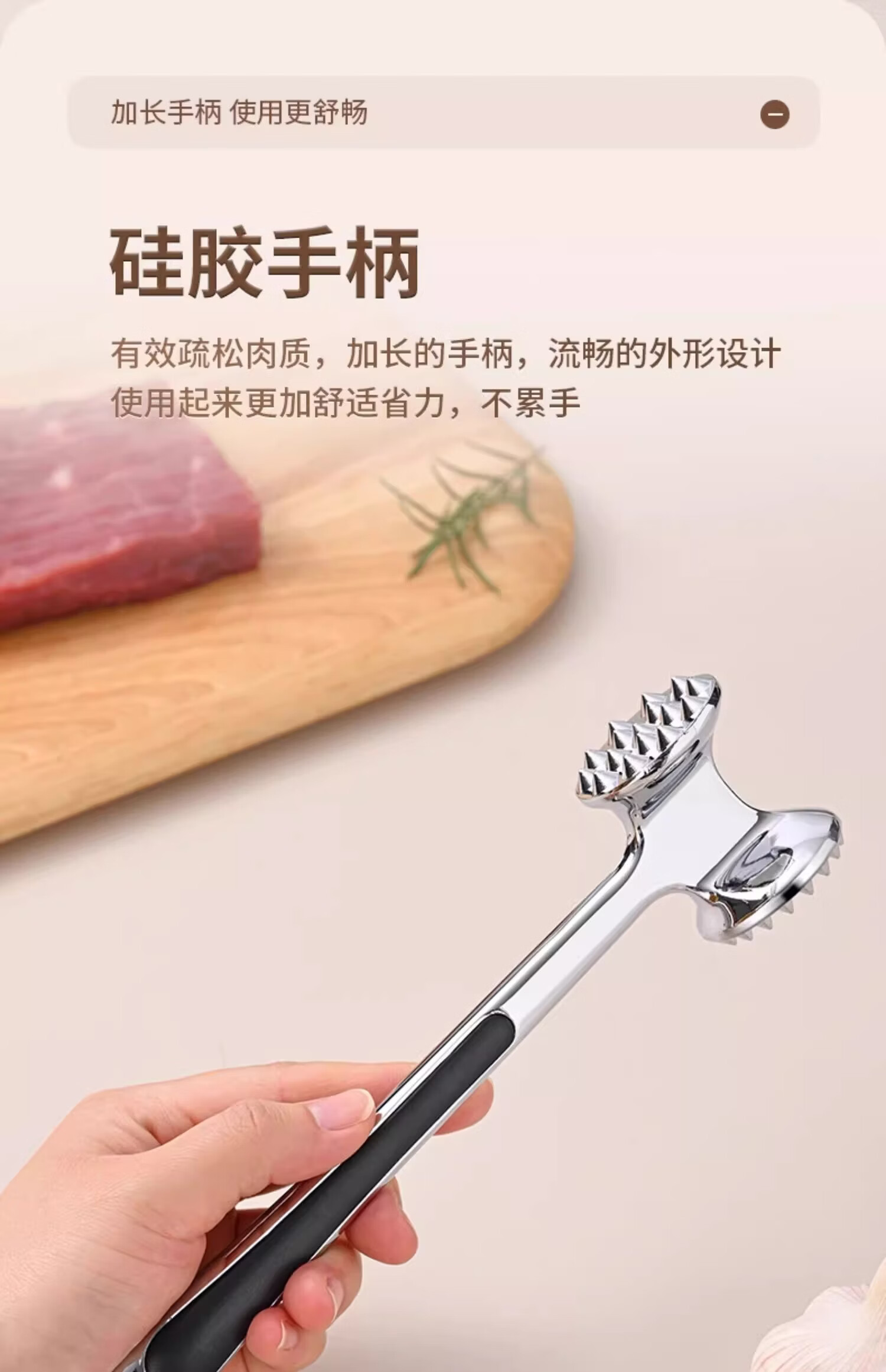 Yusen Yisong meat hammer 304 stainless steel kitchen household steak hammer tenderizer tool commercial hammering artifact non-slip rubber handle meat hammer 1