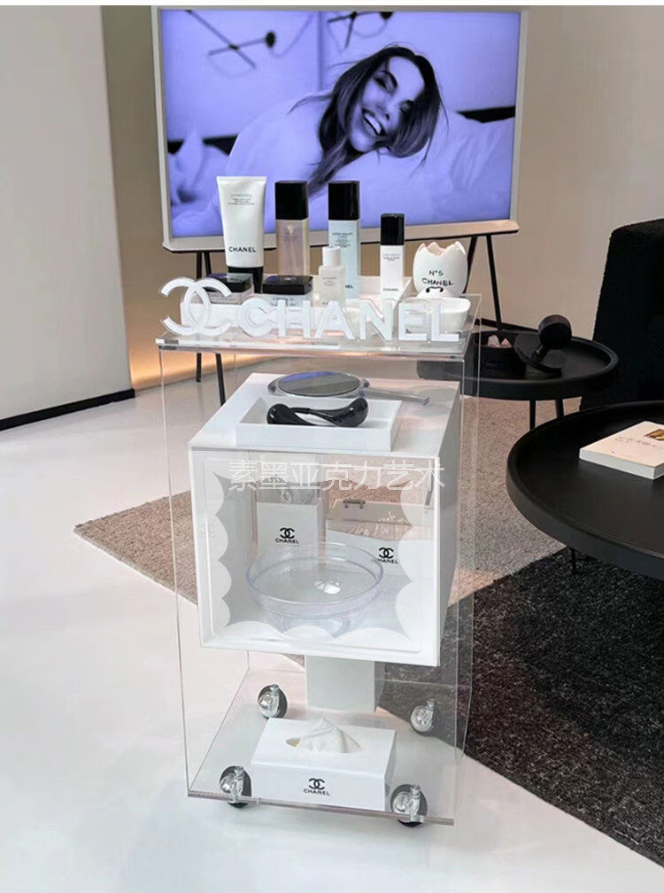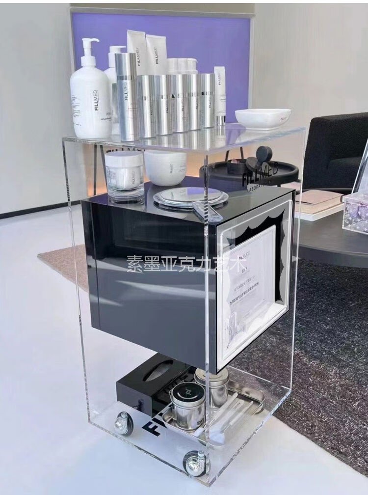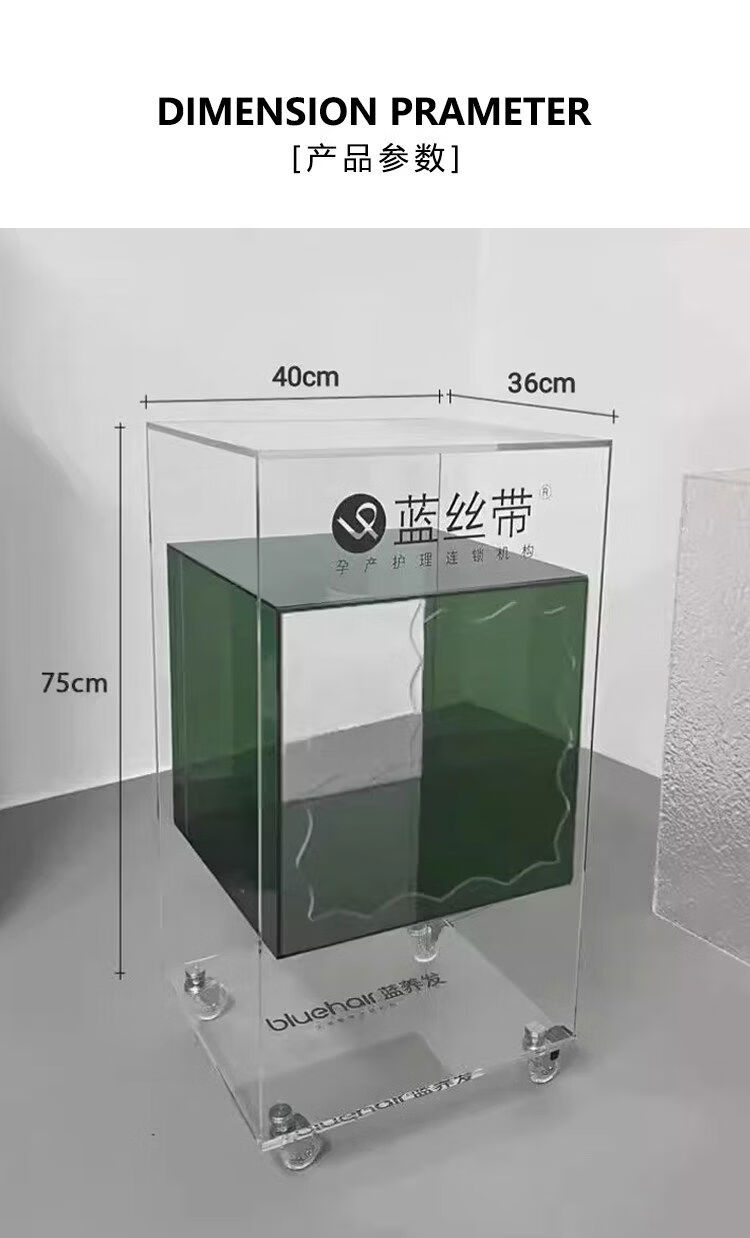 Acrylic beauty salon multi-function tool cart hairdressing equipment mobile trolley customized nail art storage rack acrylic trolley blue model with printed LOGO