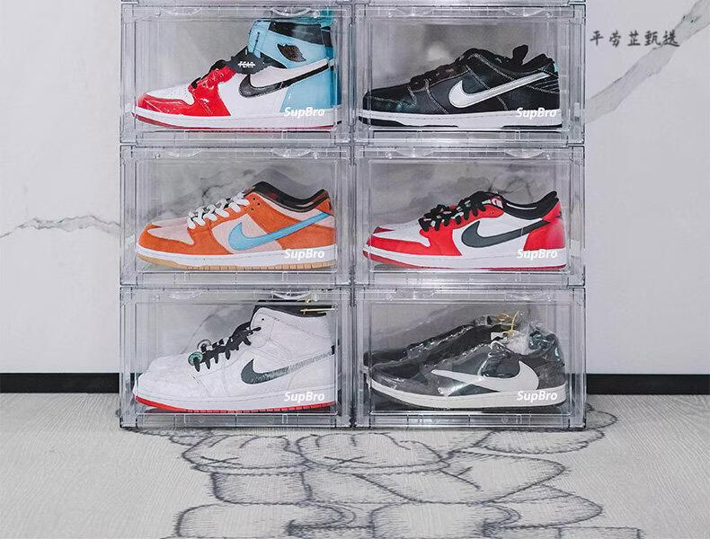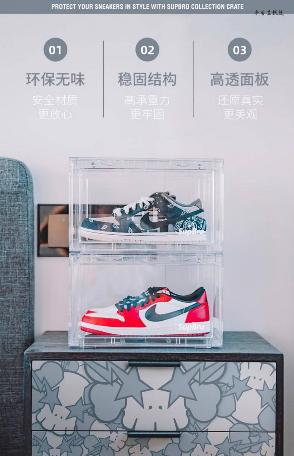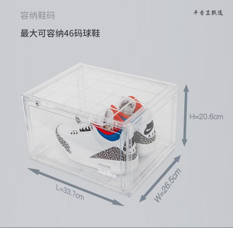 Supbro high-end shoe box full PC high transparent full hard storage box sneakers transparent storage artifact shoe cabinet space saving light luxury version high toughness_fully transparent shoe box*4 pieces_needs to be assembled 33.7x26.5x20.6cm