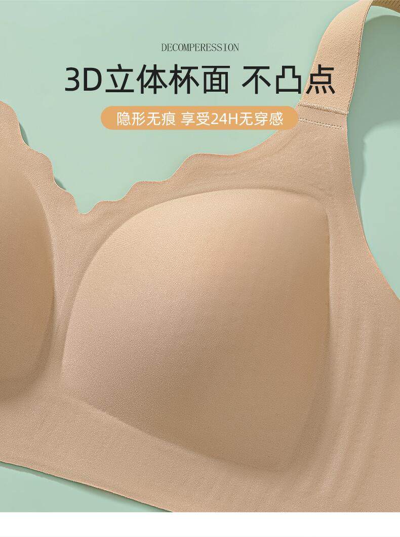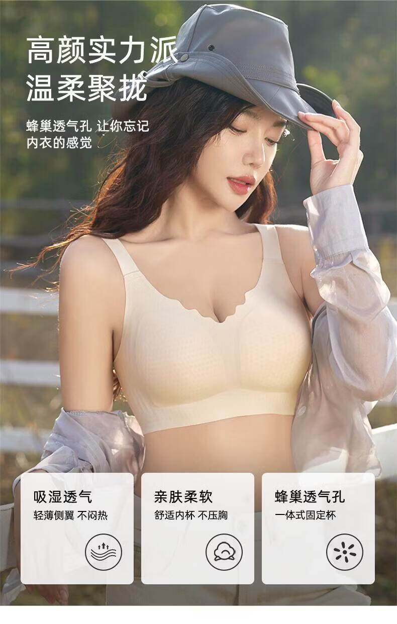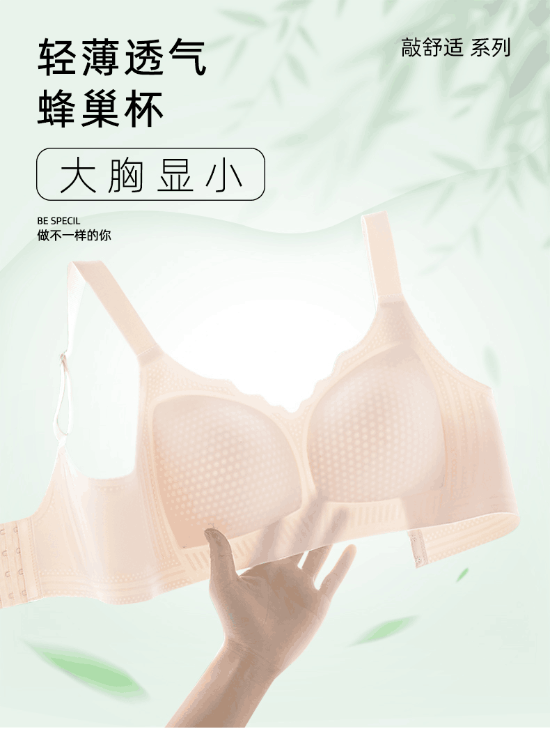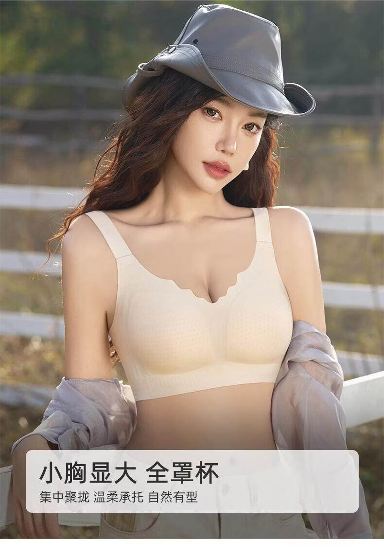 Modal underwear women's 3D honeycomb cup new big breast slimming breathable bra push-up full cup no rim bra Khaki L recommended 80-110Jin Jin equals 0.5 kg