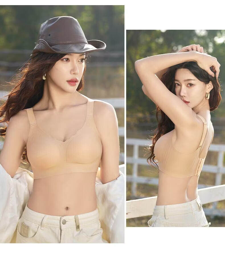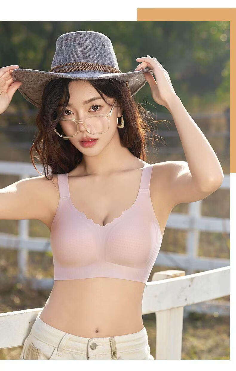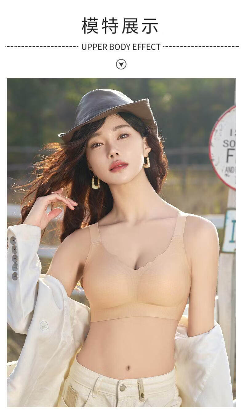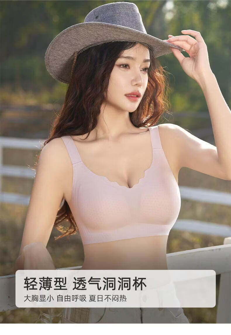 Modal underwear women's 3D honeycomb cup new big breast slimming breathable bra push-up full cup no rim bra Khaki L recommended 80-110Jin Jin equals 0.5 kg