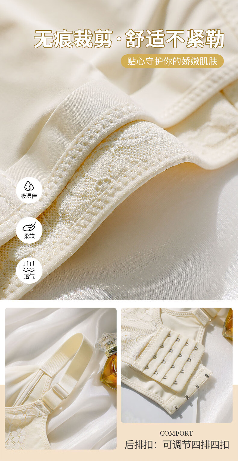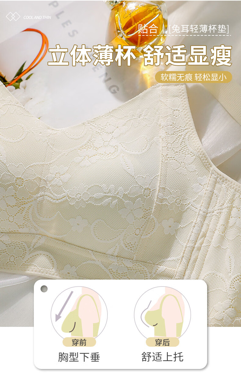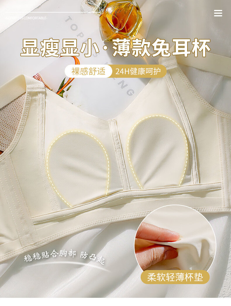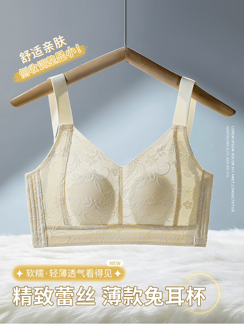 Modal Adjustable Bra for Women Thin Large Breasts Reveal Small Breasts Full Cup Shrinking Breast Lifting Anti-Sagging Rabbit Ears Bra Champagne L Suitable for 105-120Jin Jin equals 0.5kg 36/80ABC