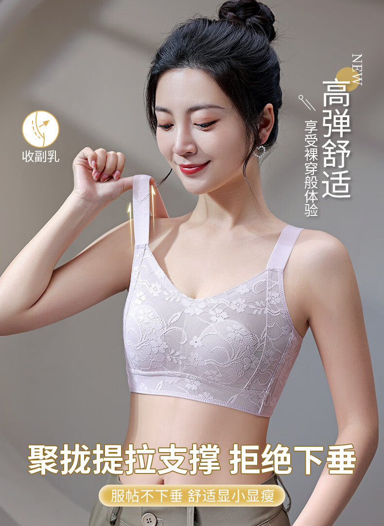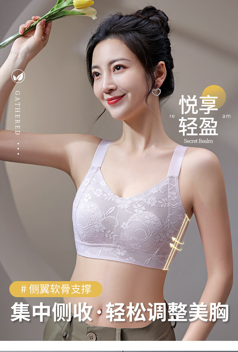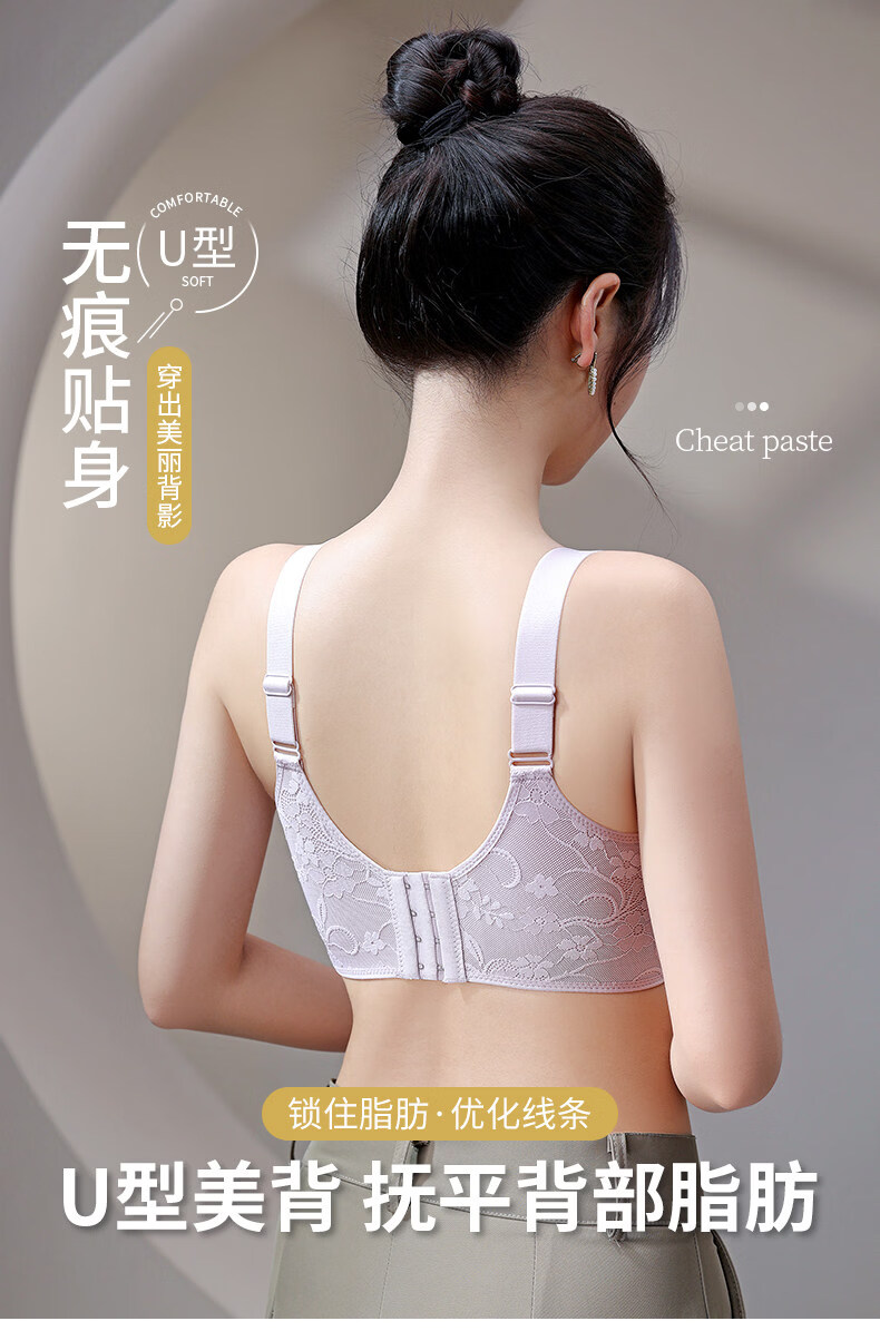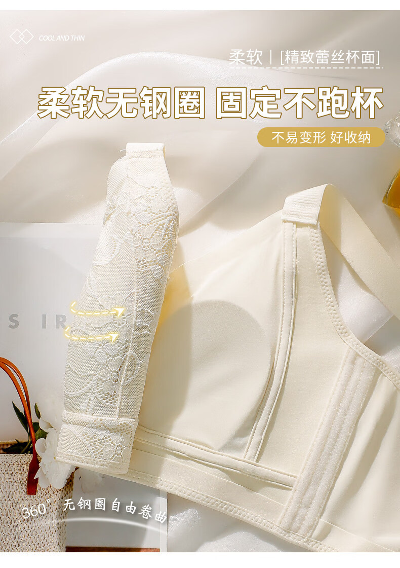 Modal Adjustable Bra for Women Thin Large Breasts Reveal Small Breasts Full Cup Shrinking Breast Lifting Anti-Sagging Rabbit Ears Bra Champagne L Suitable for 105-120Jin Jin equals 0.5kg 36/80ABC
