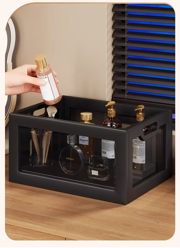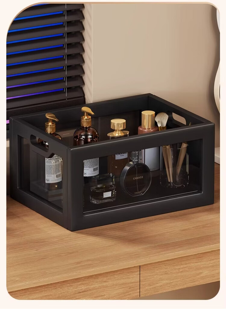 Ersijia cosmetics storage box desktop dressing table storage rack skin care products acrylic 2025 high-end light luxury storage rack black-black tea