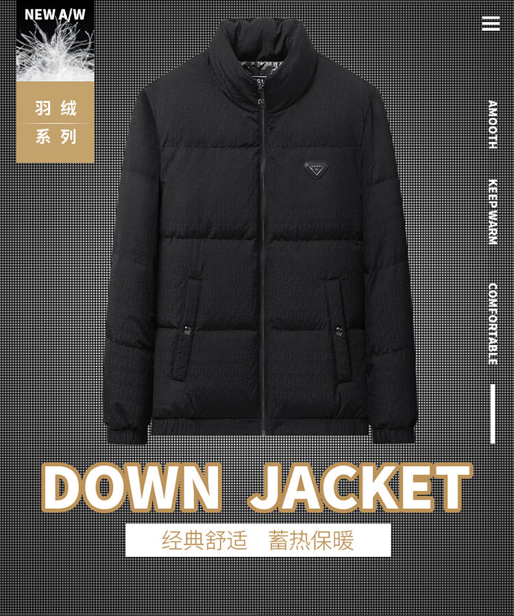 LILANZ Men's Down Jacket White Duck Down Winter Short Stand Collar Young and Middle-aged Warm High-end Jacket Black M