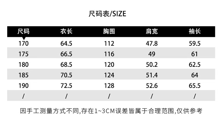 China (cm) 165 / 88-90 170 / 96-98 175 / 108-110 180 / 118-122 185 / 126-130