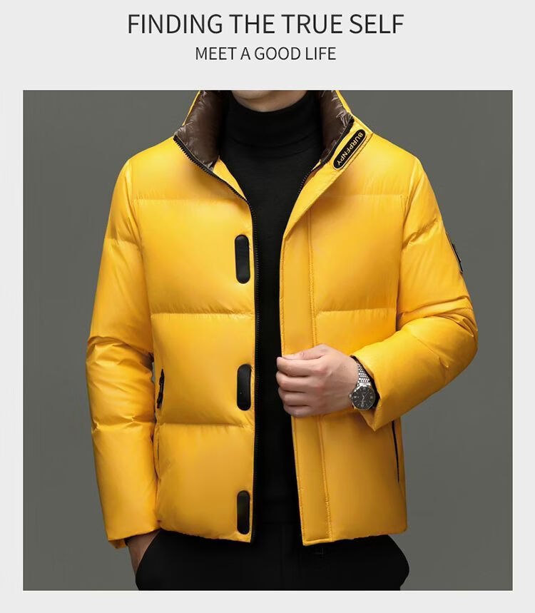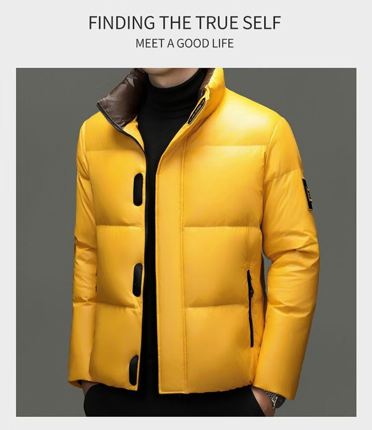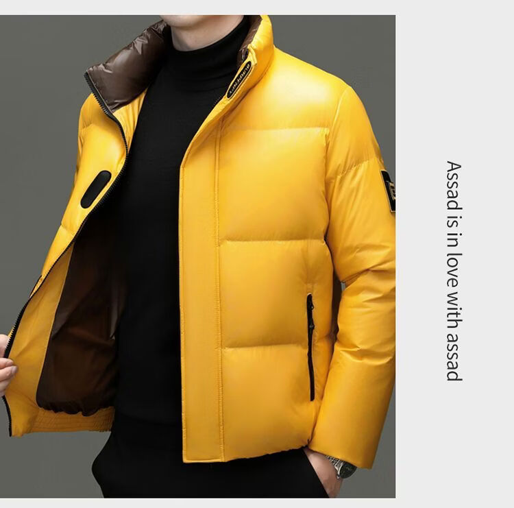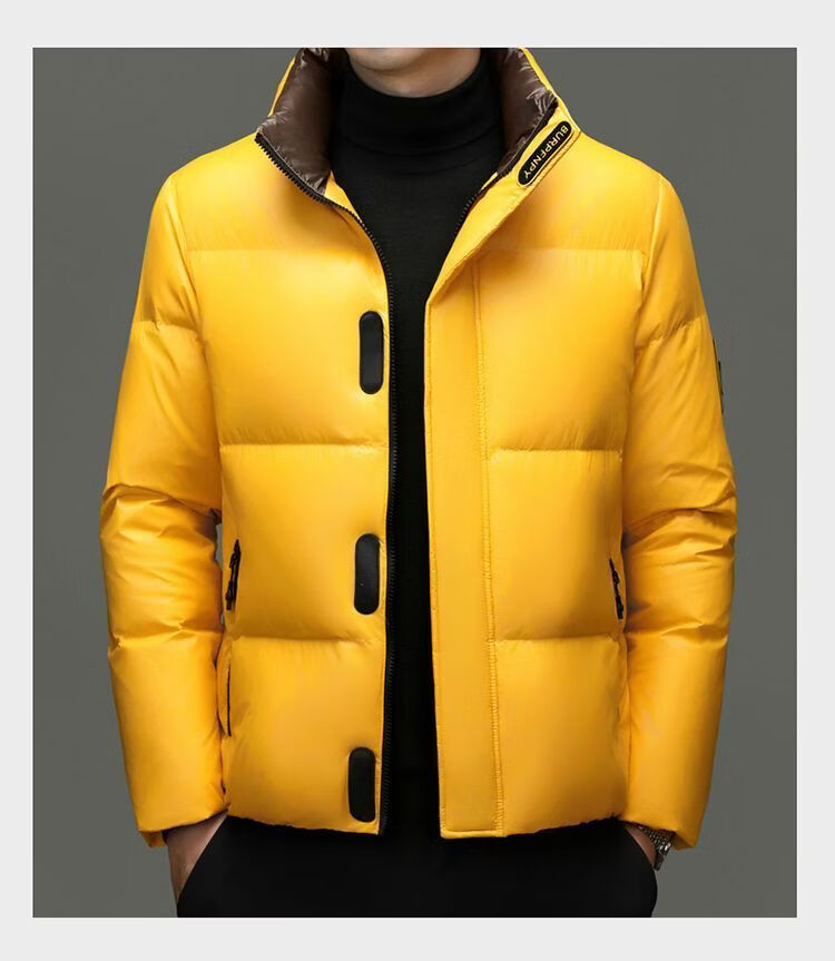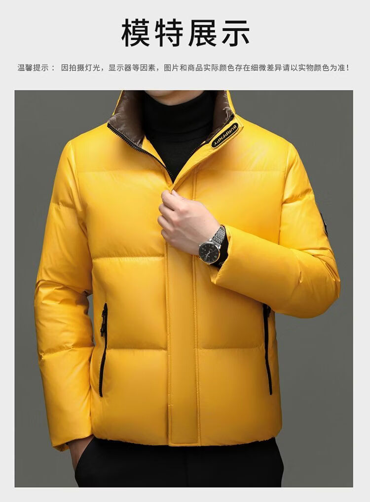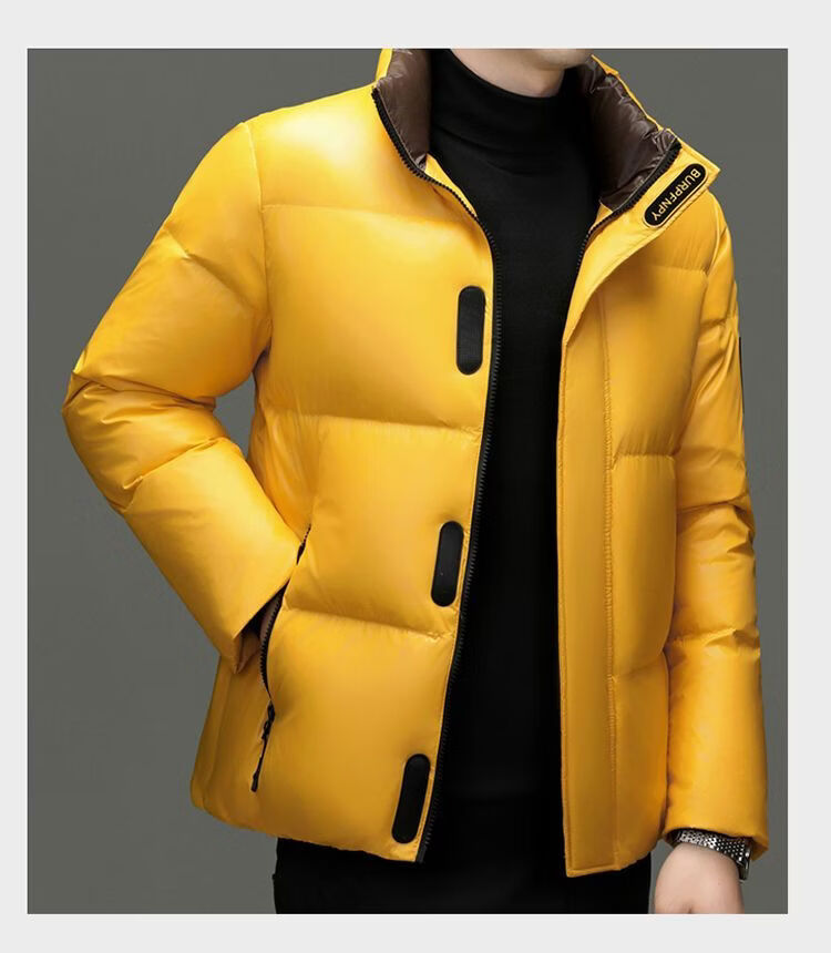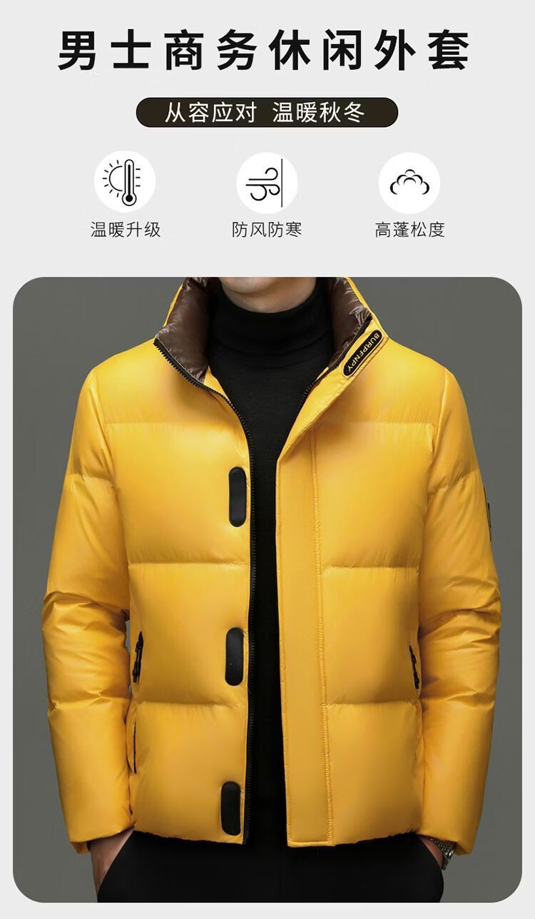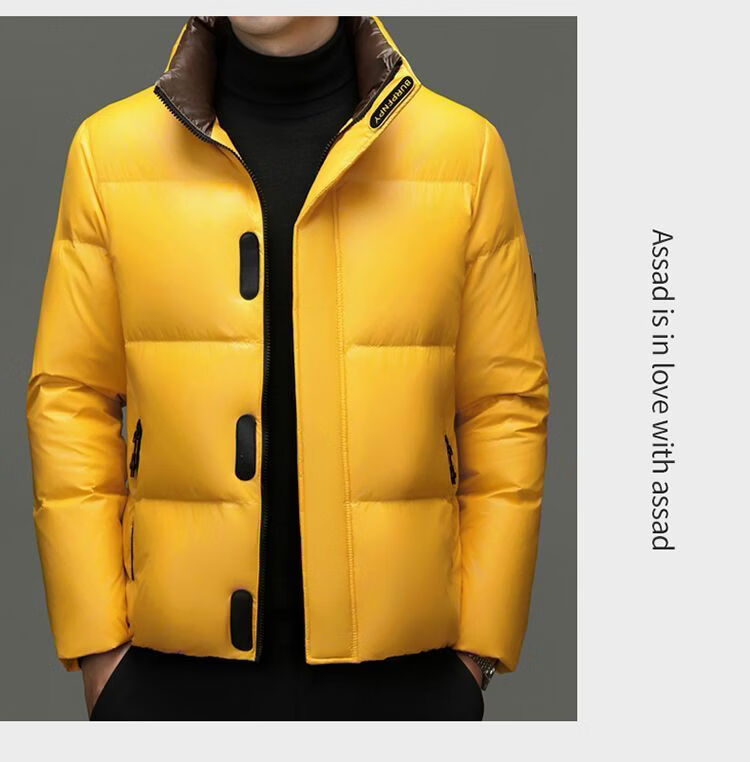 Hengyuanxiang Winter Bread Shiny Stand Collar Down Jacket Men's Fashionable Casual Thickened Warm New Jacket Yellow 2XL 185 Suitable for 160-175Jin Jin equals 0.5kg
