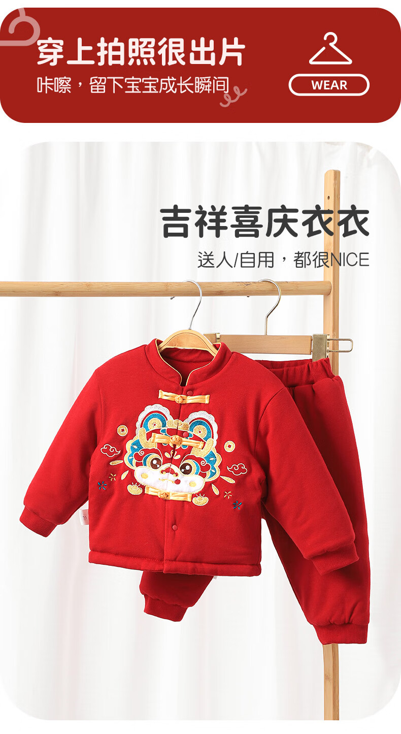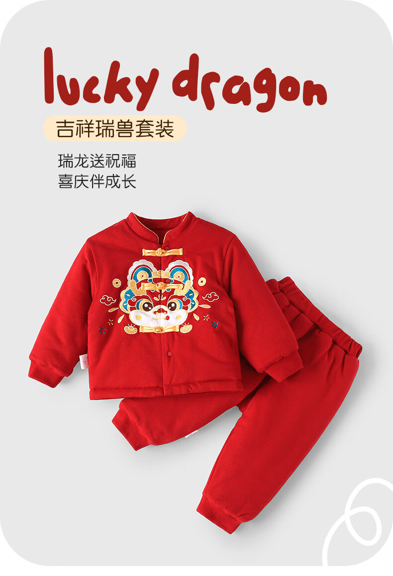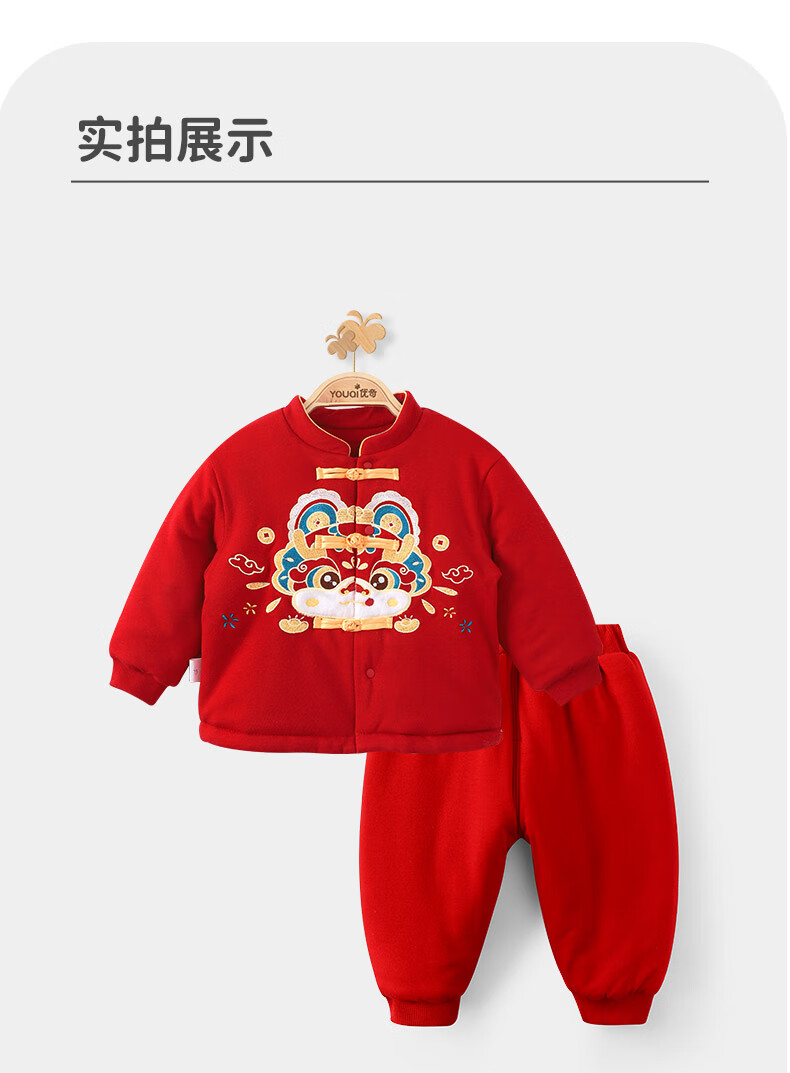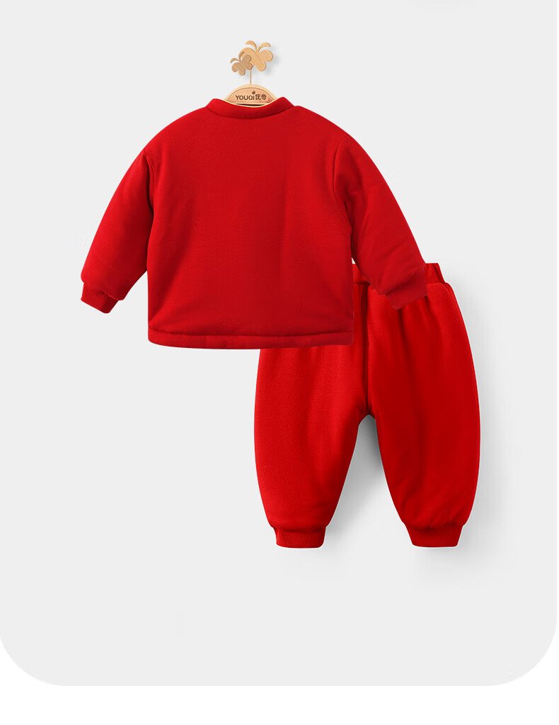 Youqi baby clothes autumn and winter full-month baby thickened warm split suit one-year-old suit New Year suit red New Year suit red embroidered suit 66