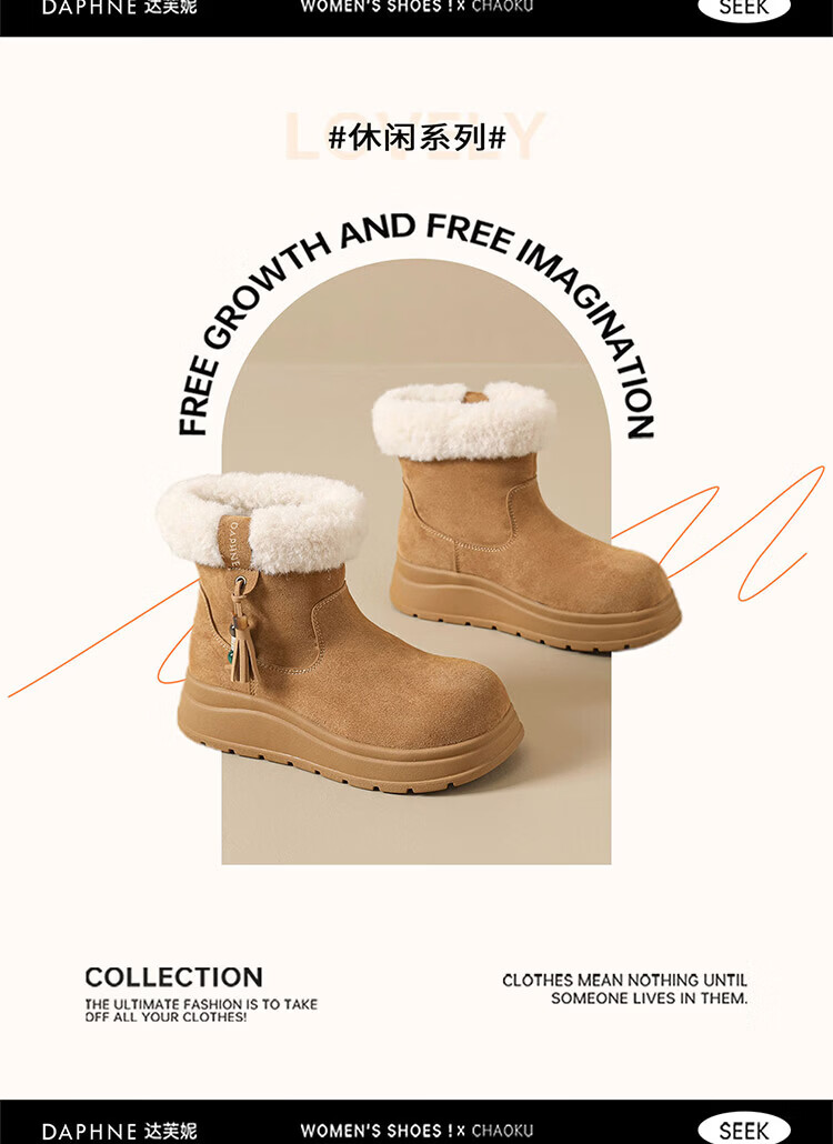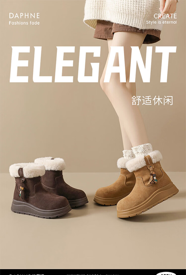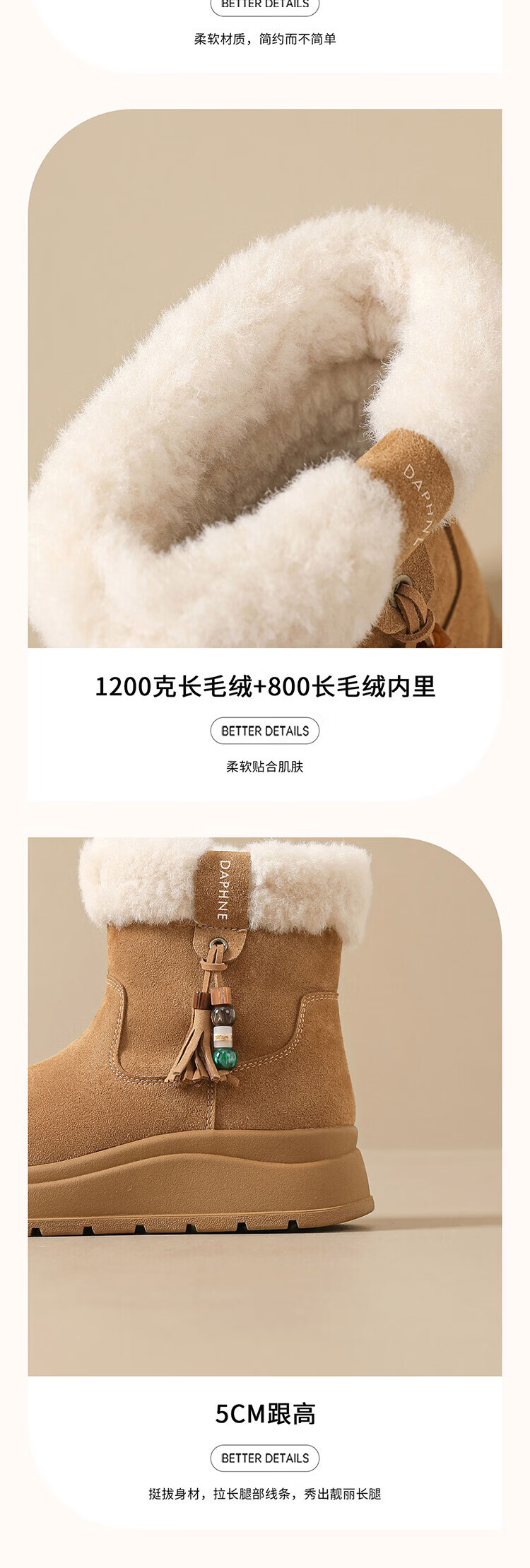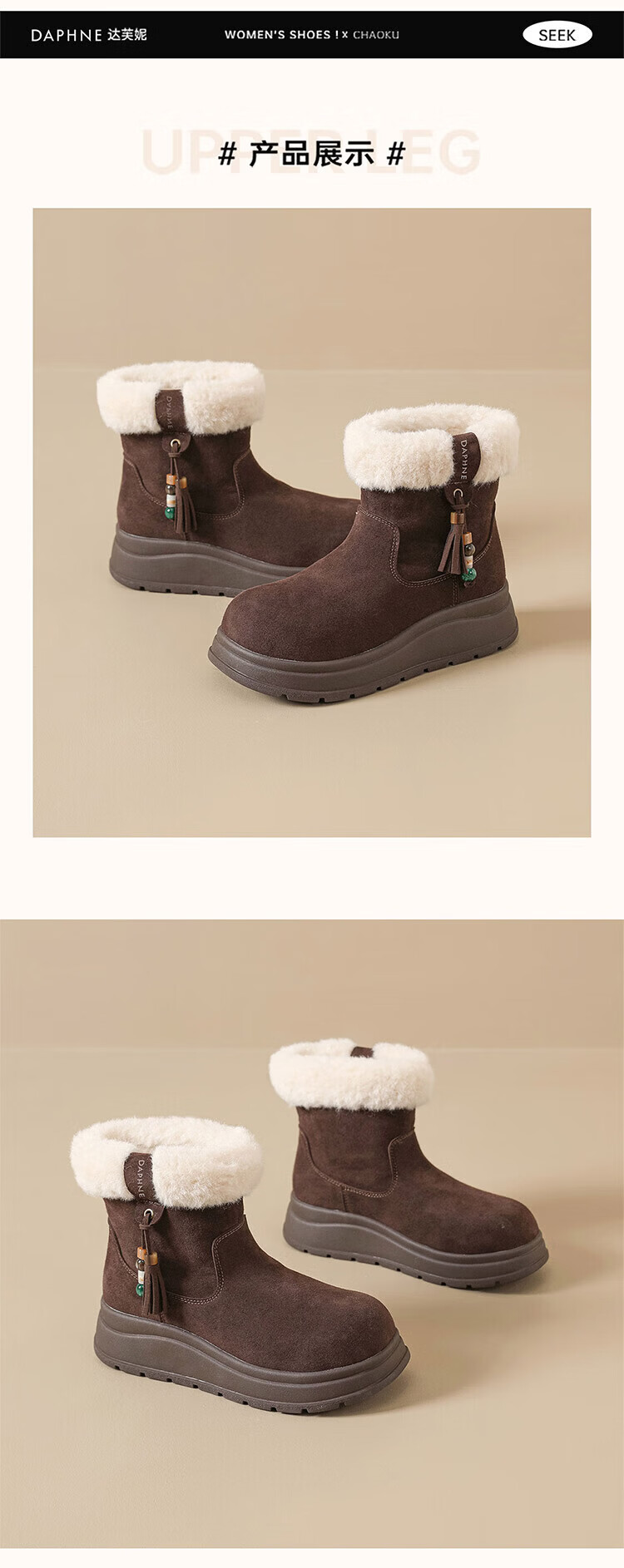 DAPHNE Daphne snow boots women's boots new women's boots thick sole plus velvet warm short boots cotton boots brown plus velvet heel height 5cm 35 (225mm) standard size