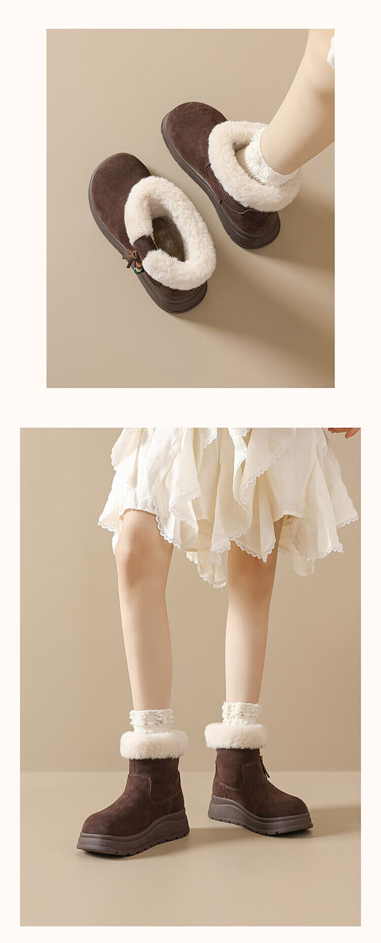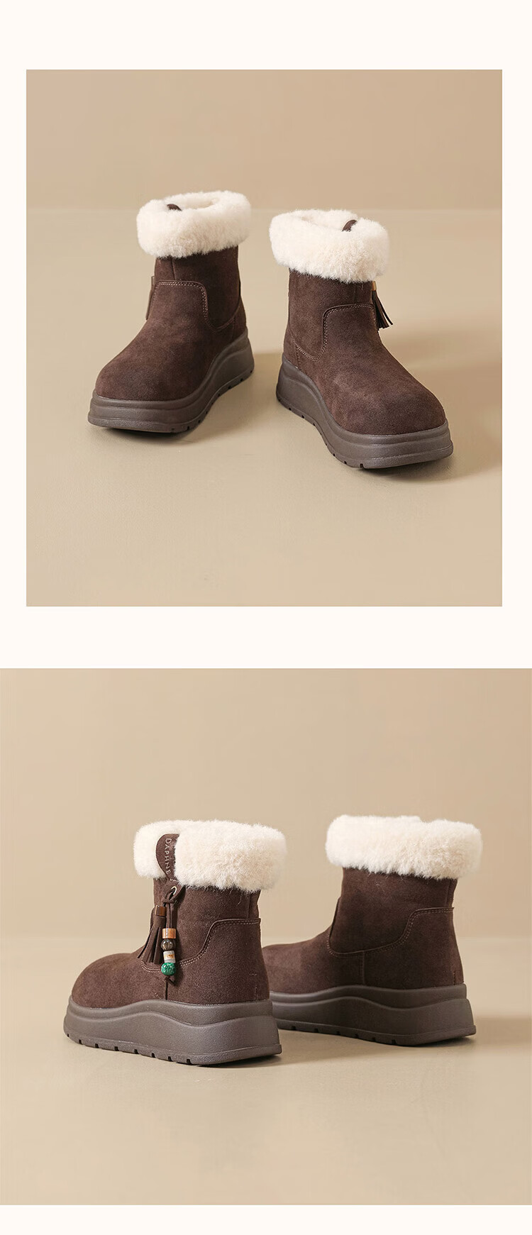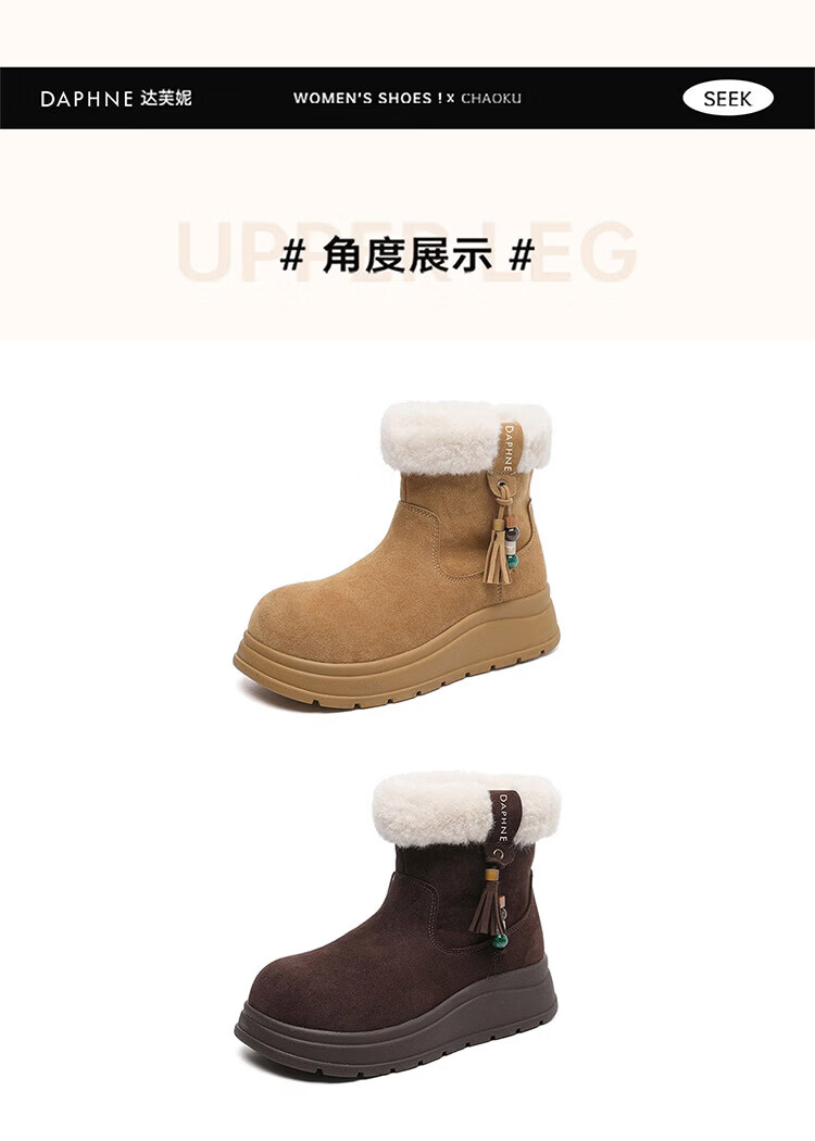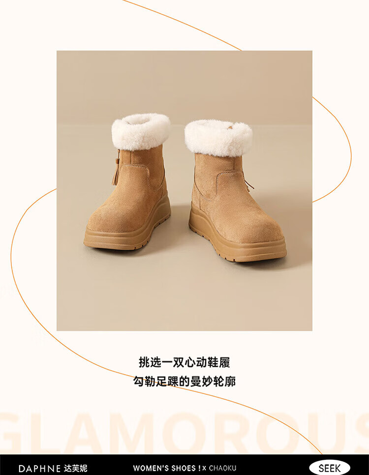 DAPHNE Daphne snow boots women's boots new women's boots thick sole plus velvet warm short boots cotton boots brown plus velvet heel height 5cm 35 (225mm) standard size