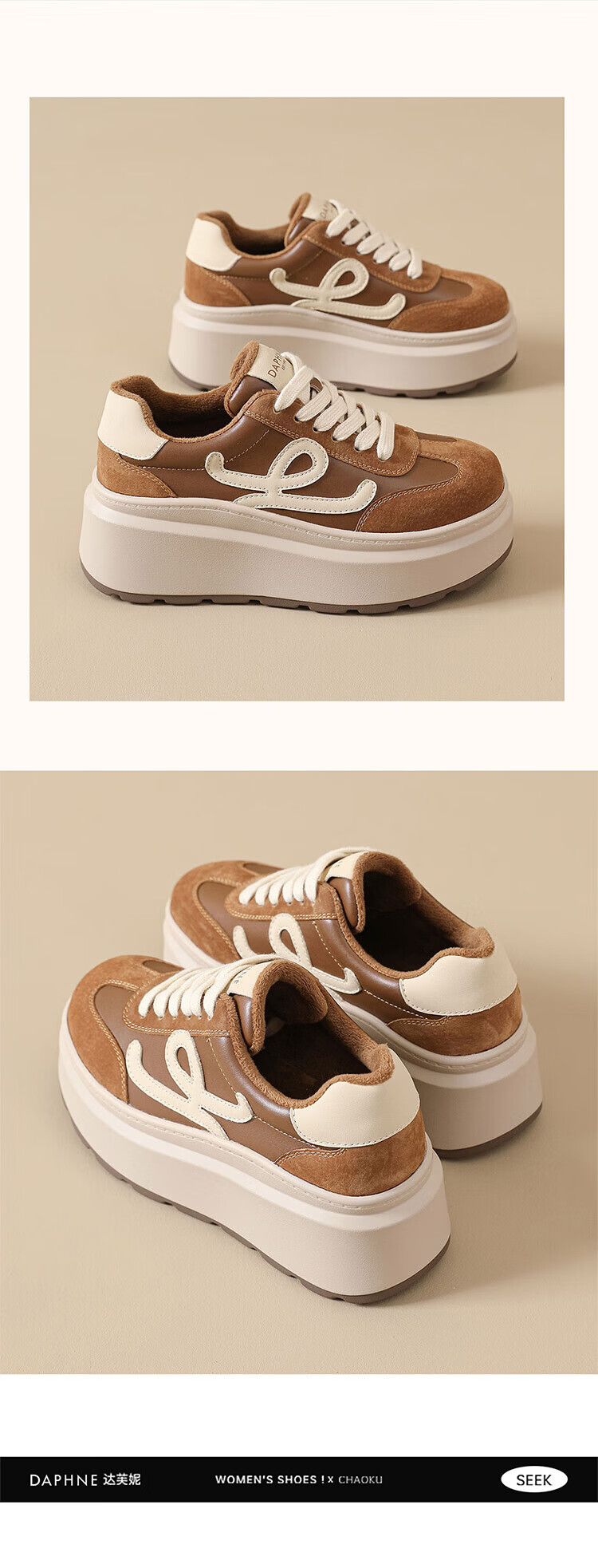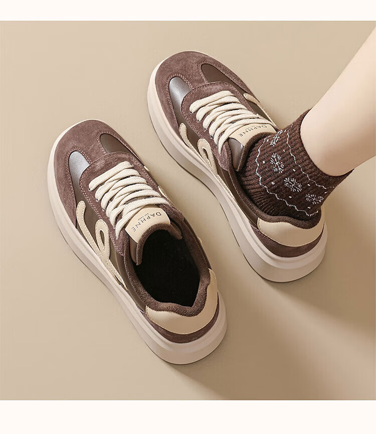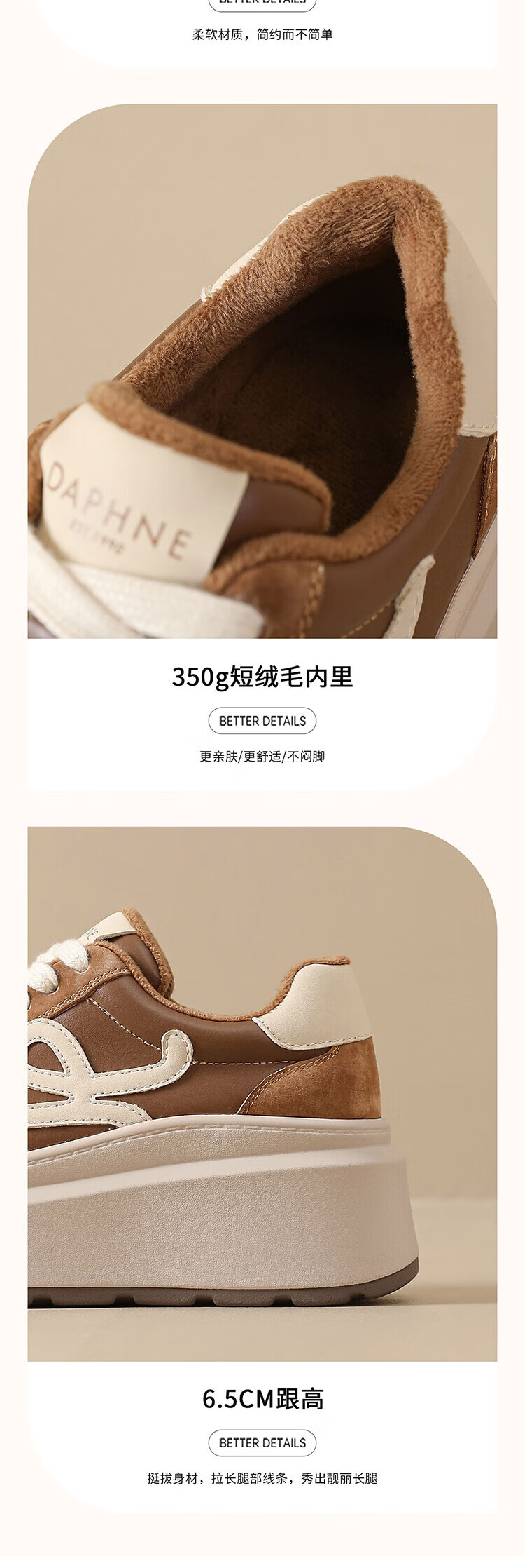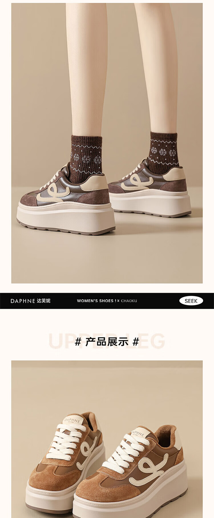 DAPHNE Daphne thick-soled plus velvet sneakers for women winter new retro all-match heightening sports and leisure platform shoes for women camel plus velvet heel height 6.5cm 38 (240mm) standard size