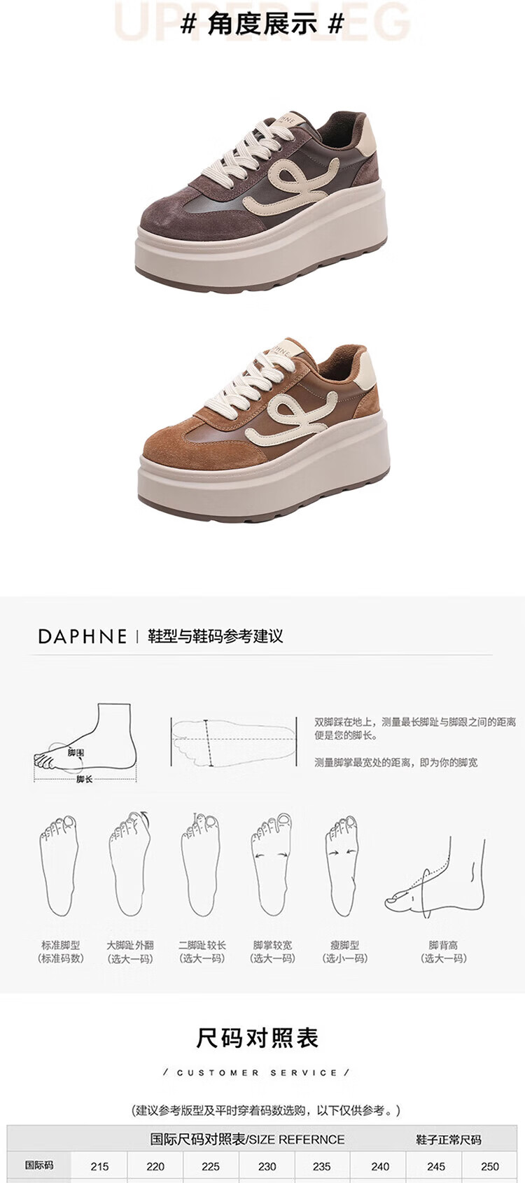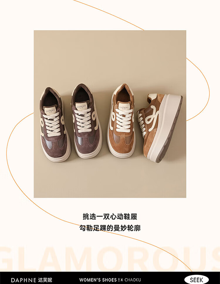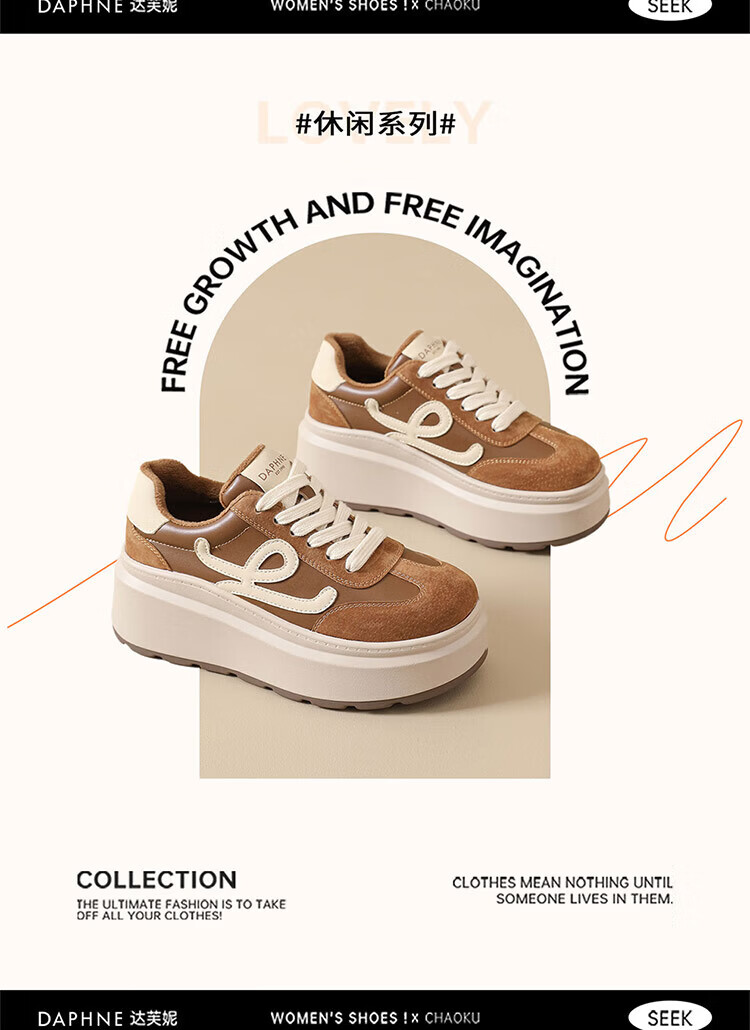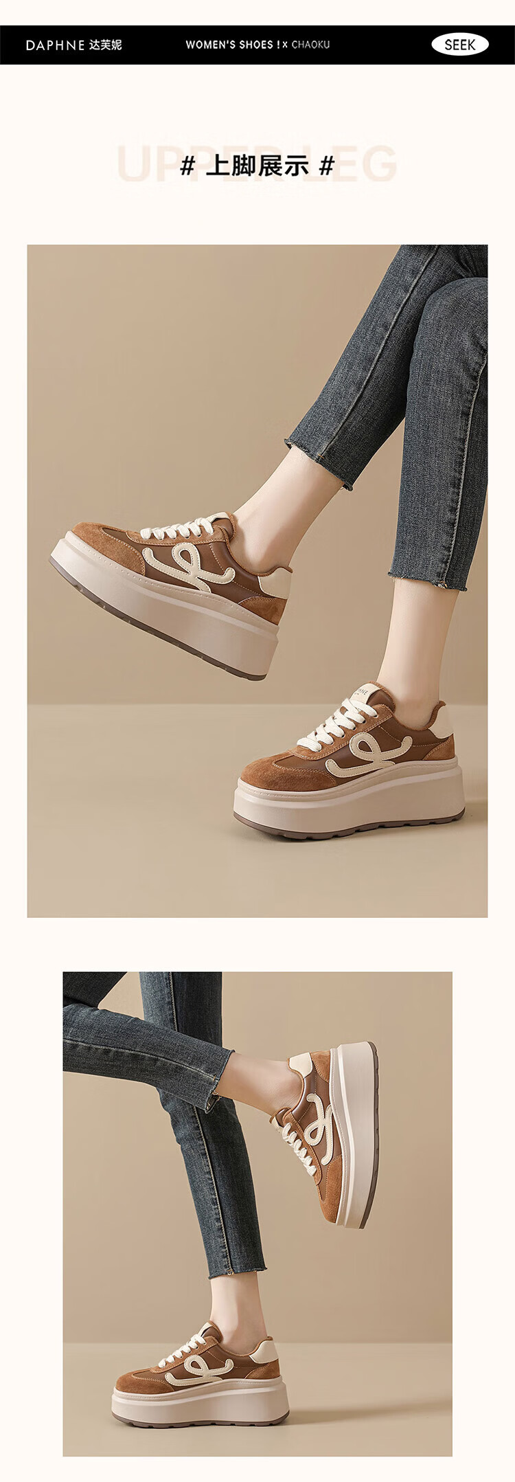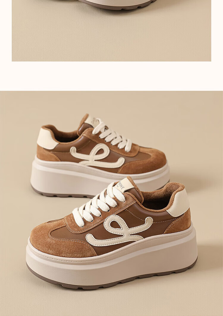 DAPHNE Daphne thick-soled plus velvet sneakers for women winter new retro all-match heightening sports and leisure platform shoes for women camel plus velvet heel height 6.5cm 38 (240mm) standard size