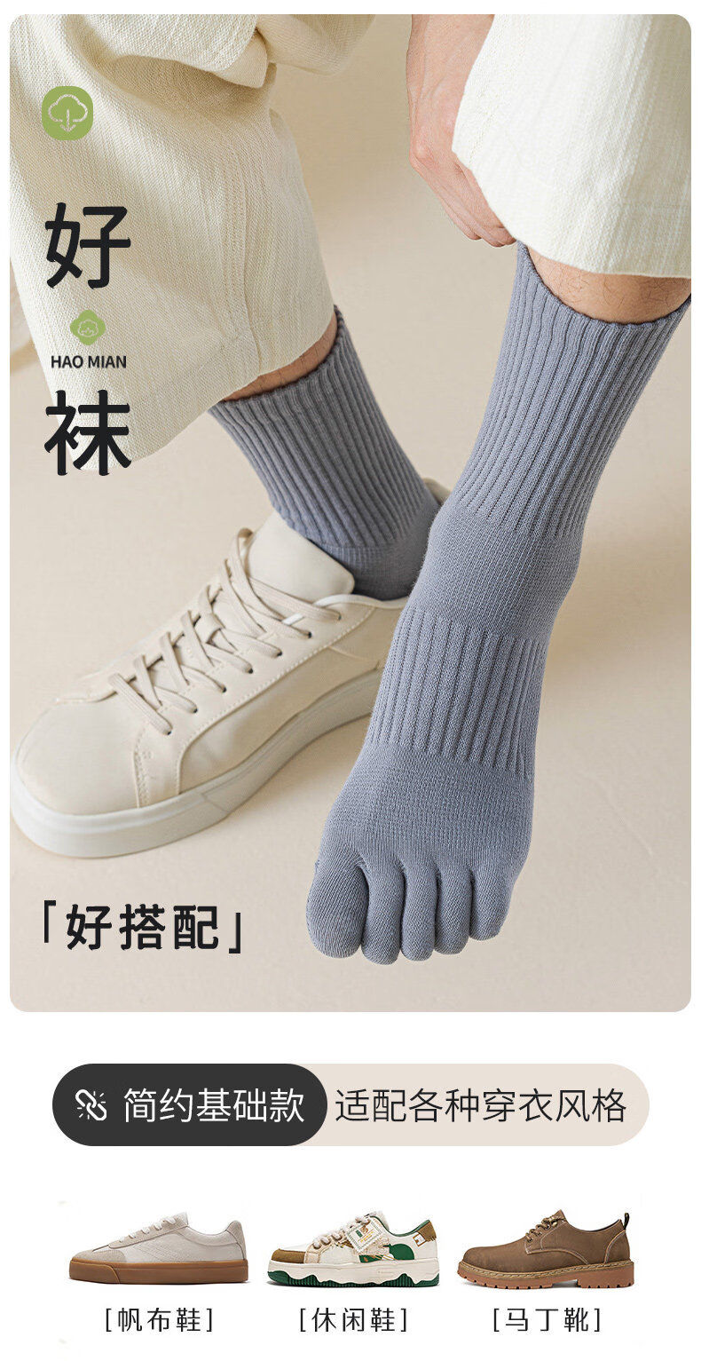 Cat People's Choice Cat People Men's Five Finger Socks Sweat-Absorbent, Deodorant and Anti-ramie T-Toe Socks Autumn and Winter Mid-length Socks, Black + White, 2 Pairs, One Size Fits All