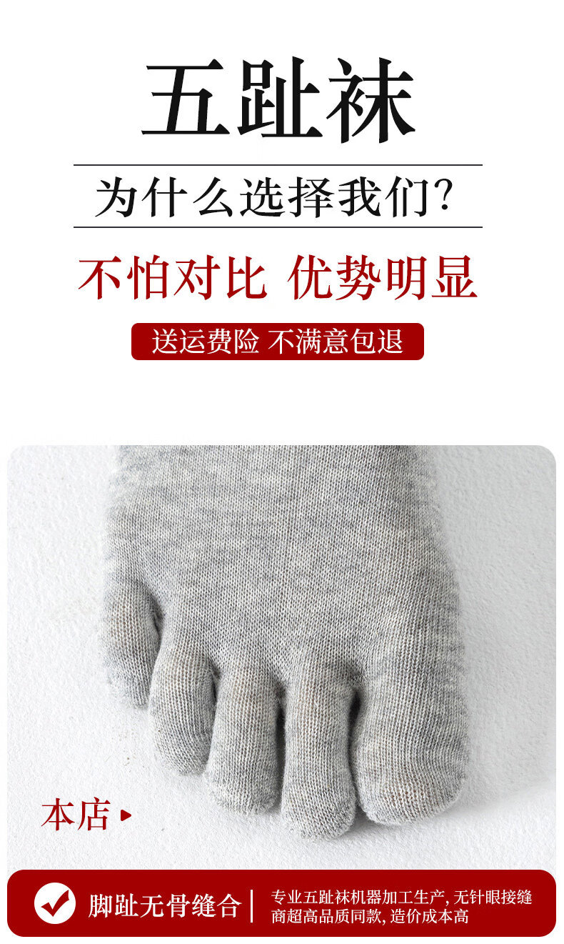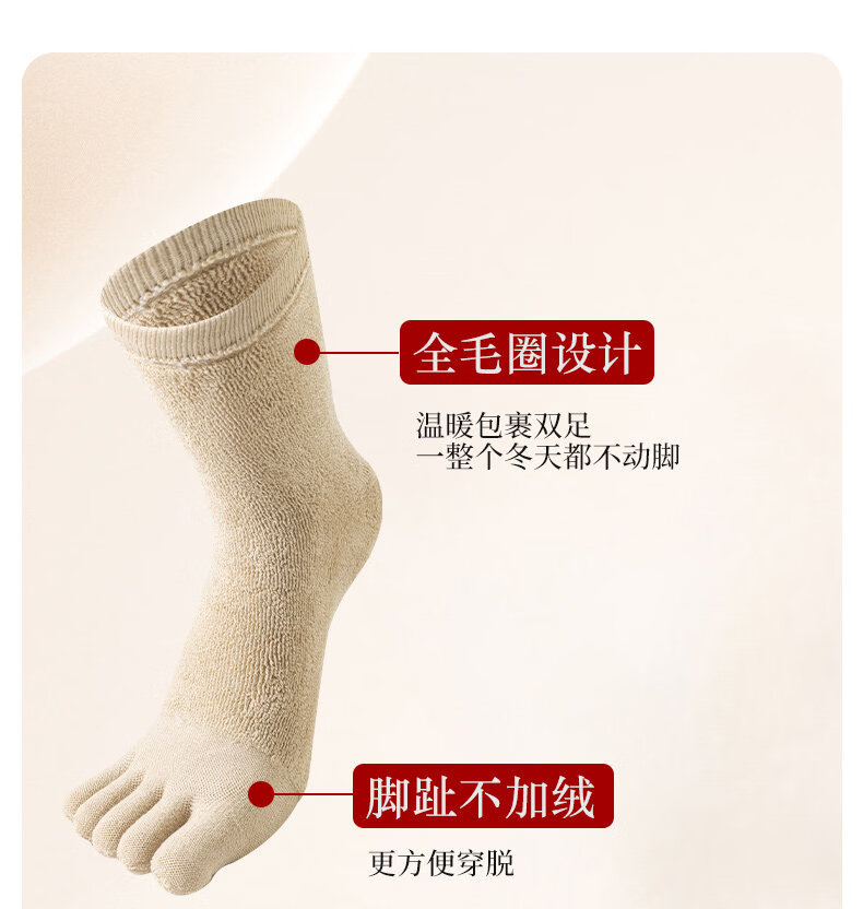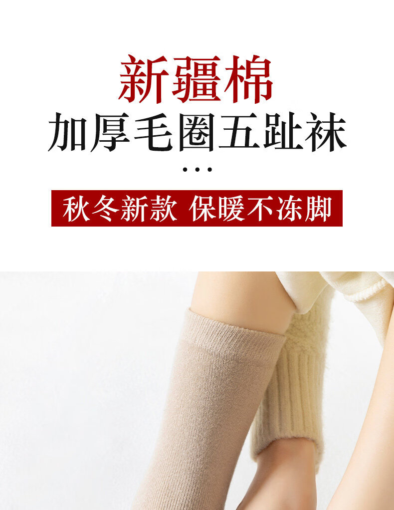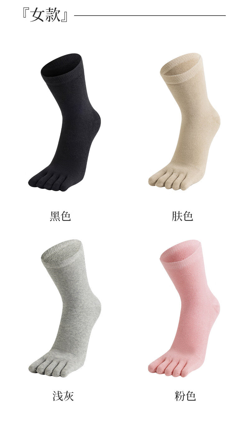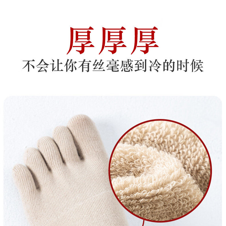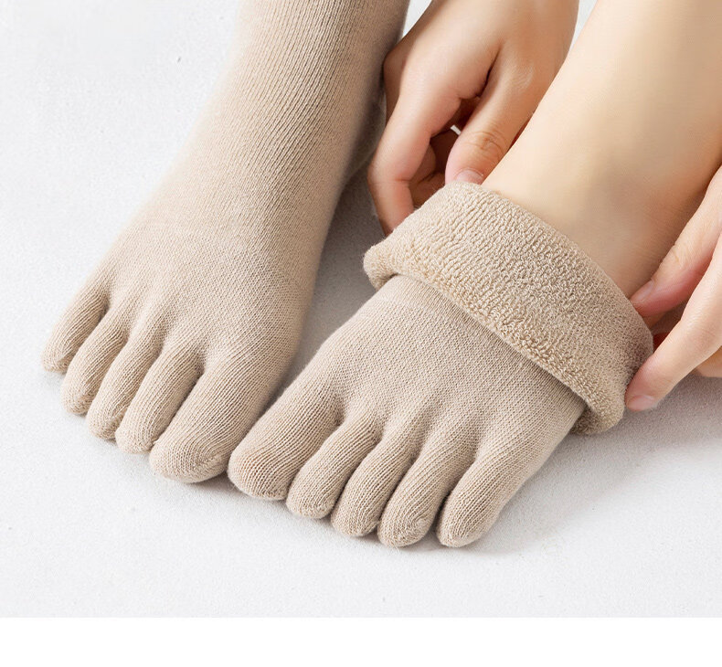 Autumn and winter five-toe socks for men and women, thickened and velvet, warm terry, anti-odor split-toe split-toe socks, women's black + skin color + light gray + pink, one size fits all (supermarket quality, no bone seams, good socks are enough)